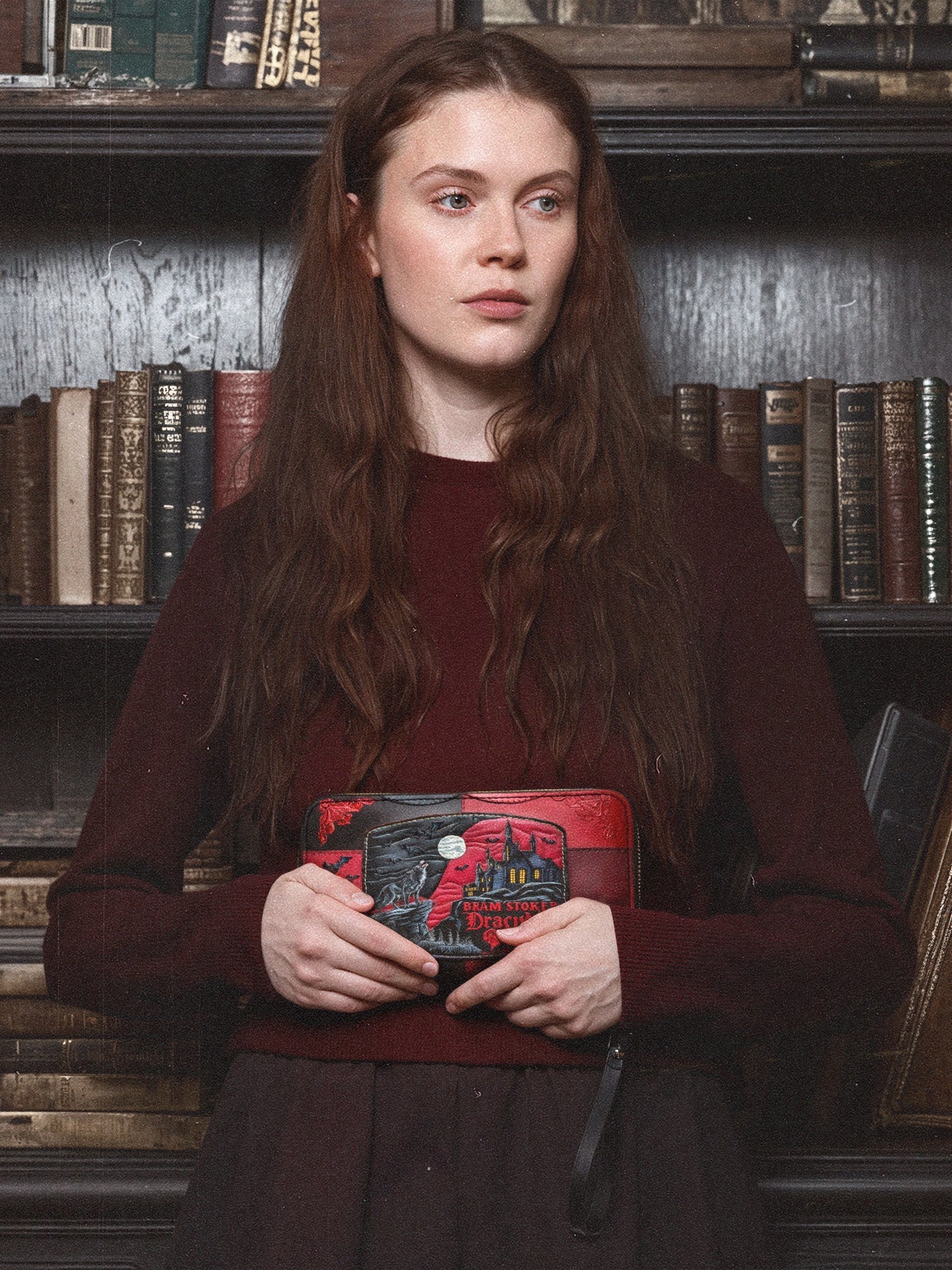Omg! I love this wallet! I got the Codex of Gothic Tales with the cobwebs. I'm so excited I can't think of the actual title. Please forgive me. It's more stunning in person than on the website. I am saving up for the purse now. I highly recommend this site and products. Absolutely stunning wallet.