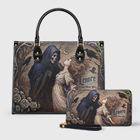 So I ordered a wallet. The " Poe Library" in ashen black. I already had a purse and really didn't think I needed another one but I really needed a new wallet.. But the problem was I really wanted the "Poes Library" in that gorgeous blue. So I did what anybody else would do the next day.I ordered it and the matching wallet. I got them all the same day.I fell in love with my blue purse! All my favorite stories ,the man himself , the blue, the black ....gorgeous. The interior, that soft yellow, Perfect! Enough room for everything that I need.