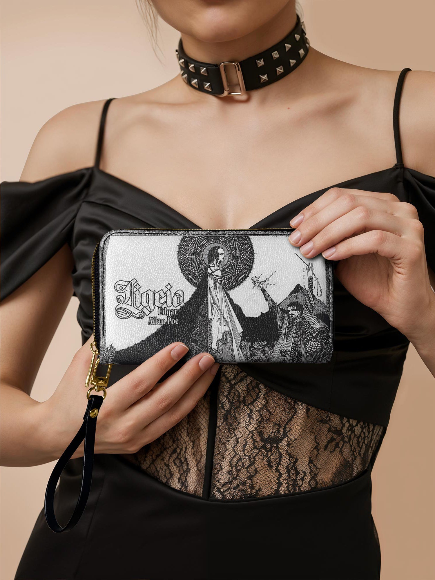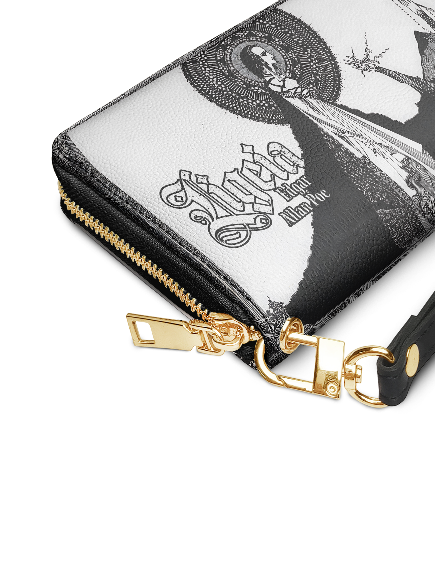 Omg! I love this wallet! I got the Codex of Gothic Tales with the cobwebs. I'm so excited I can't think of the actual title. Please forgive me. It's more stunning in person than on the website. I am saving up for the purse now. I highly recommend this site and products. Absolutely stunning wallet.