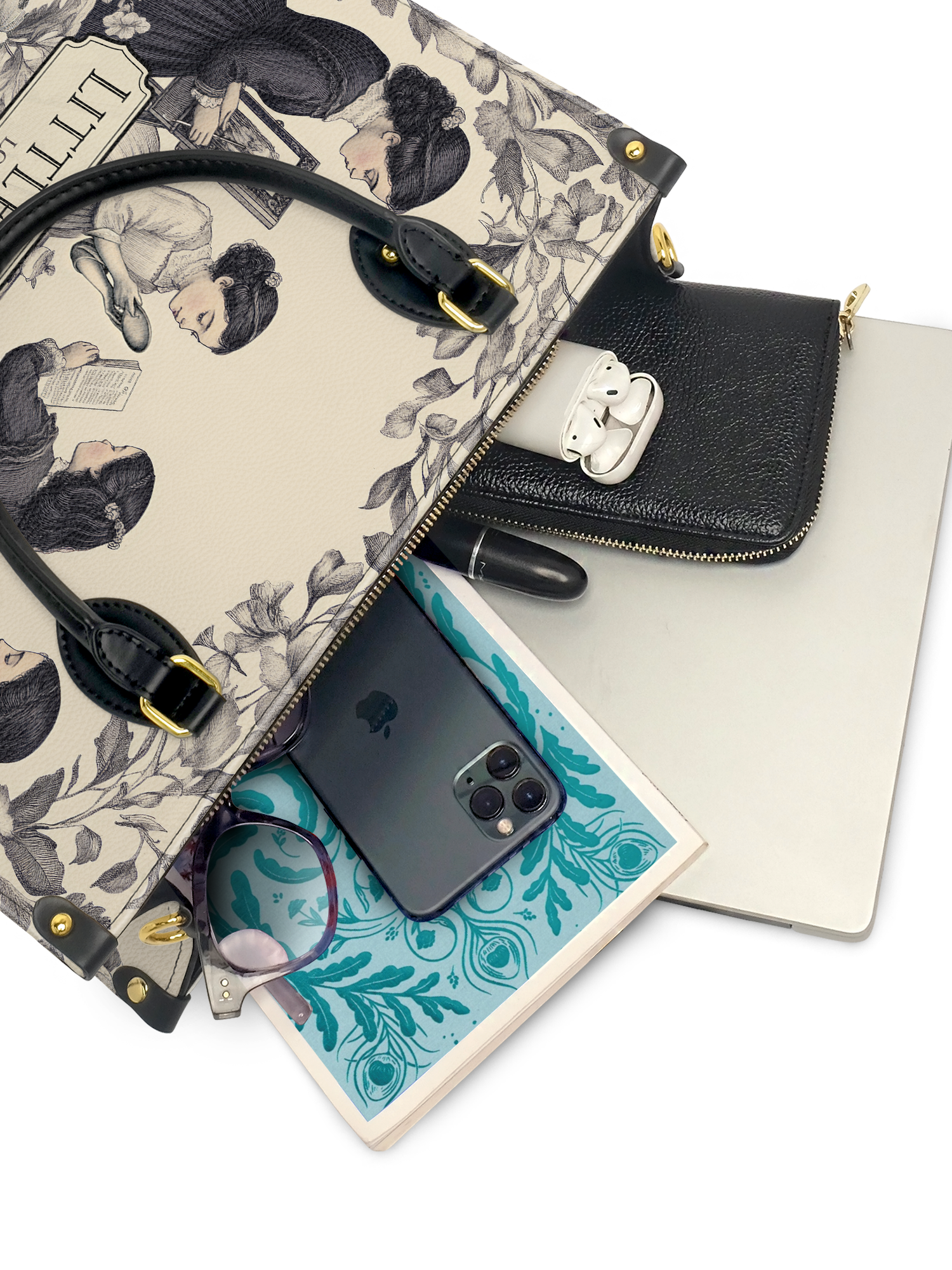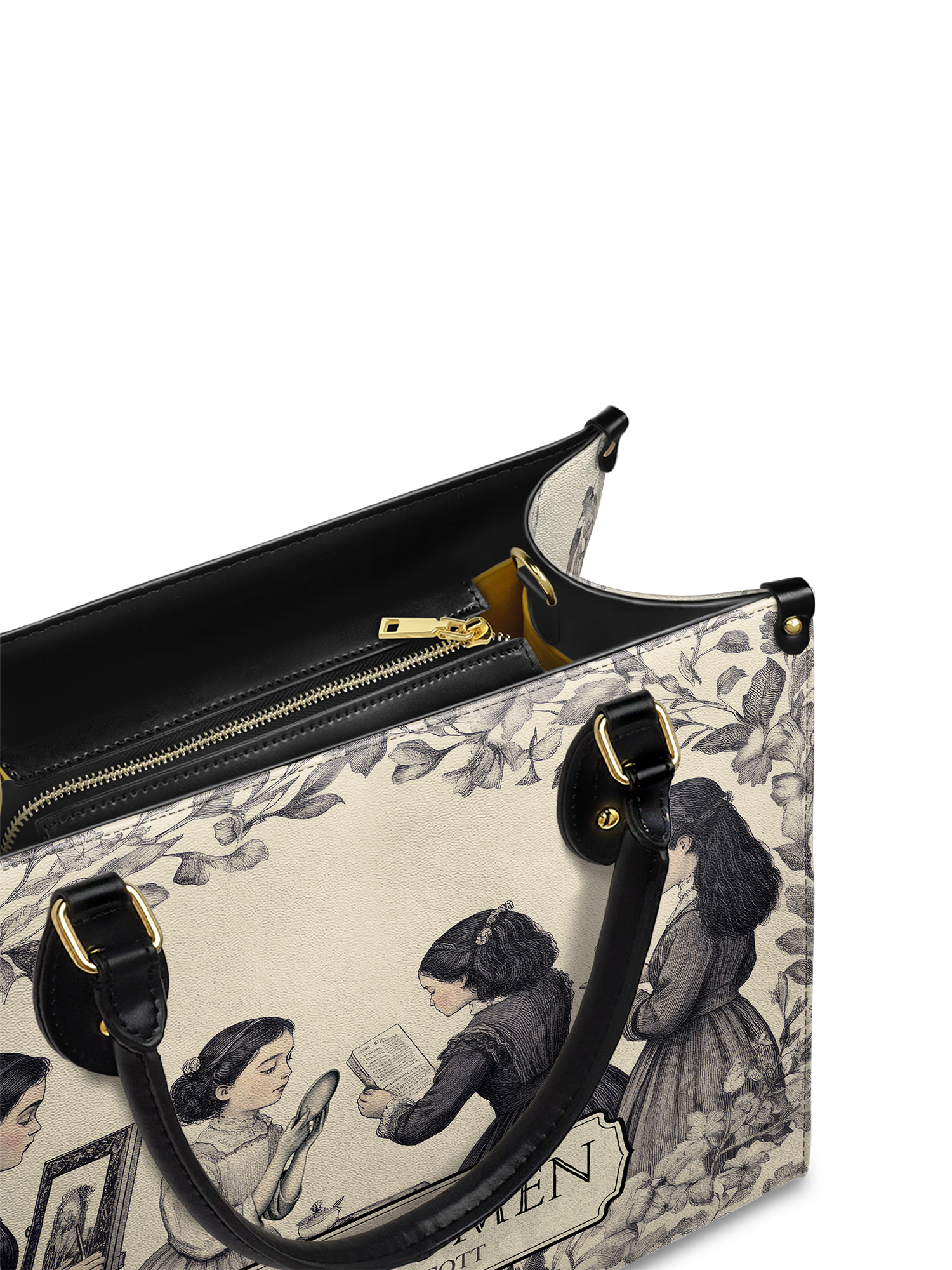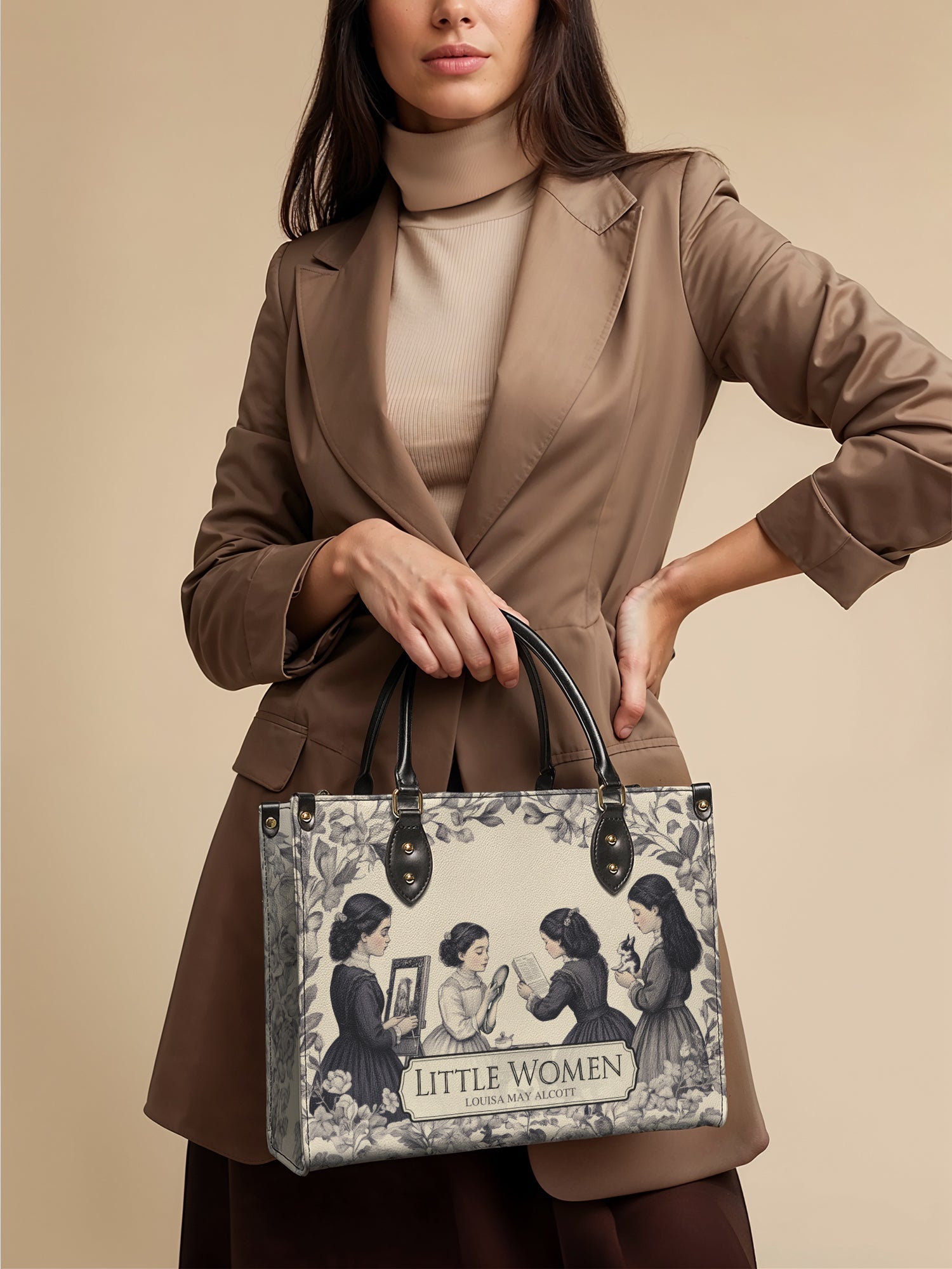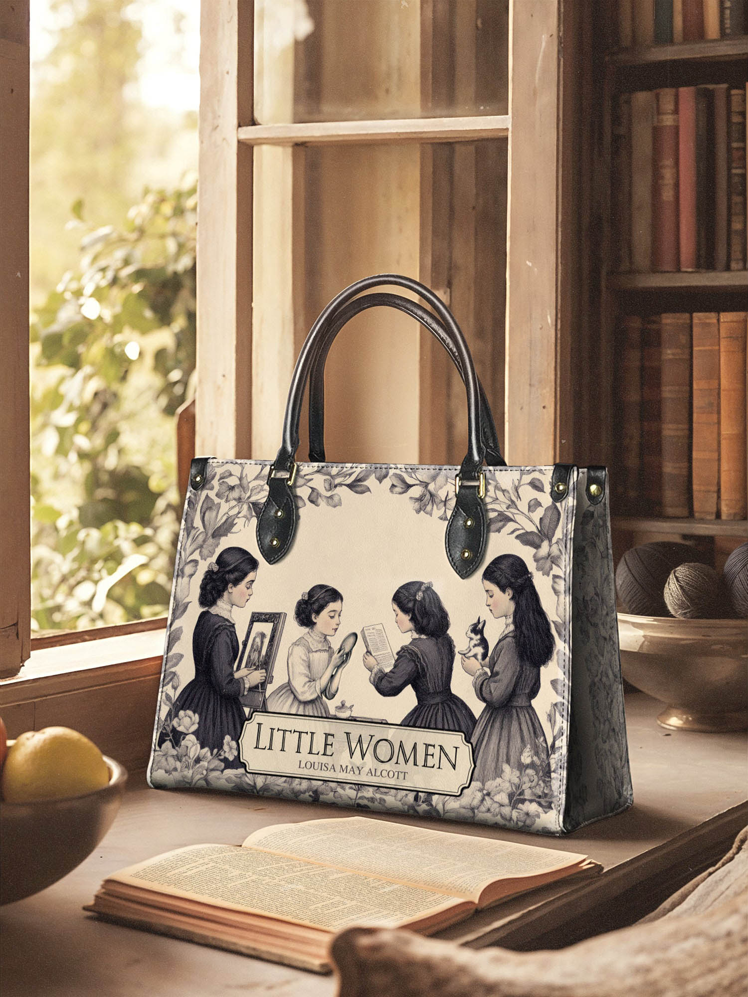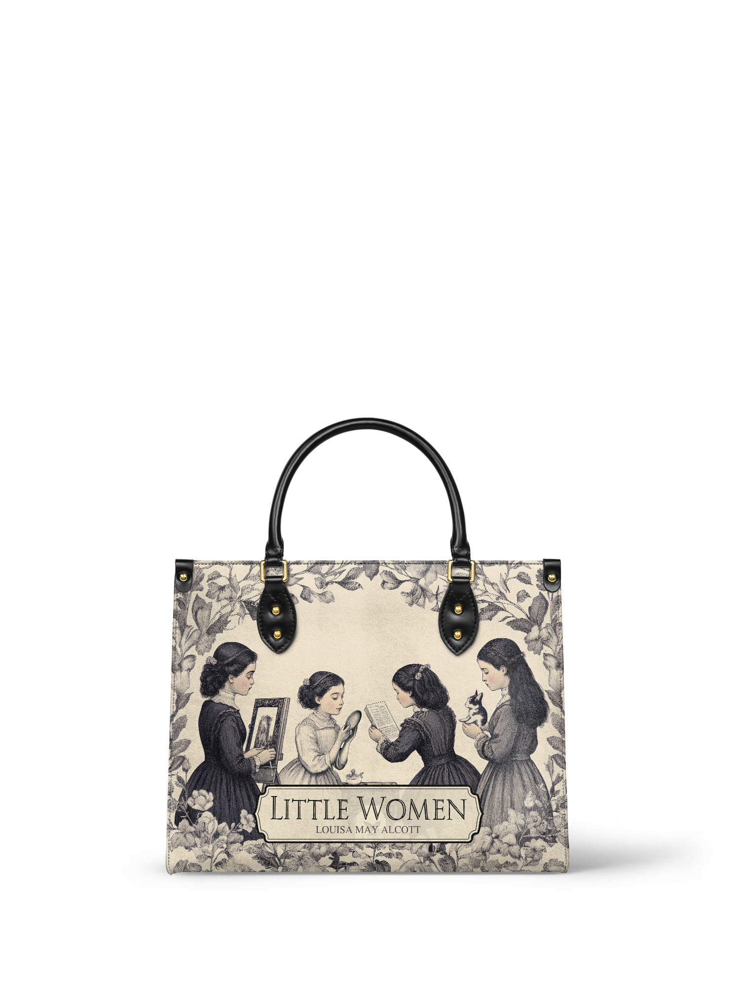 This Little Women Leather Handbag is a love letter to sisterhood, stories, and timeless charm. The soft, vintage-style design shows the March sisters—reading, painting, dreaming—wrapped in florals and nostalgia. It’s elegant, classic, and full of heart. Made from high-quality leather with sturdy black handles and gold accents, this bag is perfect for book lovers, old souls, and anyone who finds magic in the simple joys of life.