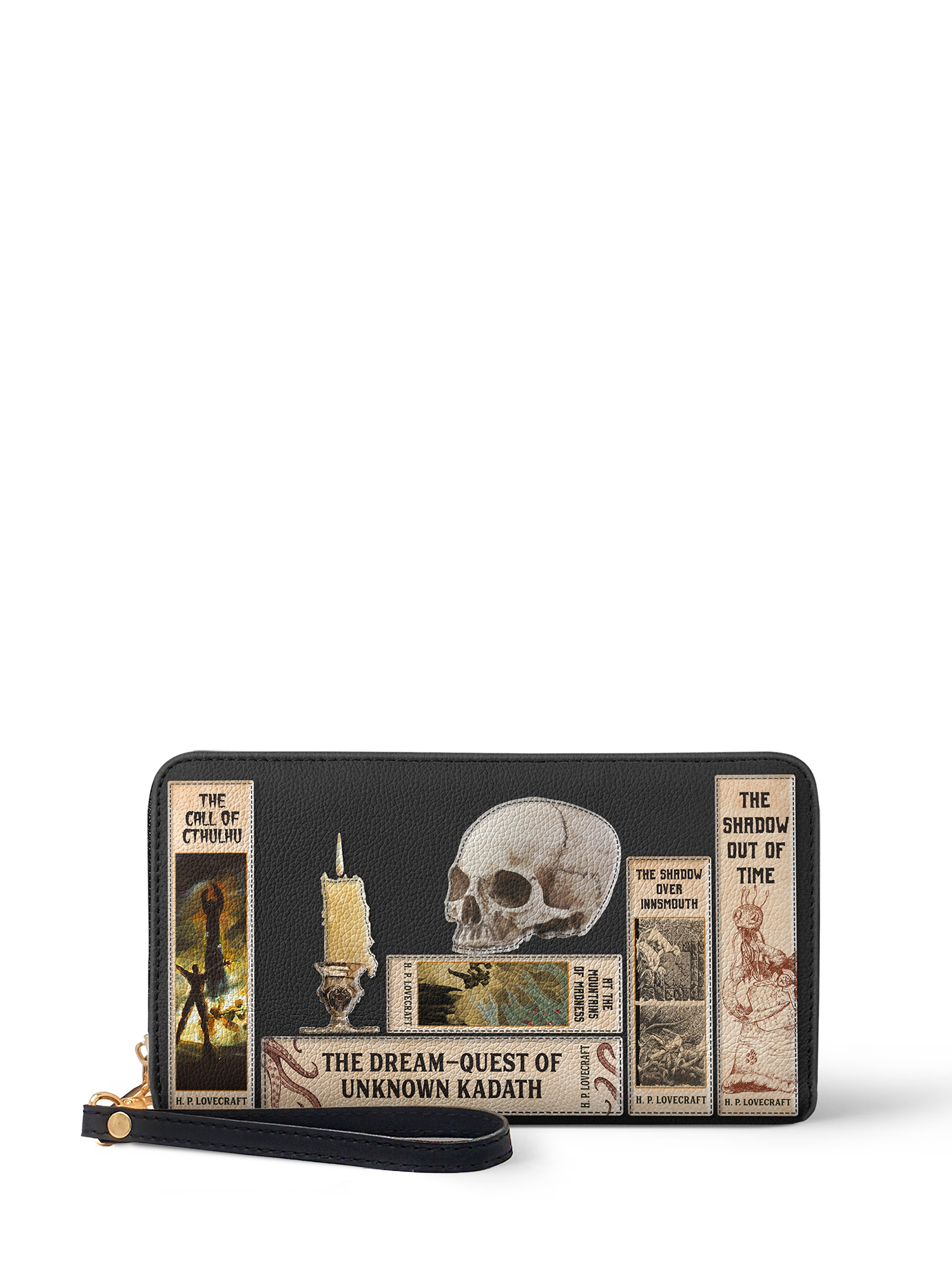 Omg! I love this wallet! I got the Codex of Gothic Tales with the cobwebs. I'm so excited I can't think of the actual title. Please forgive me. It's more stunning in person than on the website. I am saving up for the purse now. I highly recommend this site and products. Absolutely stunning wallet.