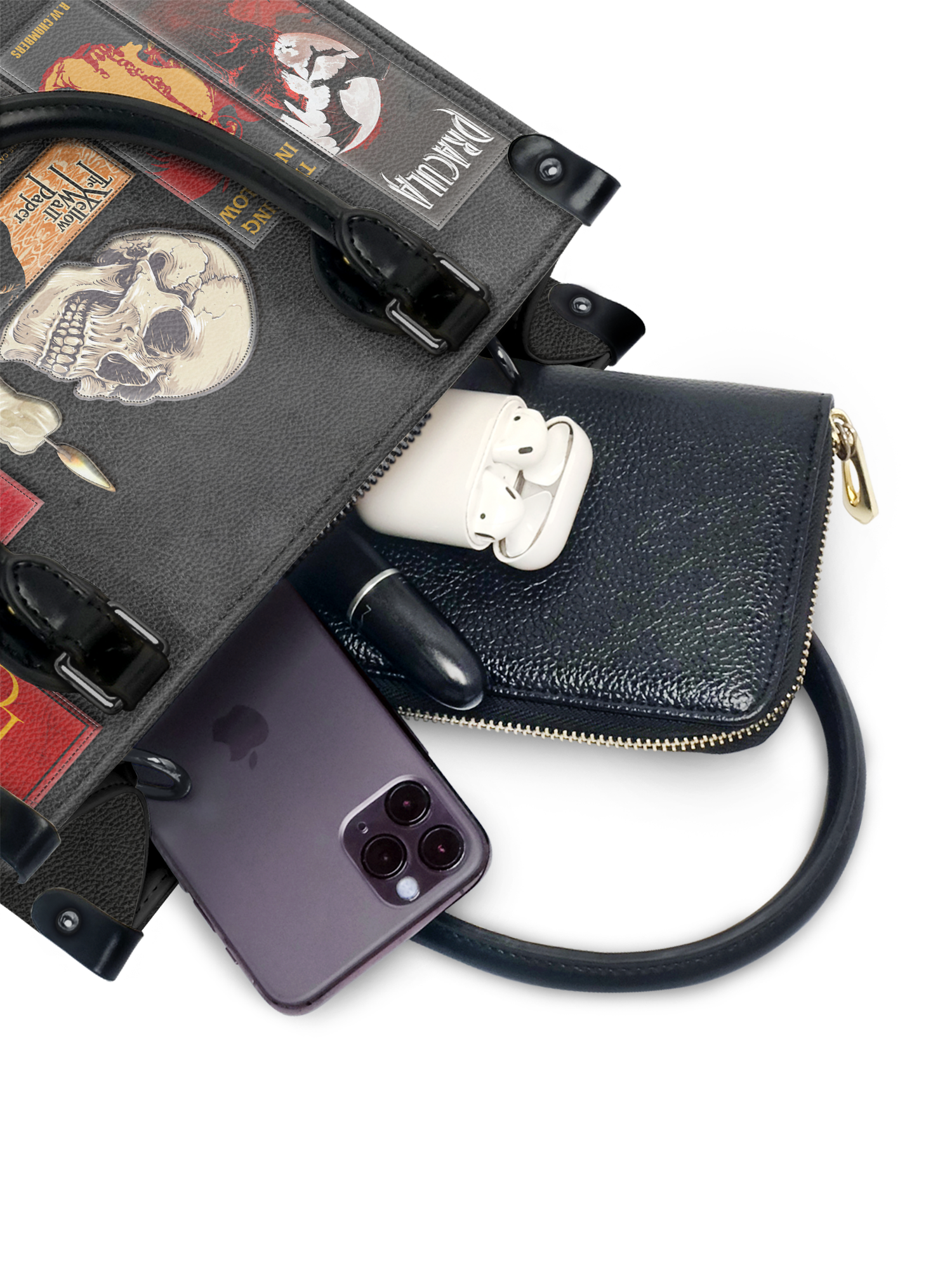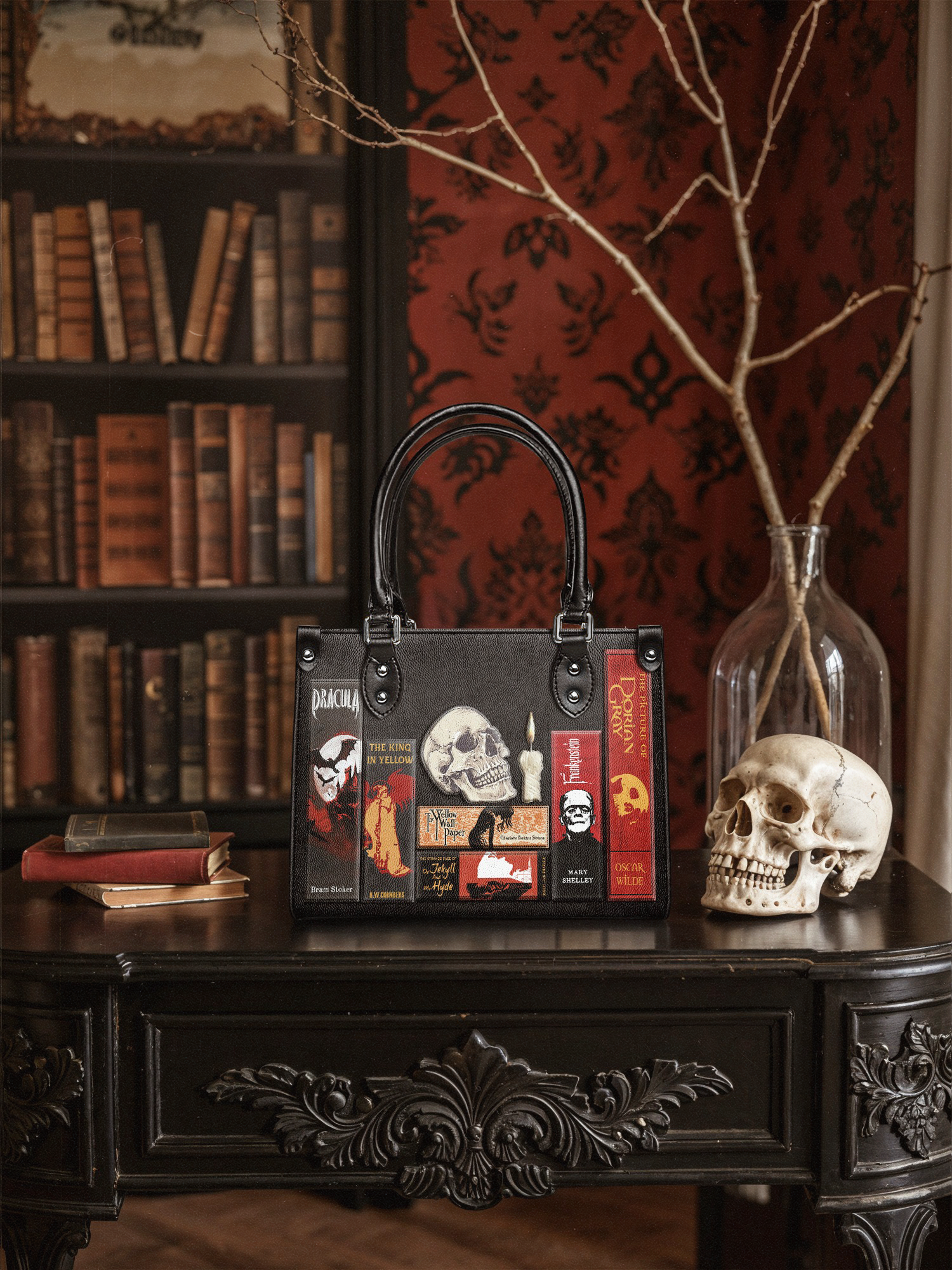 "The Codex of Gothic Tales" Deadlight Black - Black Interior - Small Leather Handbag