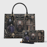 So I ordered a wallet. The " Poe Library" in ashen black. I already had a purse and really didn't think I needed another one but I really needed a new wallet.. But the problem was I really wanted the "Poes Library" in that gorgeous blue. So I did what anybody else would do the next day.I ordered it and the matching wallet. I got them all the same day.I fell in love with my blue purse! All my favorite stories ,the man himself , the blue, the black ....gorgeous. The interior, that soft yellow, Perfect! Enough room for everything that I need.