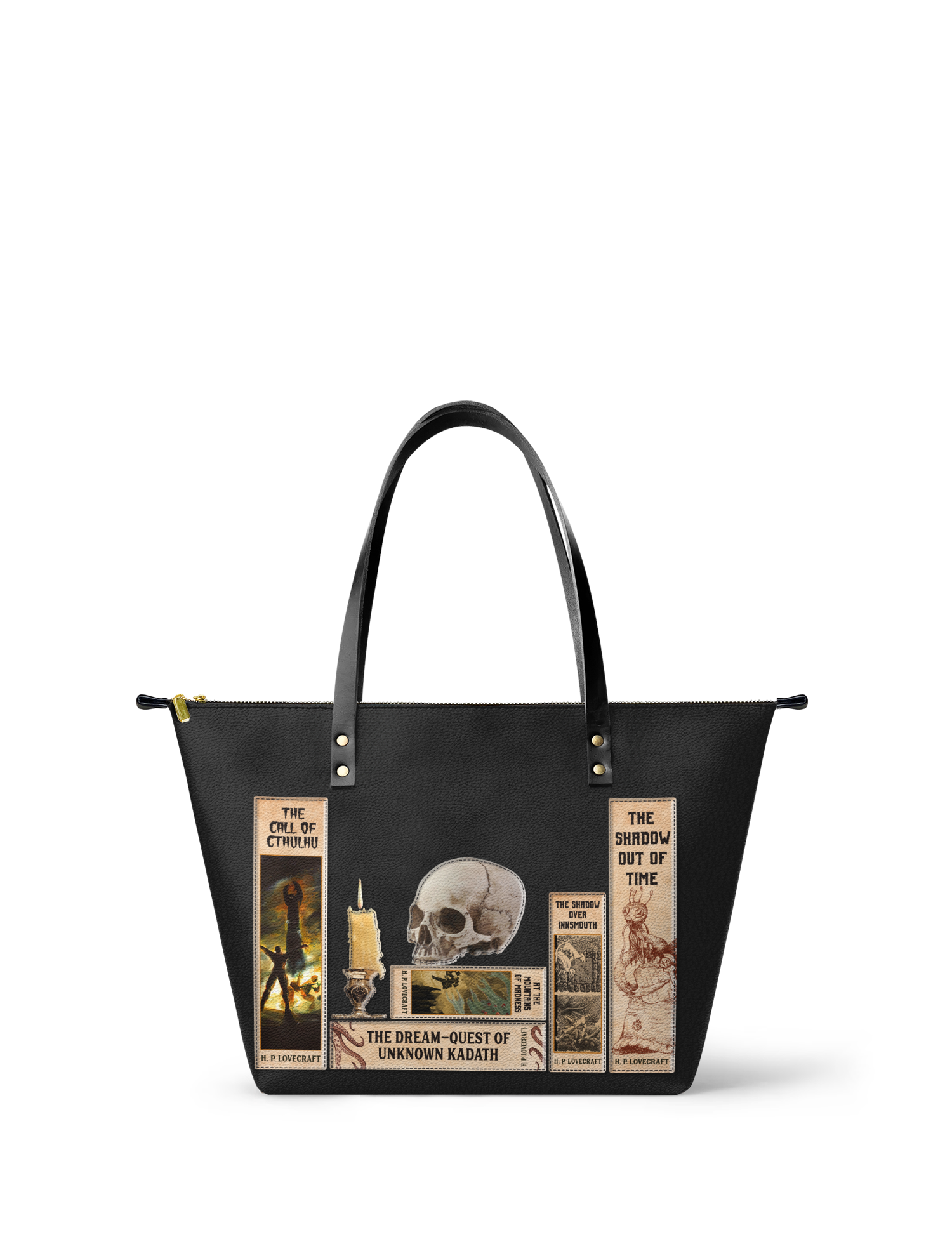 Lovecraftian Black Leather Tote Bag