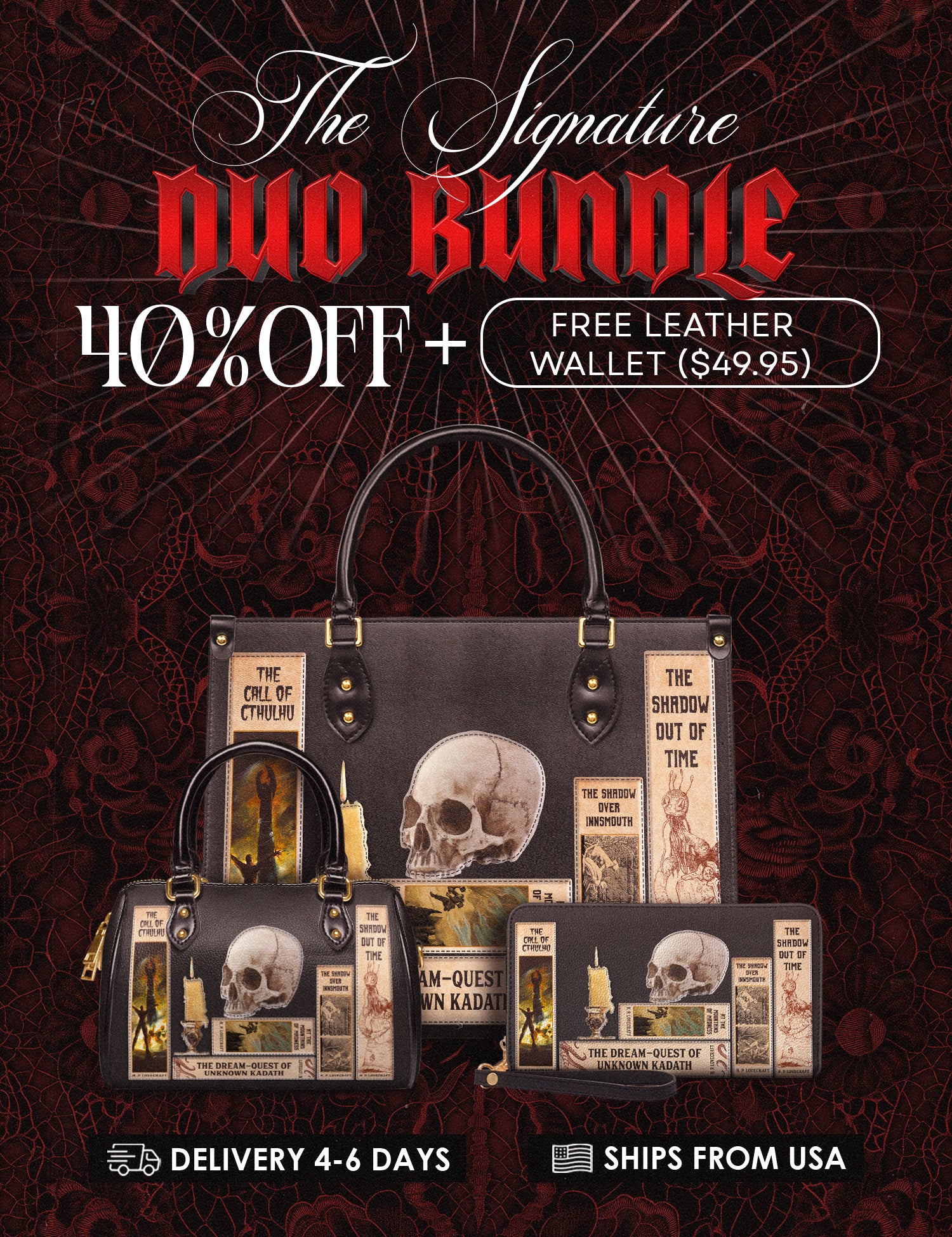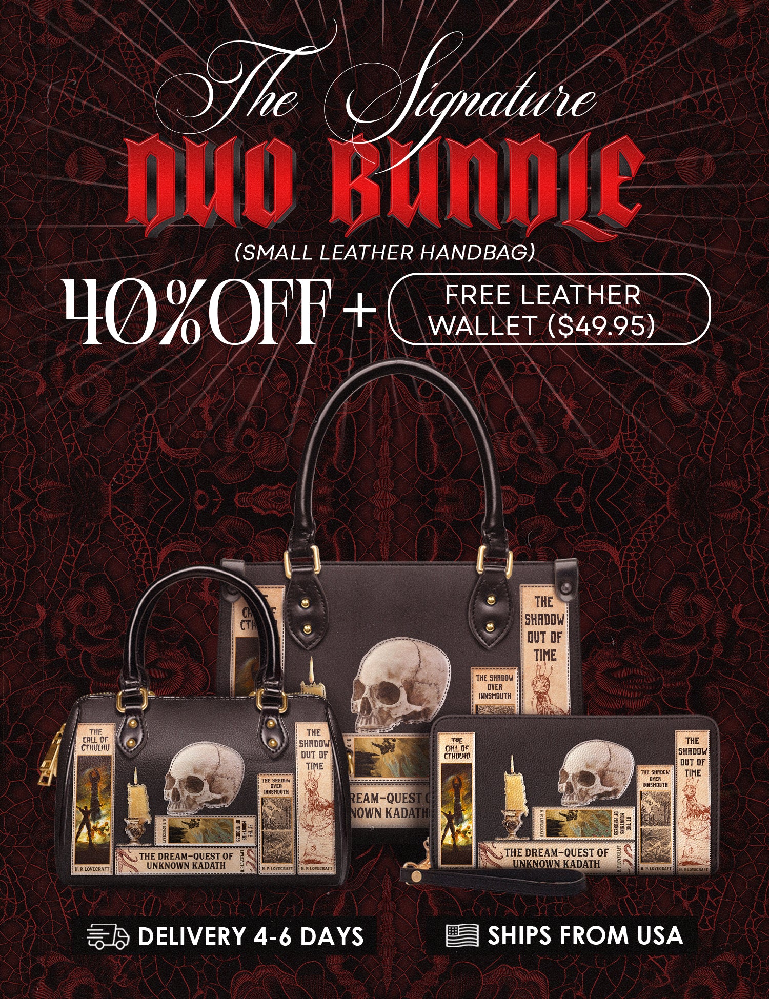 Lovecraftian Black The Signature Duo Bundle (Small Leather Handbag)