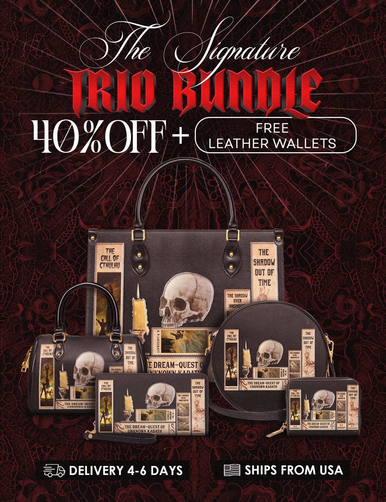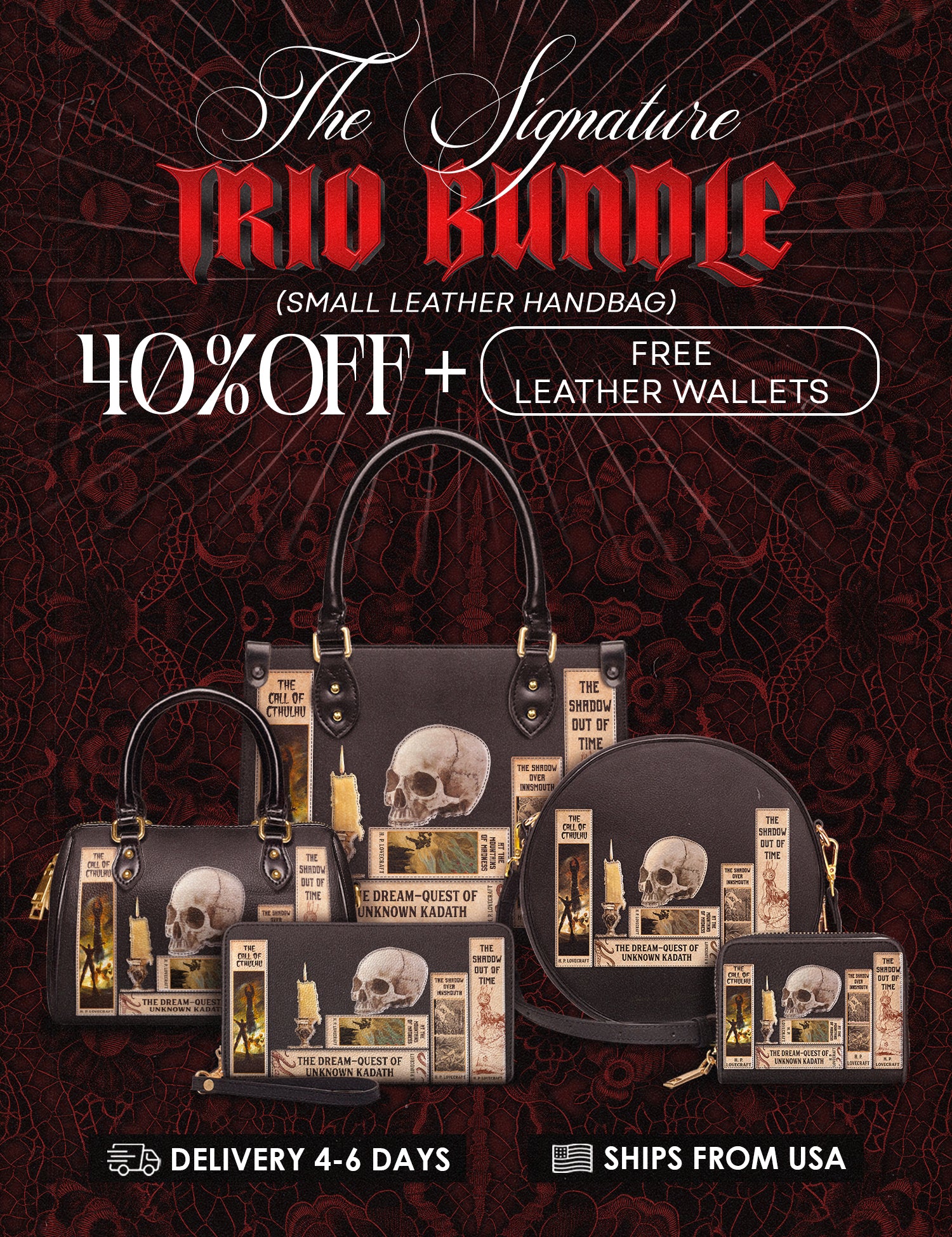 Lovecraftian Black The Signature Trio Bundle (Small Leather Handbag)