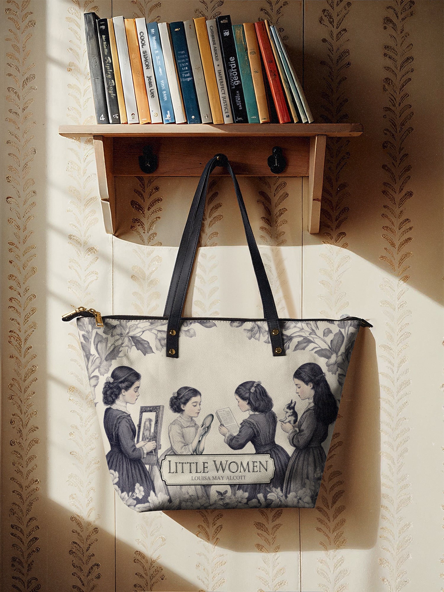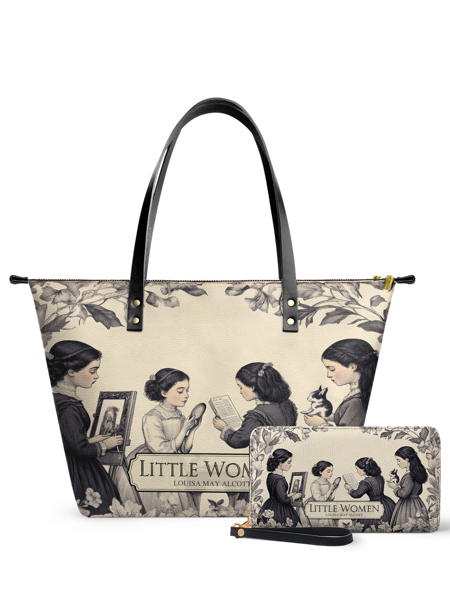 This Little Women Leather Tote is classic, timeless, and full of heart—just like the story. The vintage-style design captures the March sisters in a soft, floral setting, each lost in their own world of art, books, and dreams. It’s elegant, cozy, and made for kindred spirits. Crafted from high-quality leather with sturdy black handles and gold hardware, this tote is perfect for book lovers, romantics, and anyone who treasures sisterhood and storytelling.