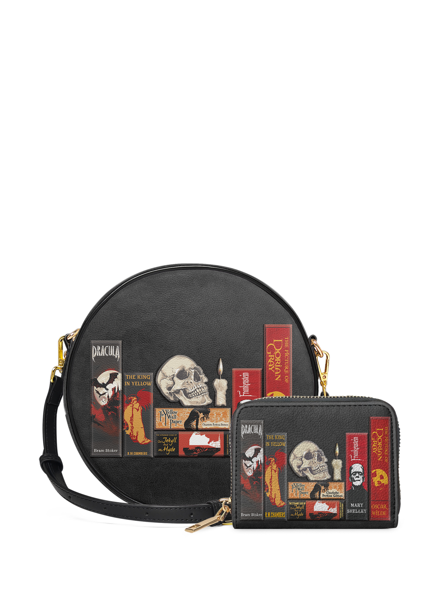 This circle crossbody bag blends literary edge with everyday function—perfect for horror lovers who carry their stories with them.