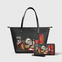 This Codex of Gothic Tales Leather Handbag is dripping with eerie elegance. A haunting collection of classic horror books—Dracula, Frankenstein, The Picture of Dorian Gray, The King in Yellow, and more—stacked together like a forbidden library. A weathered skull, a flickering candle, and vintage textures bring the dark academia aesthetic to life. Made from high-quality leather with sleek black handles and gold accents, this bag is perfect for book lovers, gothic souls, and those who love a touch of mystery. Dare to carry the dark tales that never fade?