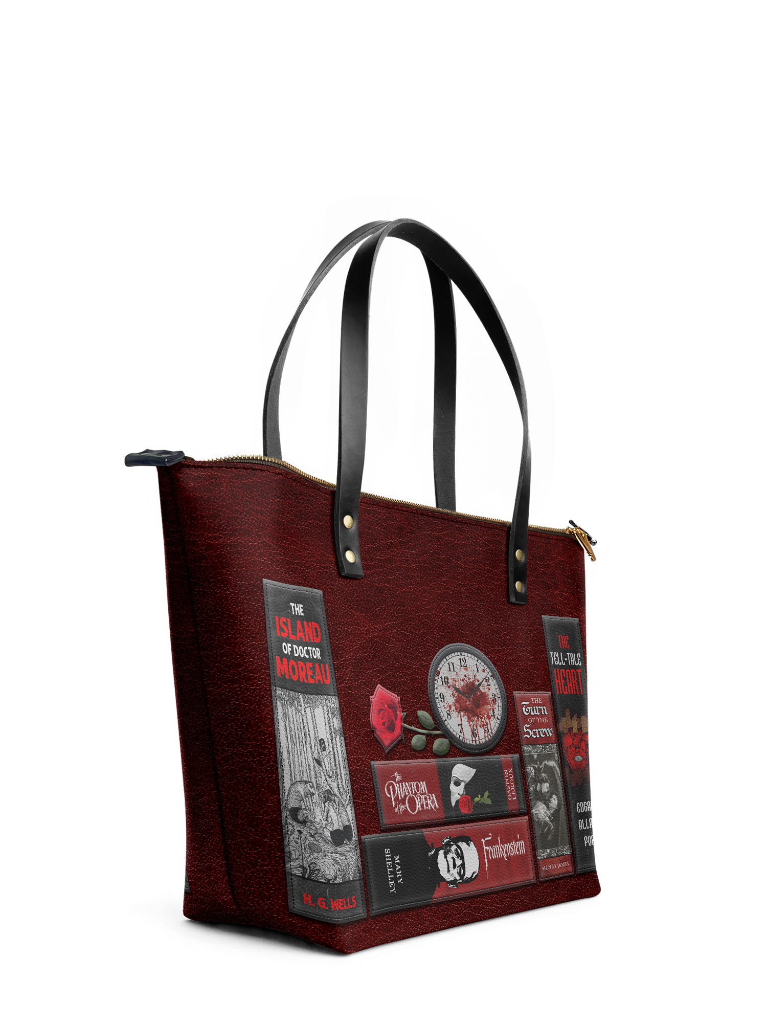 If your heart beats to the rhythm of being buried alive or placed in premature entombment, Lettoria's Poe's Library Tote is your talisman.