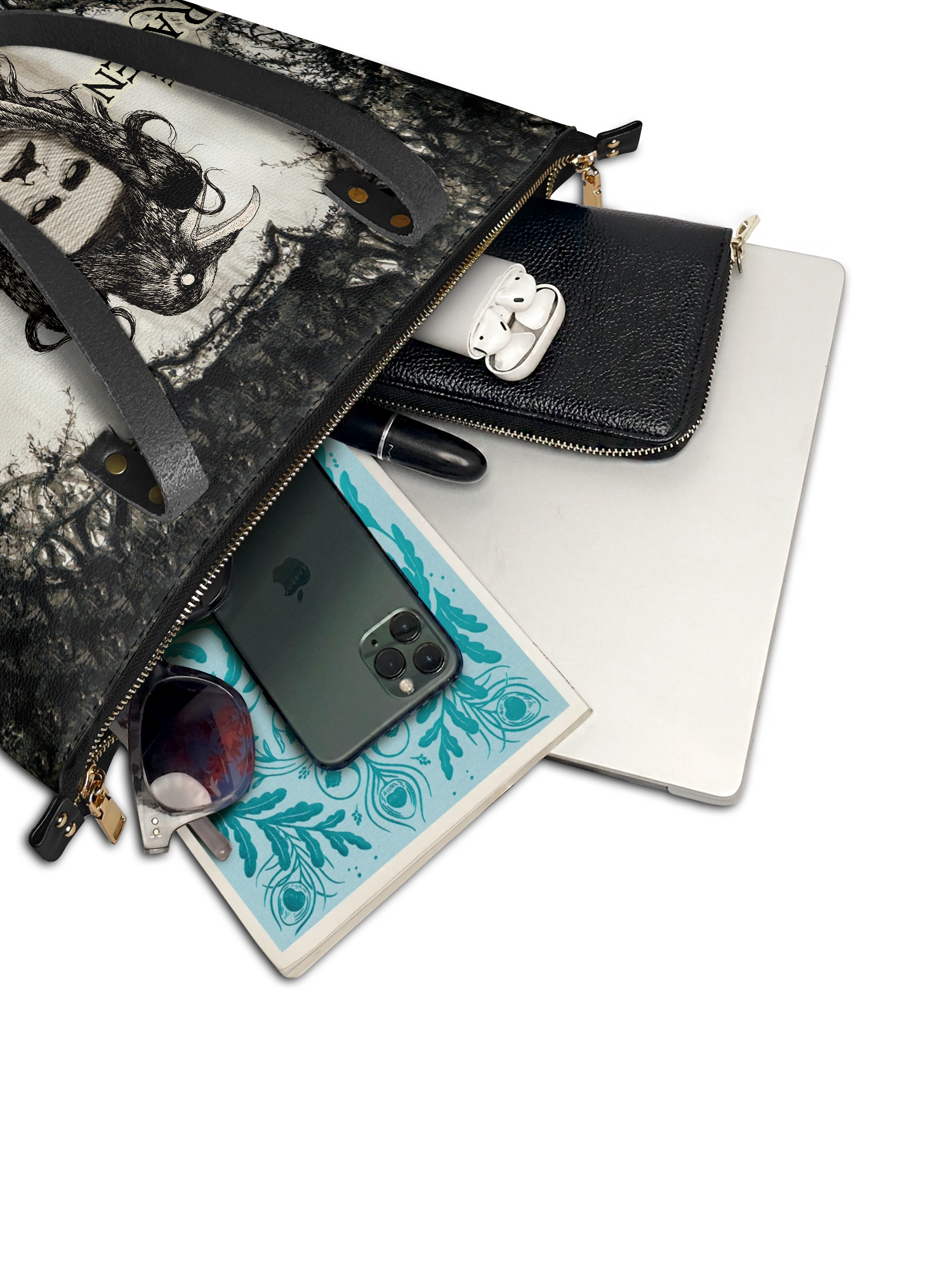 Handcrafted in the United States, this Premium Vegan Leather tote transforms mundane errands into a procession through the House of Usher.