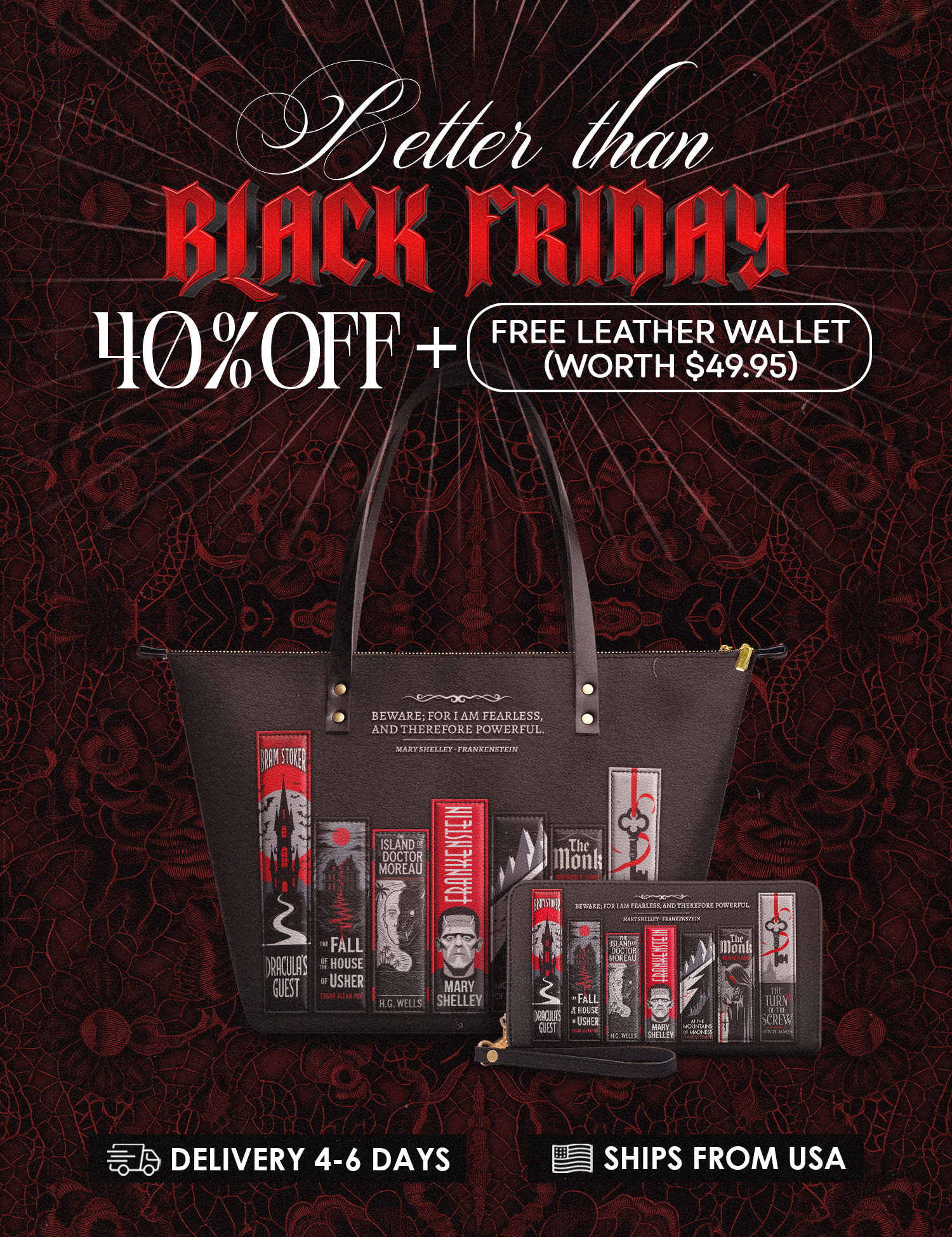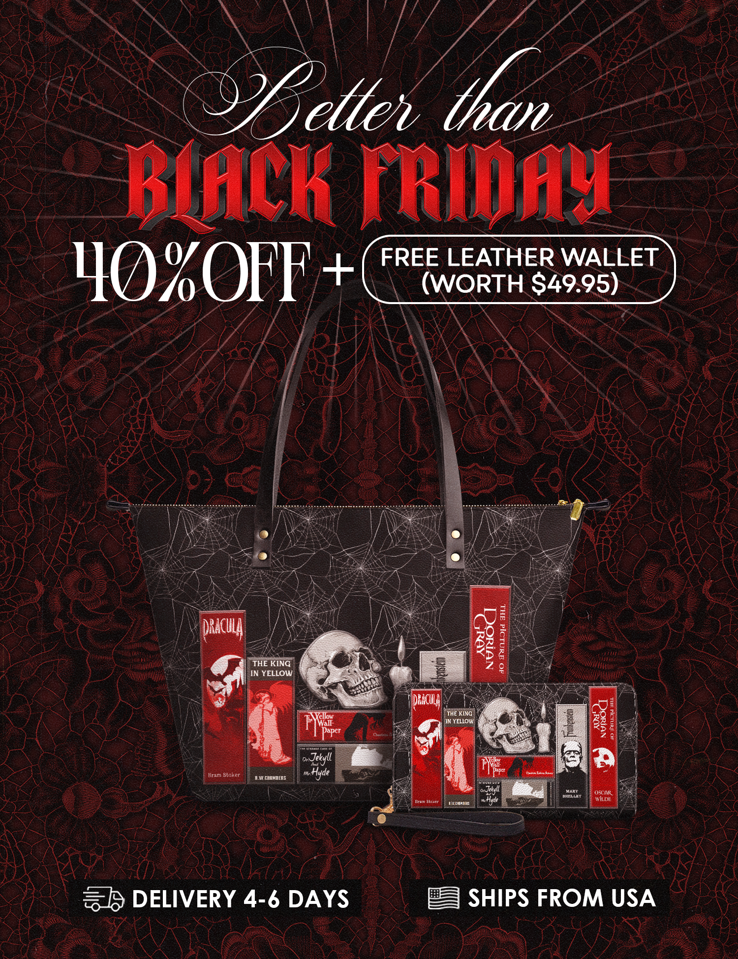 "The Codex of Gothic Tales" Black Widow’s Kiss Leather Tote Bag Deal