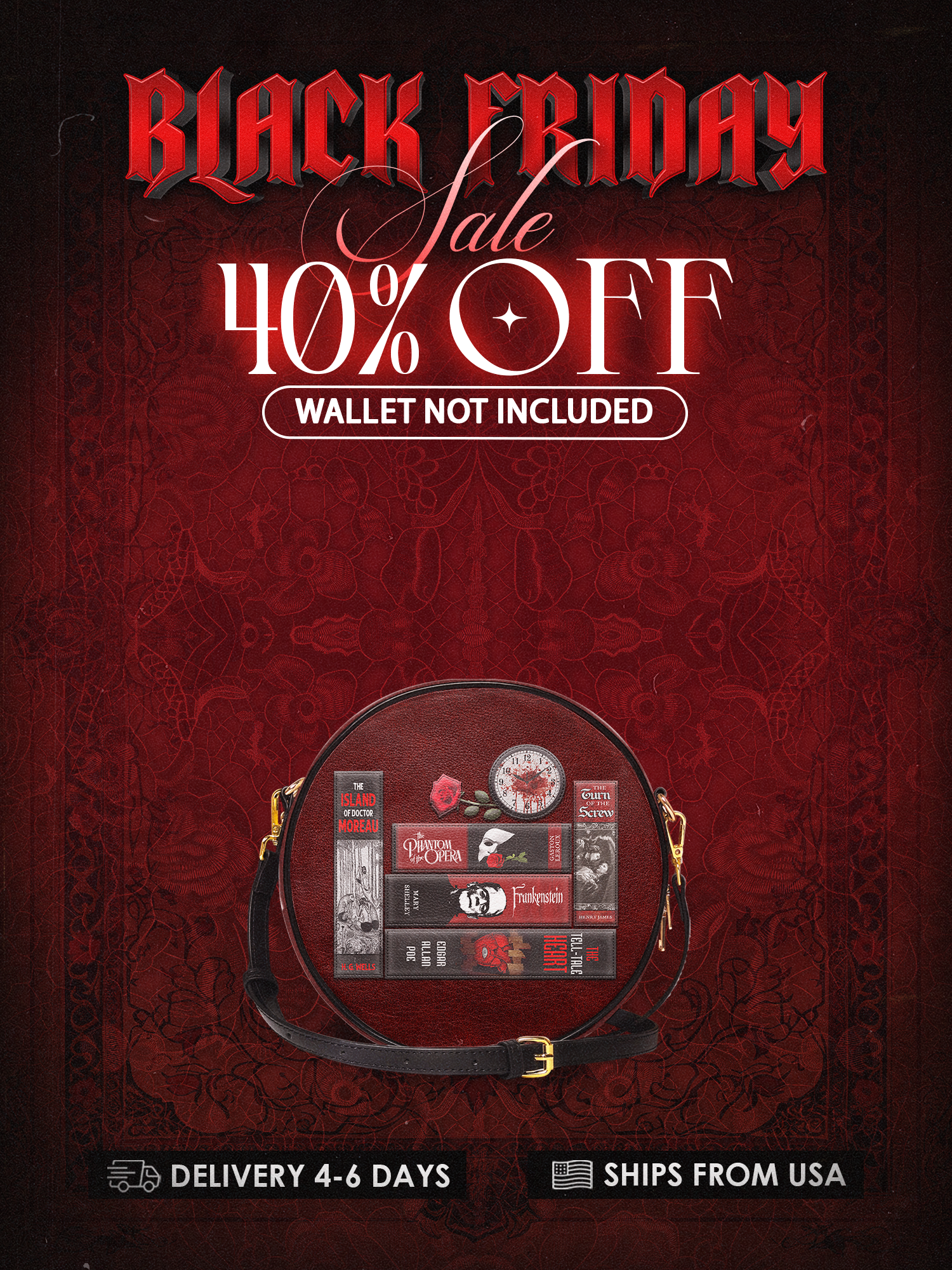This circle crossbody bag blends literary edge with everyday function—perfect for horror lovers who carry their stories with them.
