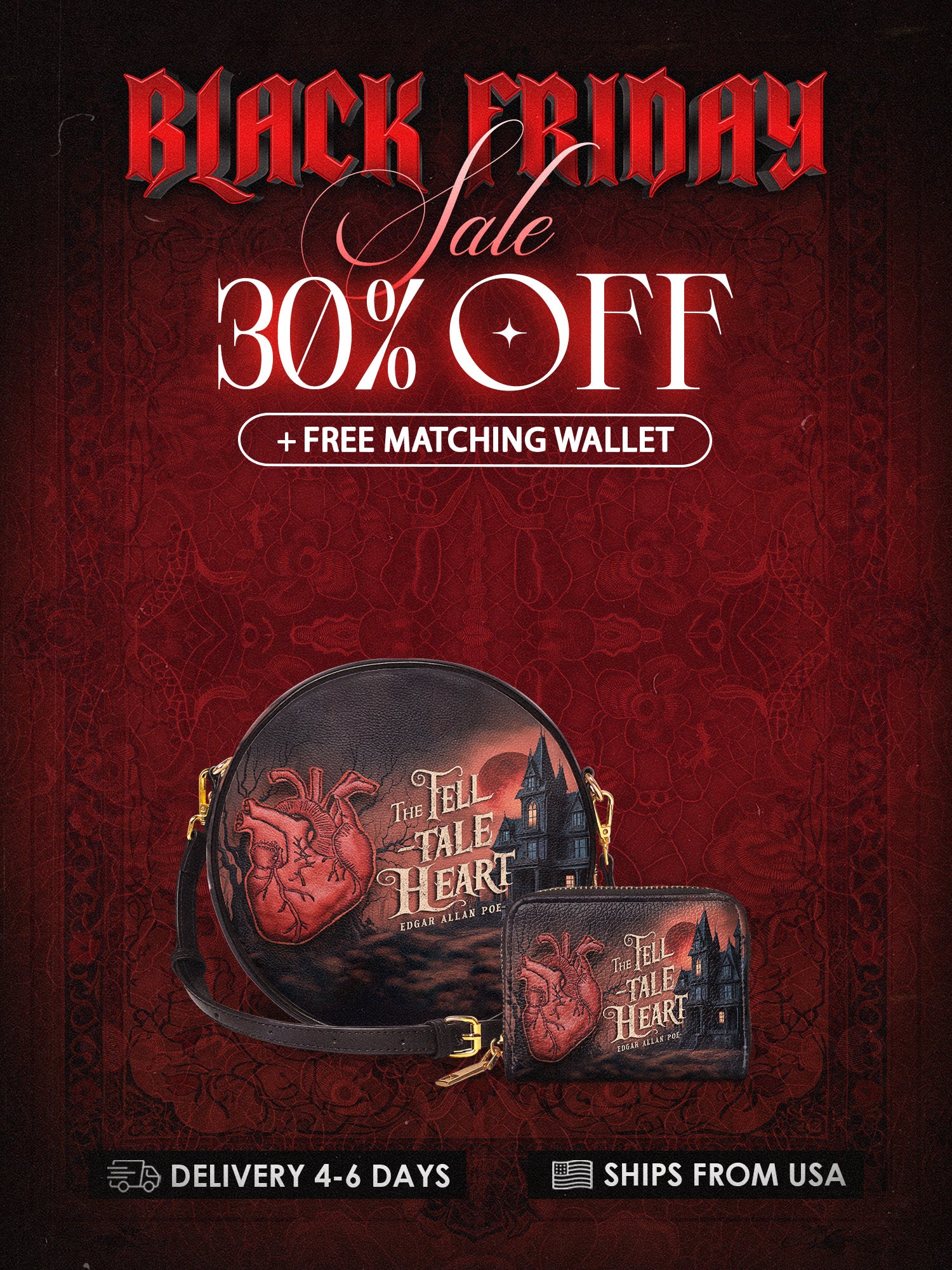 A guilty mind never rests—and this Tell-Tale Heart Circle Crossbody captures that pulsing madness with eerie elegance. For those who live in the space between dread and desire, this is more than a bag—it’s a confession stitched in leather.