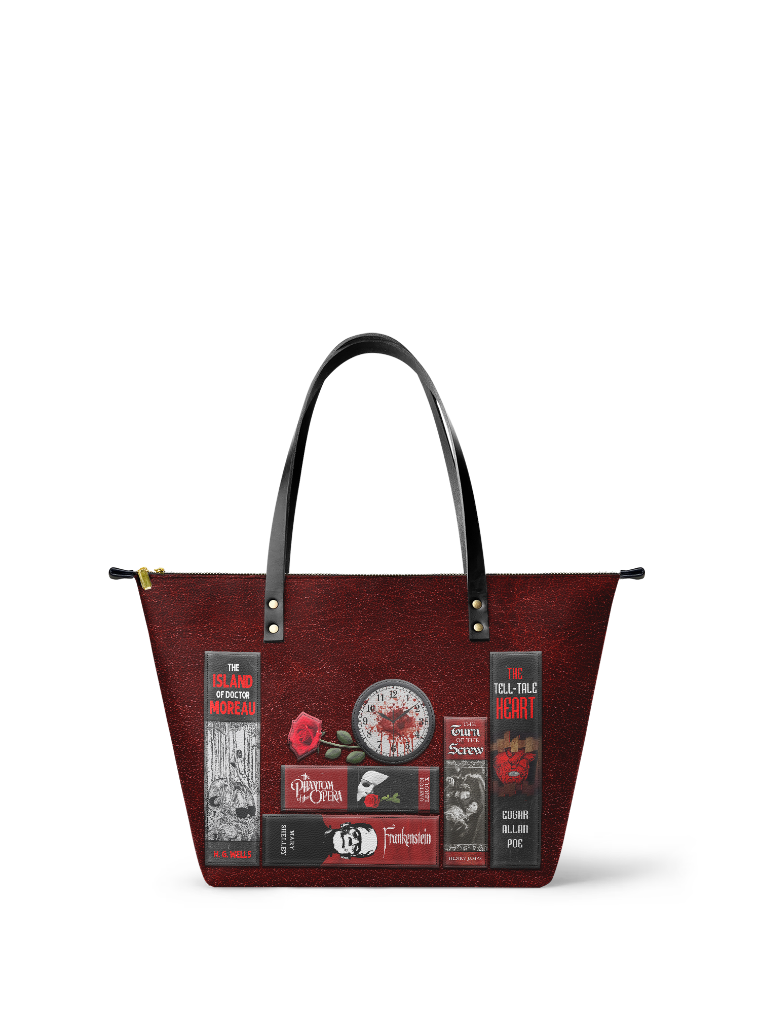 Handcrafted in the United States, this Premium Vegan Leather tote transforms mundane errands into a procession through the House of Usher.