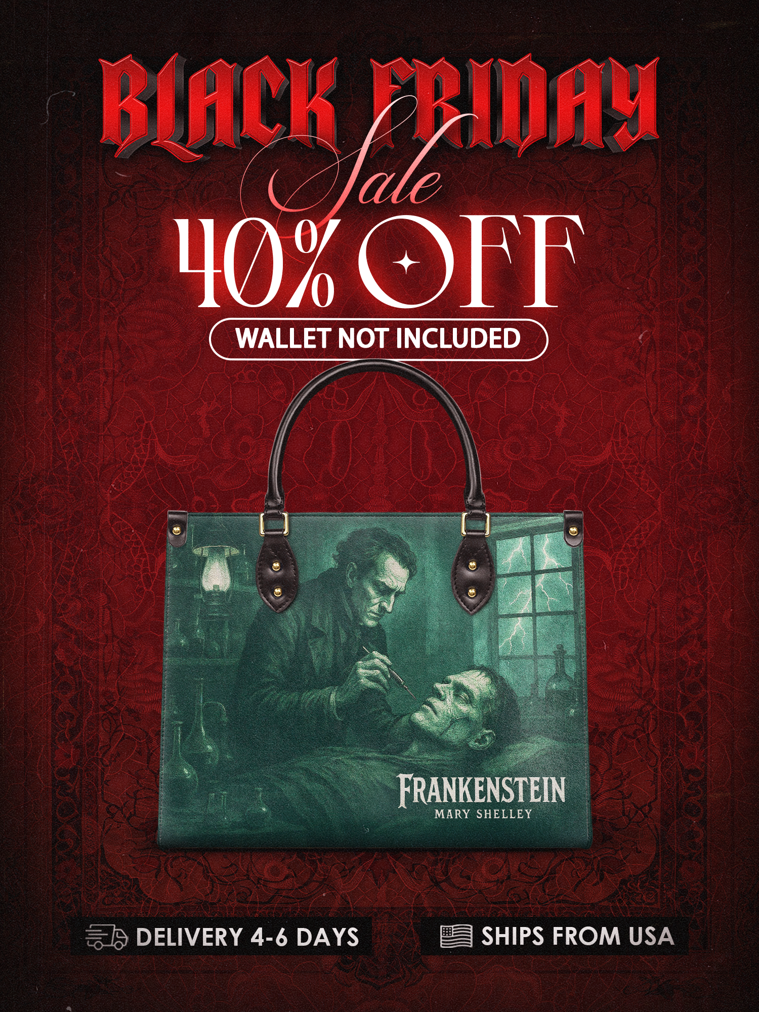 The Green Frankenstein handbag channels vintage horror at its most haunting. With eerie emerald tones and classic film imagery, it’s a love letter to the original tale of terror and creation. Elegant, eerie, and steeped in cinematic nostalgia—it’s horror history you can carry.