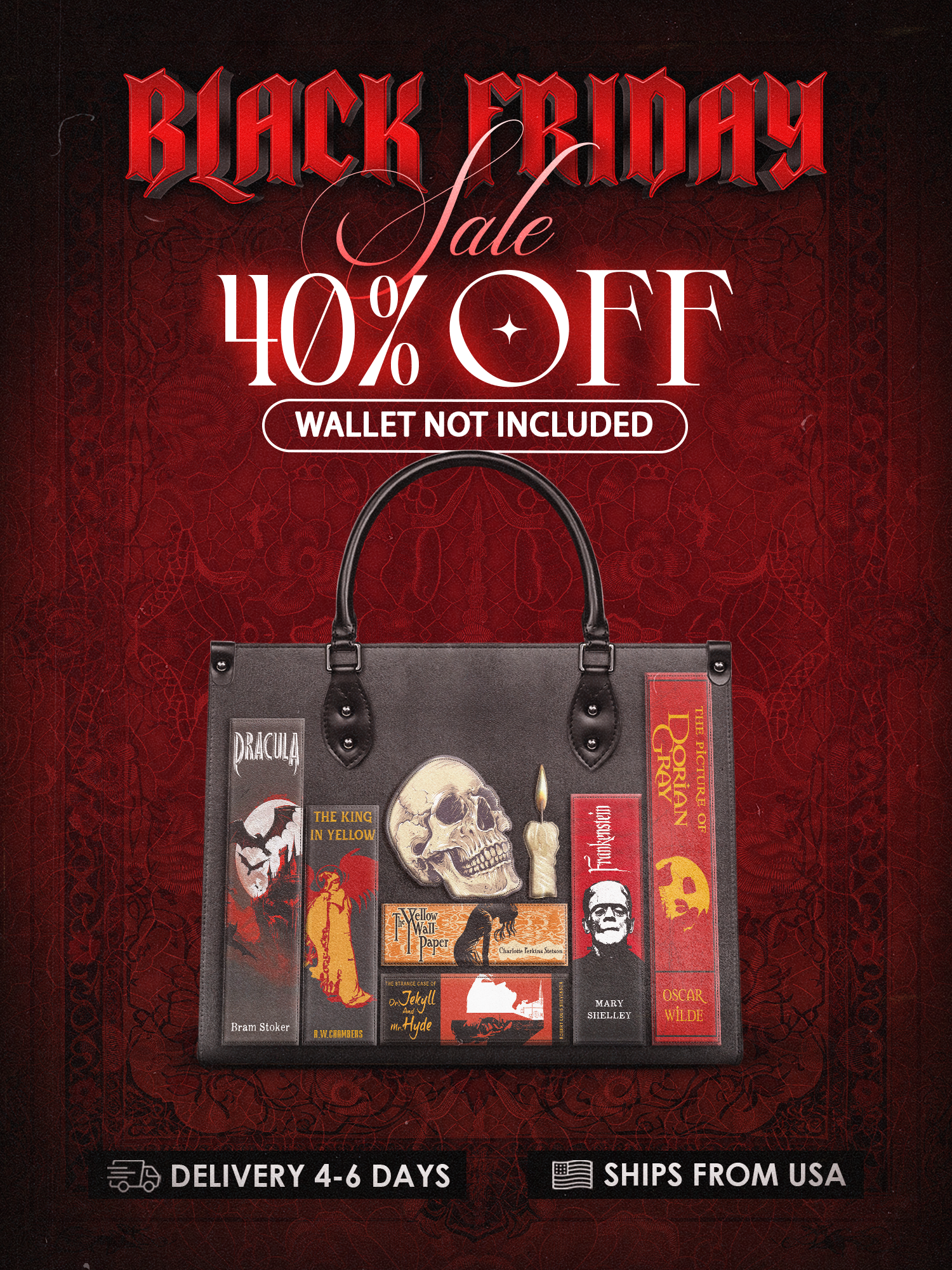This Codex of Gothic Tales Leather Handbag is dripping with eerie elegance. A haunting collection of classic horror books—Dracula, Frankenstein, The Picture of Dorian Gray, The King in Yellow, and more—stacked together like a forbidden library. A weathered skull, a flickering candle, and vintage textures bring the dark academia aesthetic to life. Made from high-quality leather with sleek black handles and gold accents, this bag is perfect for book lovers, gothic souls, and those who love a touch of mystery. Dare to carry the dark tales that never fade?