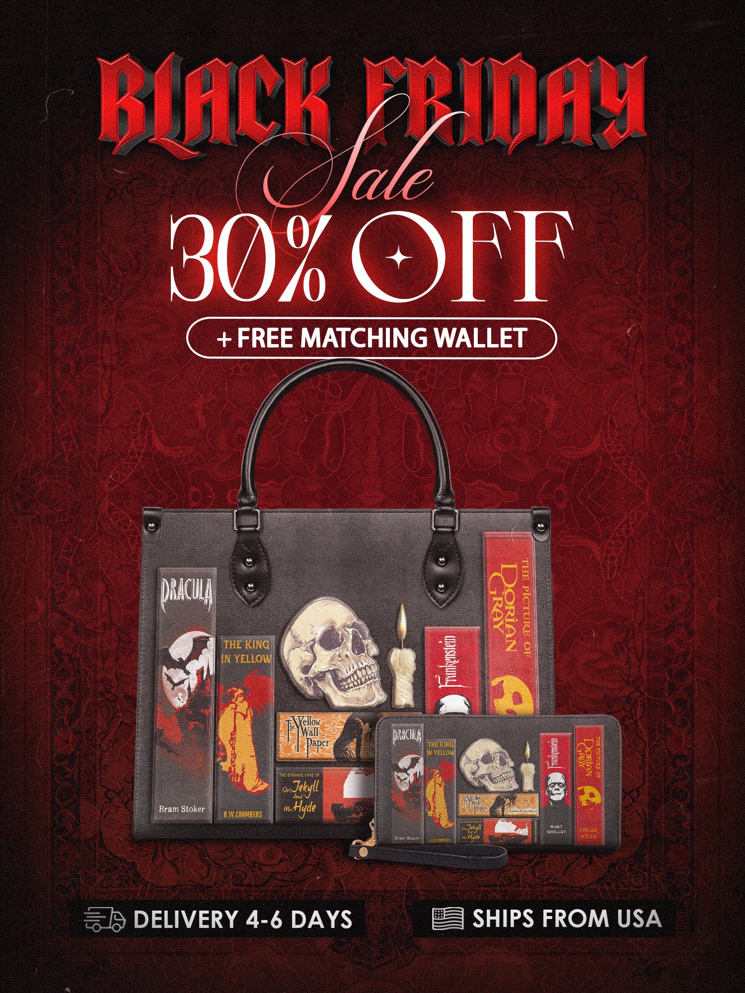 "The Codex of Gothic Tales" Deadlight Black Leather Handbag Deal