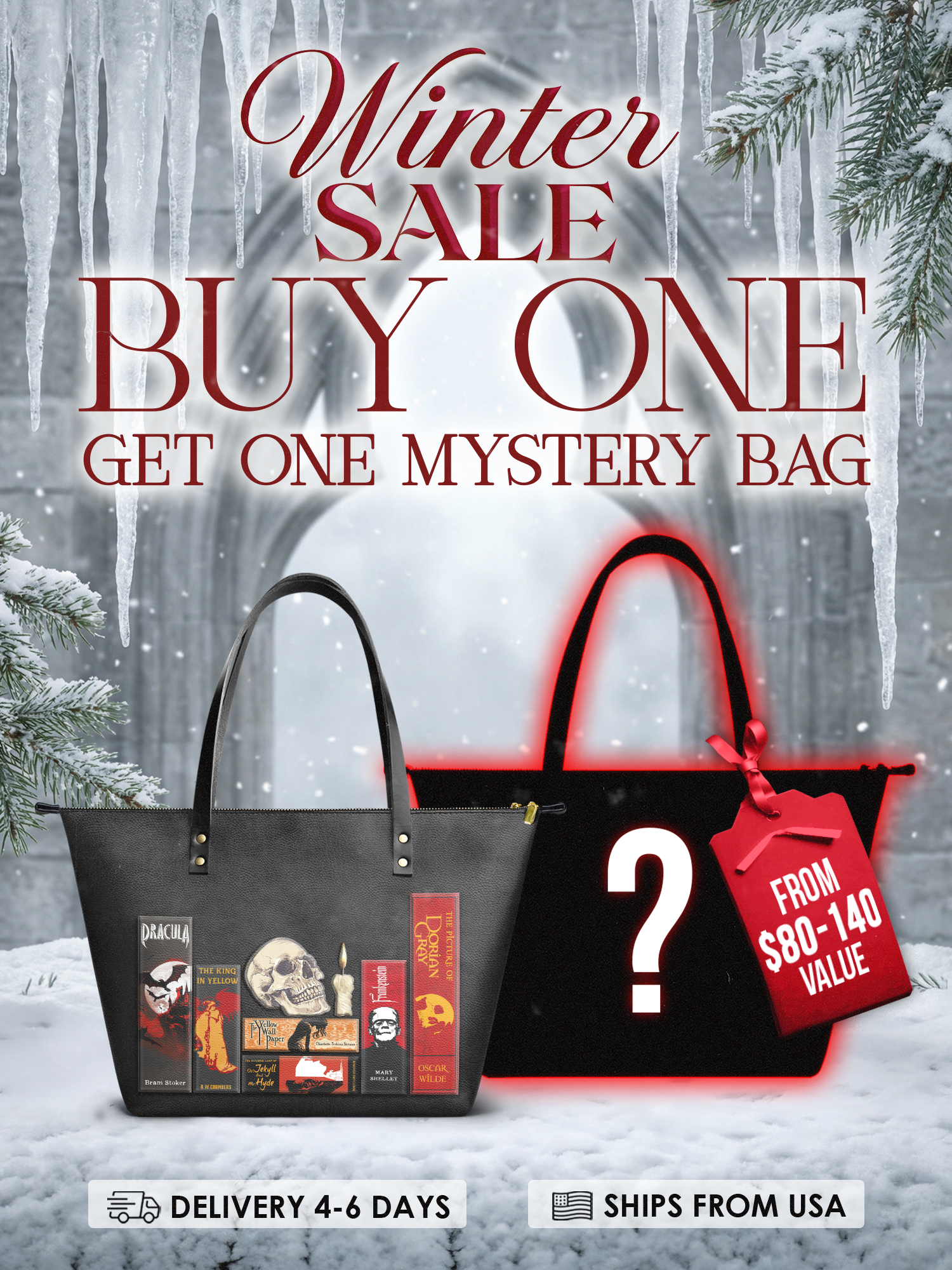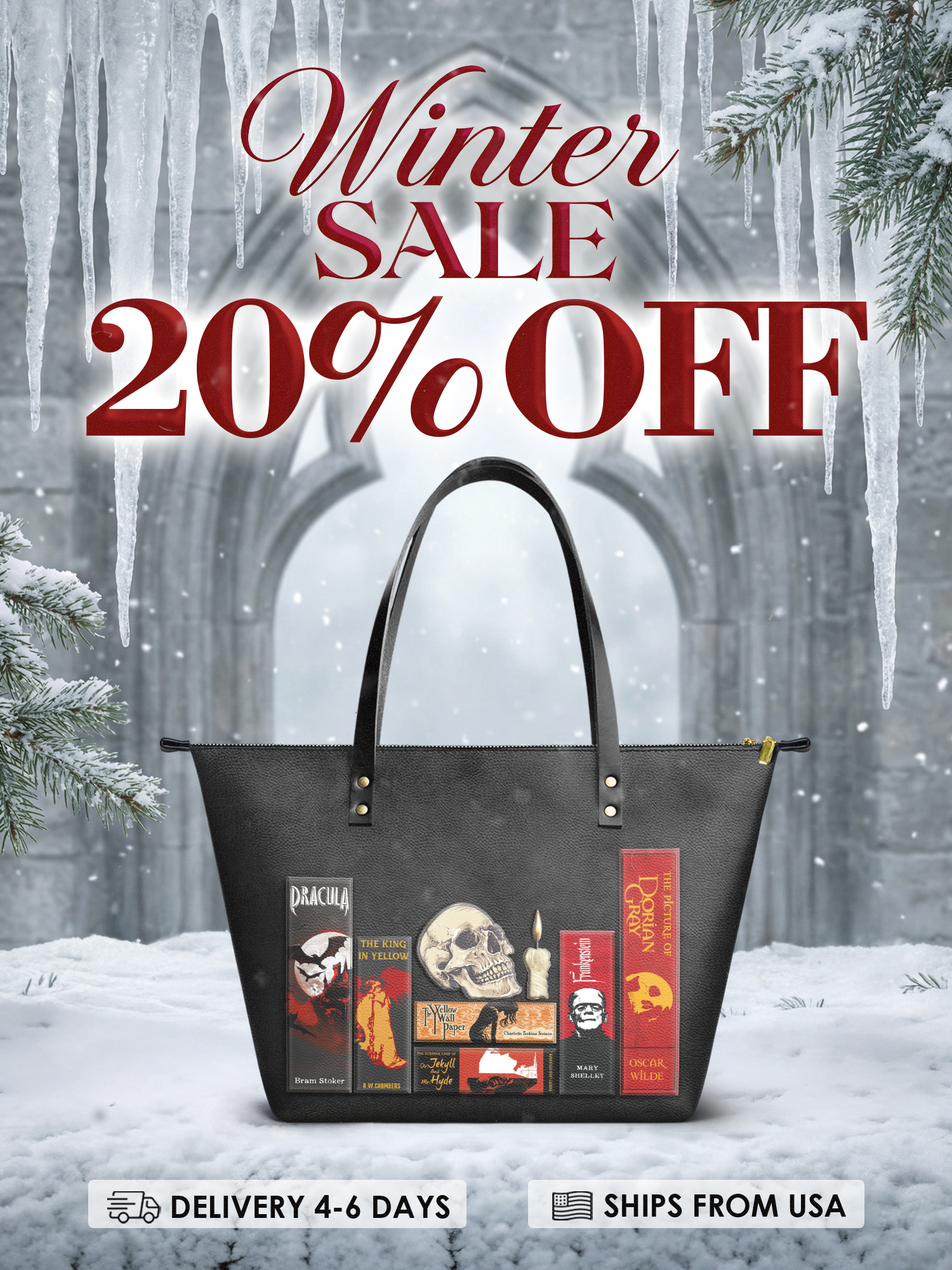 This Codex of Gothic Tales Leather Tote is the perfect mix of mystery and macabre. Featuring Dracula, Frankenstein, The Picture of Dorian Gray, and more, it's like carrying a haunted library with you. A skull, a flickering candle, and deep, moody tones set the stage for classic horror fans, dark academia lovers, and anyone drawn to gothic elegance. Books tell stories—this tote tells yours.