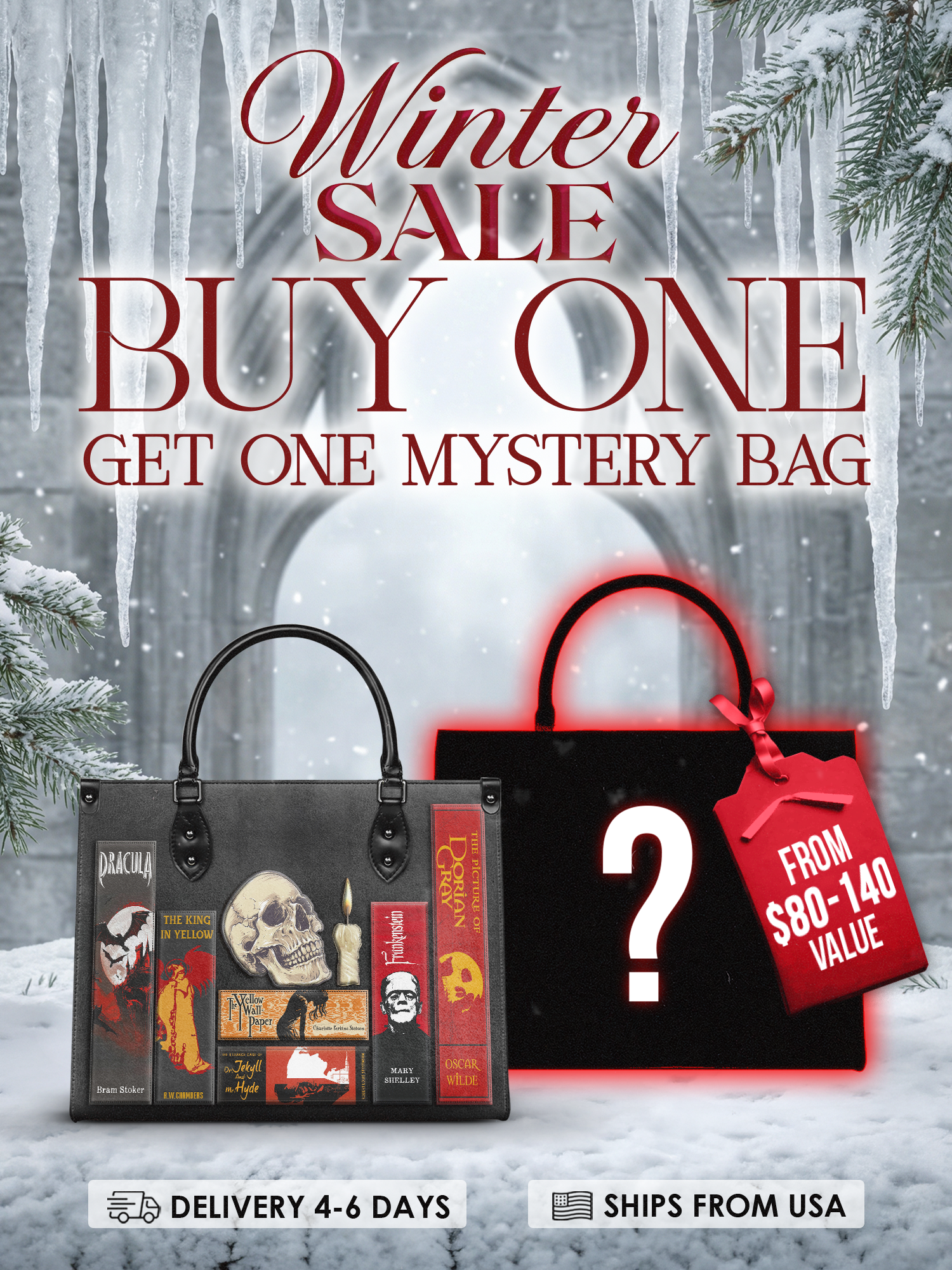 This Codex of Gothic Tales Leather Handbag is dripping with eerie elegance. A haunting collection of classic horror books—Dracula, Frankenstein, The Picture of Dorian Gray, The King in Yellow, and more—stacked together like a forbidden library. A weathered skull, a flickering candle, and vintage textures bring the dark academia aesthetic to life. Made from high-quality leather with sleek black handles and gold accents, this bag is perfect for book lovers, gothic souls, and those who love a touch of mystery. Dare to carry the dark tales that never fade?