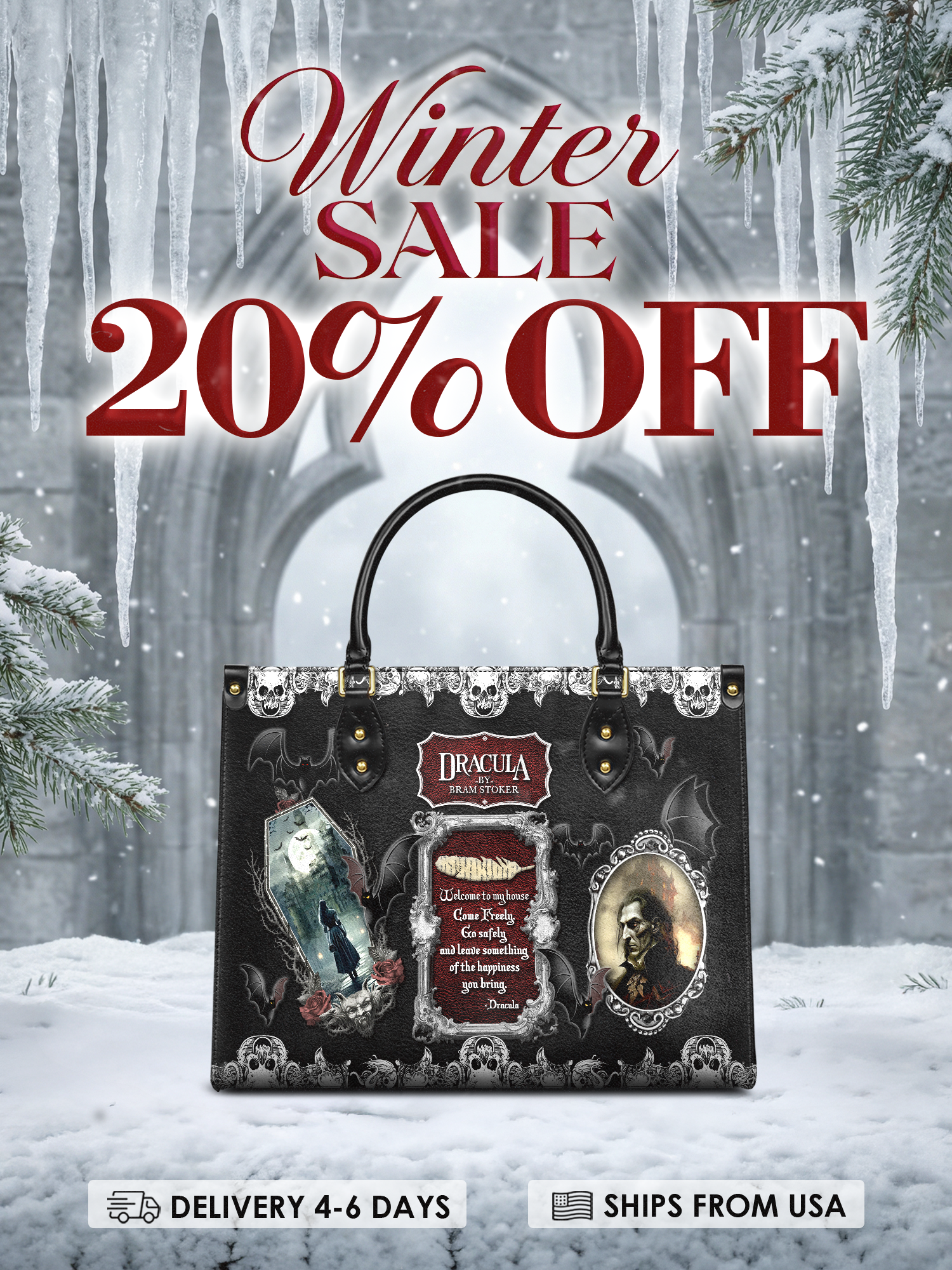 This Dracula Leather Handbag is dark, gothic, and full of eerie charm. The haunting design features Count Dracula, bats, skulls, and an eerie castle, all wrapped in vintage horror vibes. A chilling quote invites you into the vampire’s world—if you dare. Made from high-quality leather with sturdy black handles and gold details, this bag is perfect for book lovers, horror fans, and anyone who finds beauty in the shadows. Enter freely… and carry a little darkness with you.