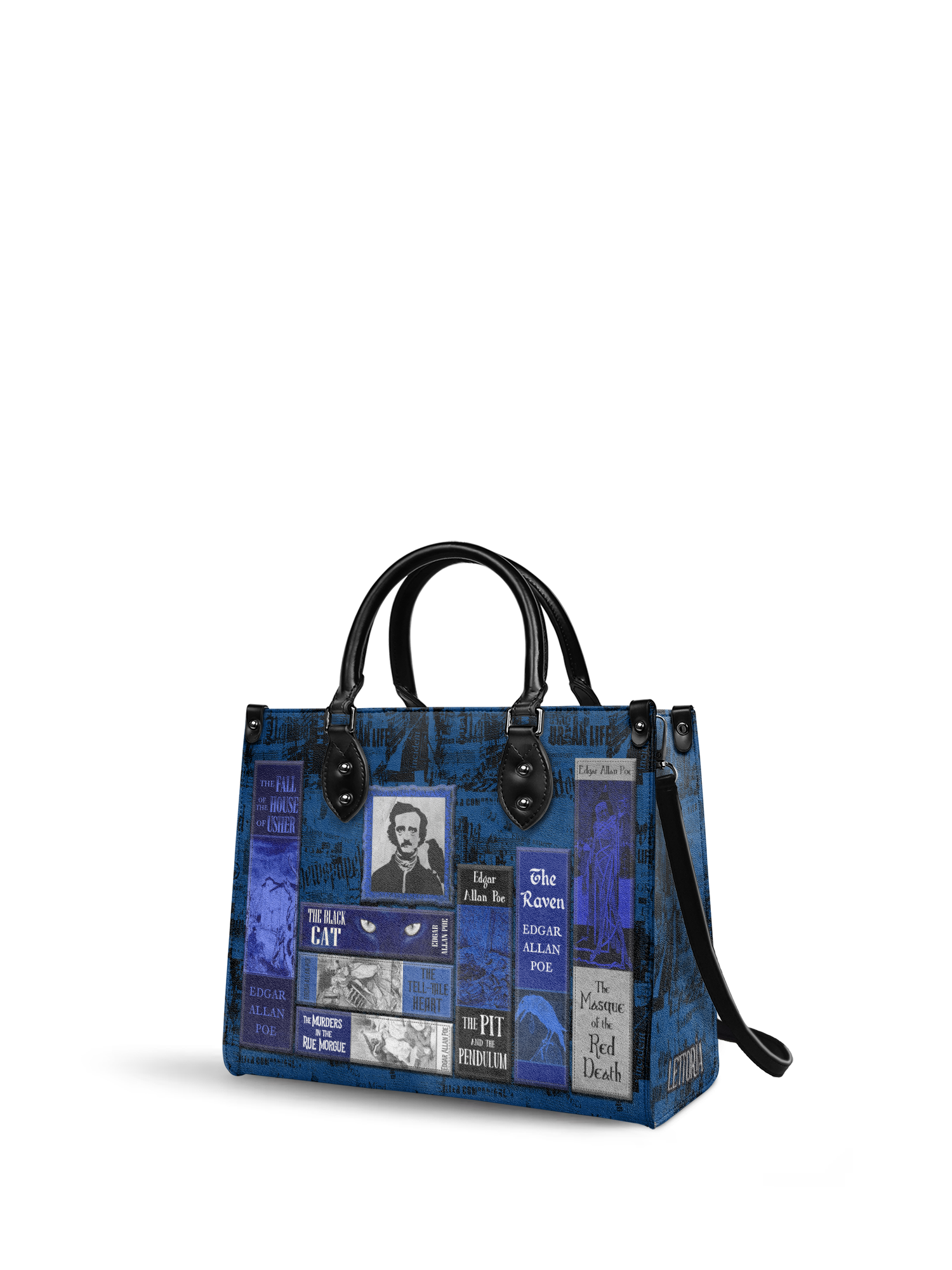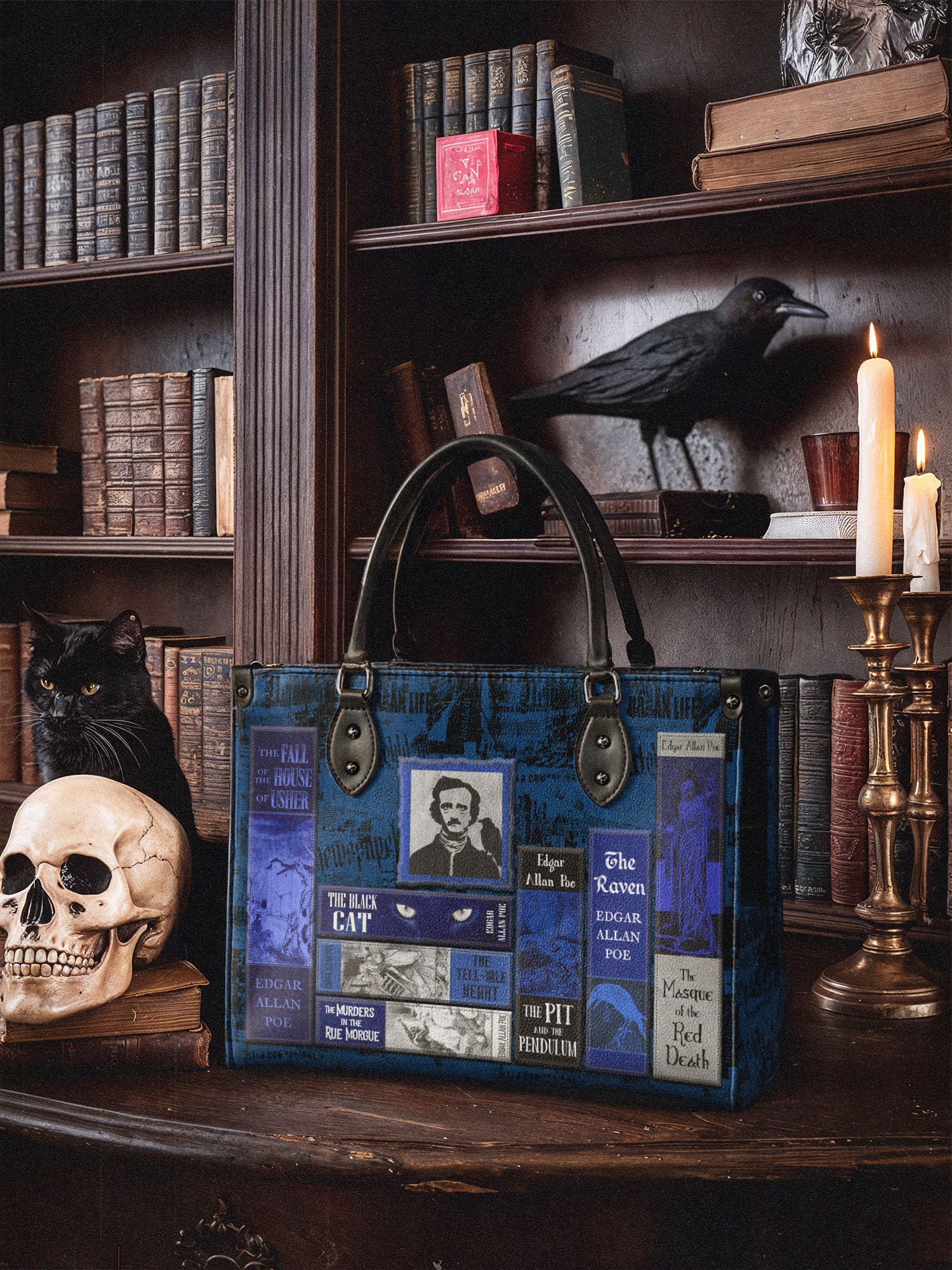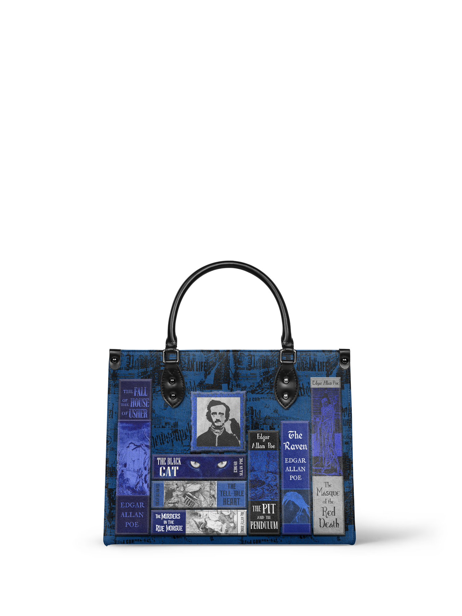 "Poe's Library" Midnight Ink - Black Interior - Leather Handbag
