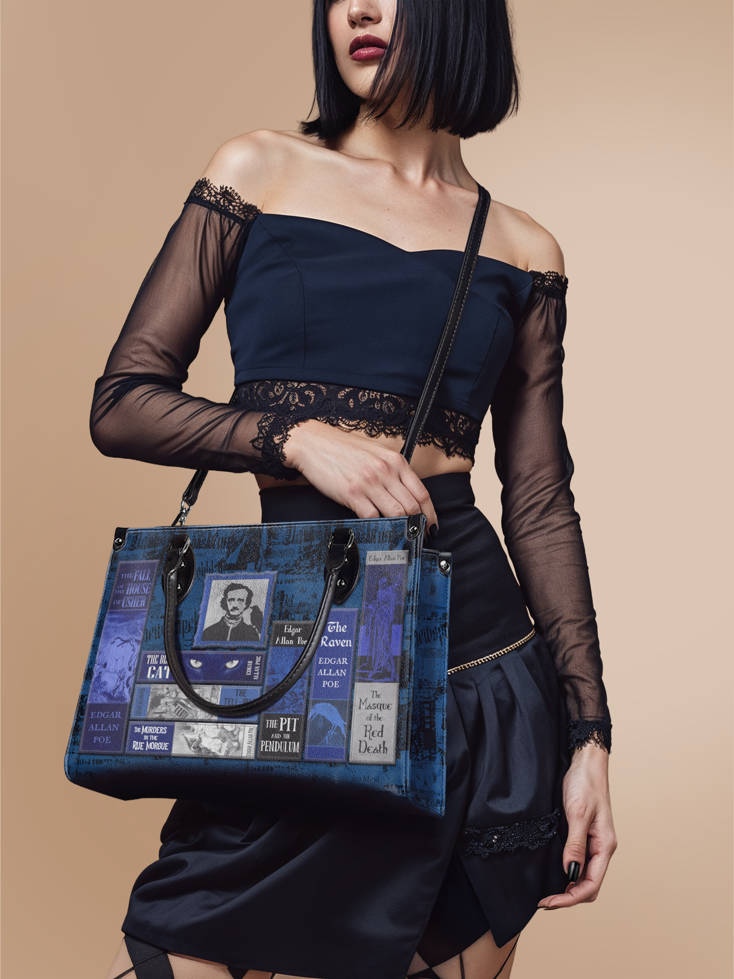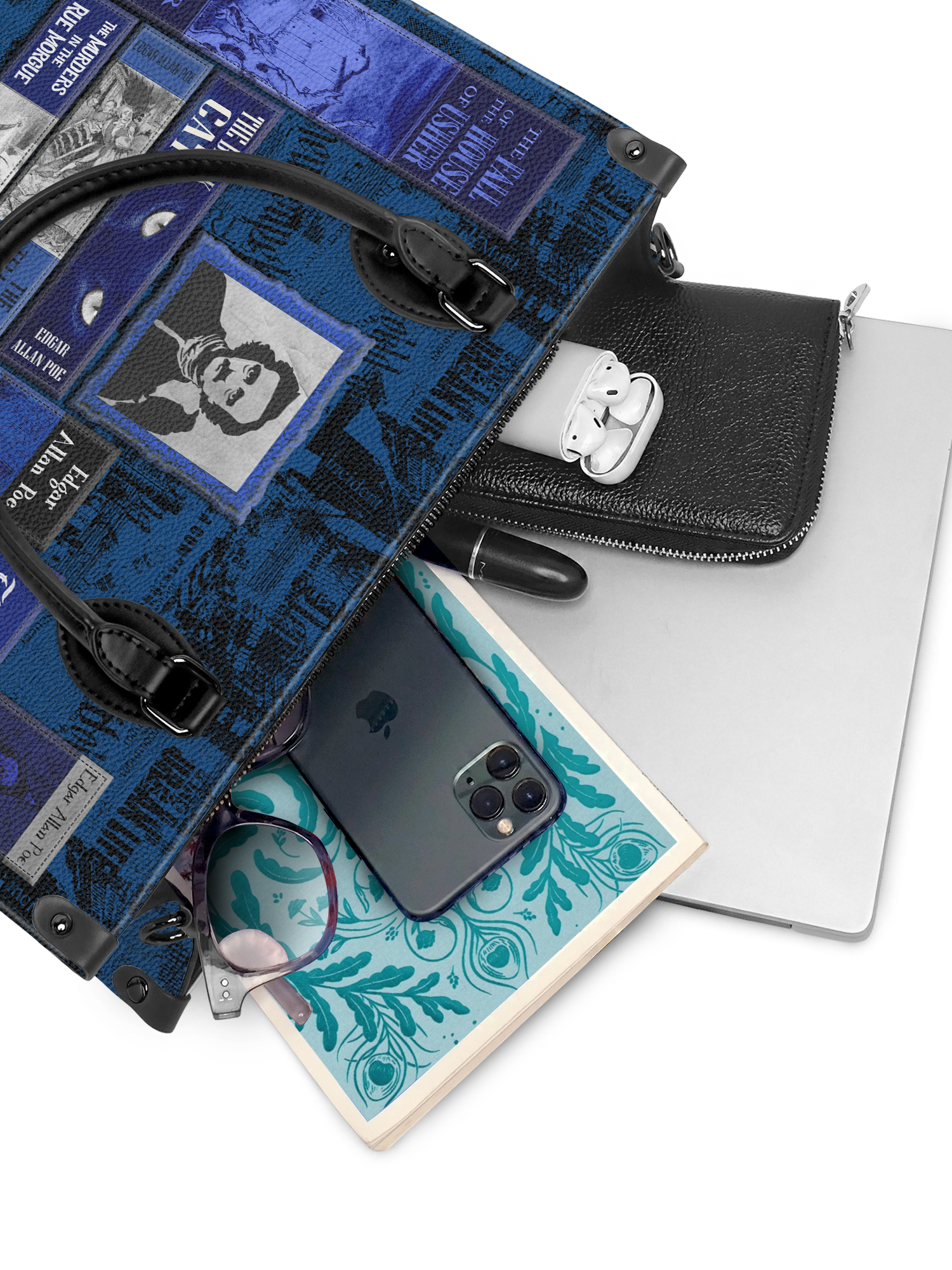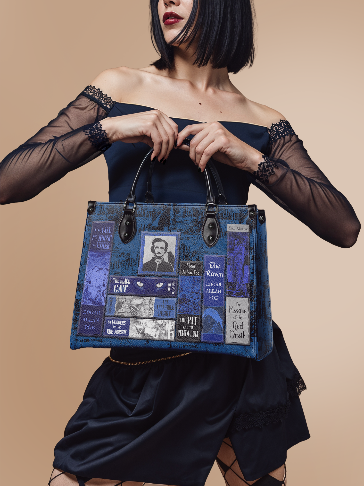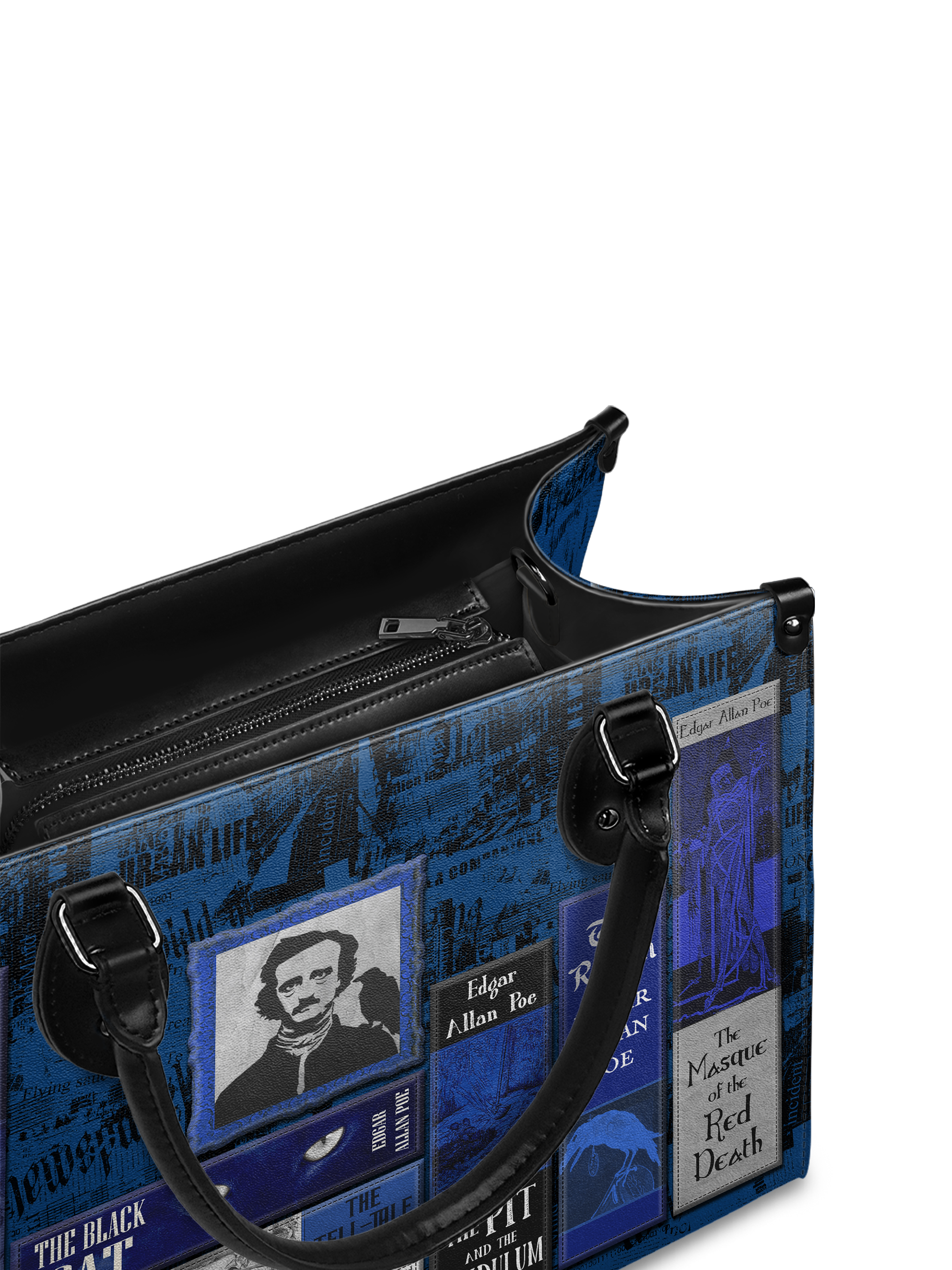"Poe's Library" Midnight Ink - Black Interior - Leather Handbag