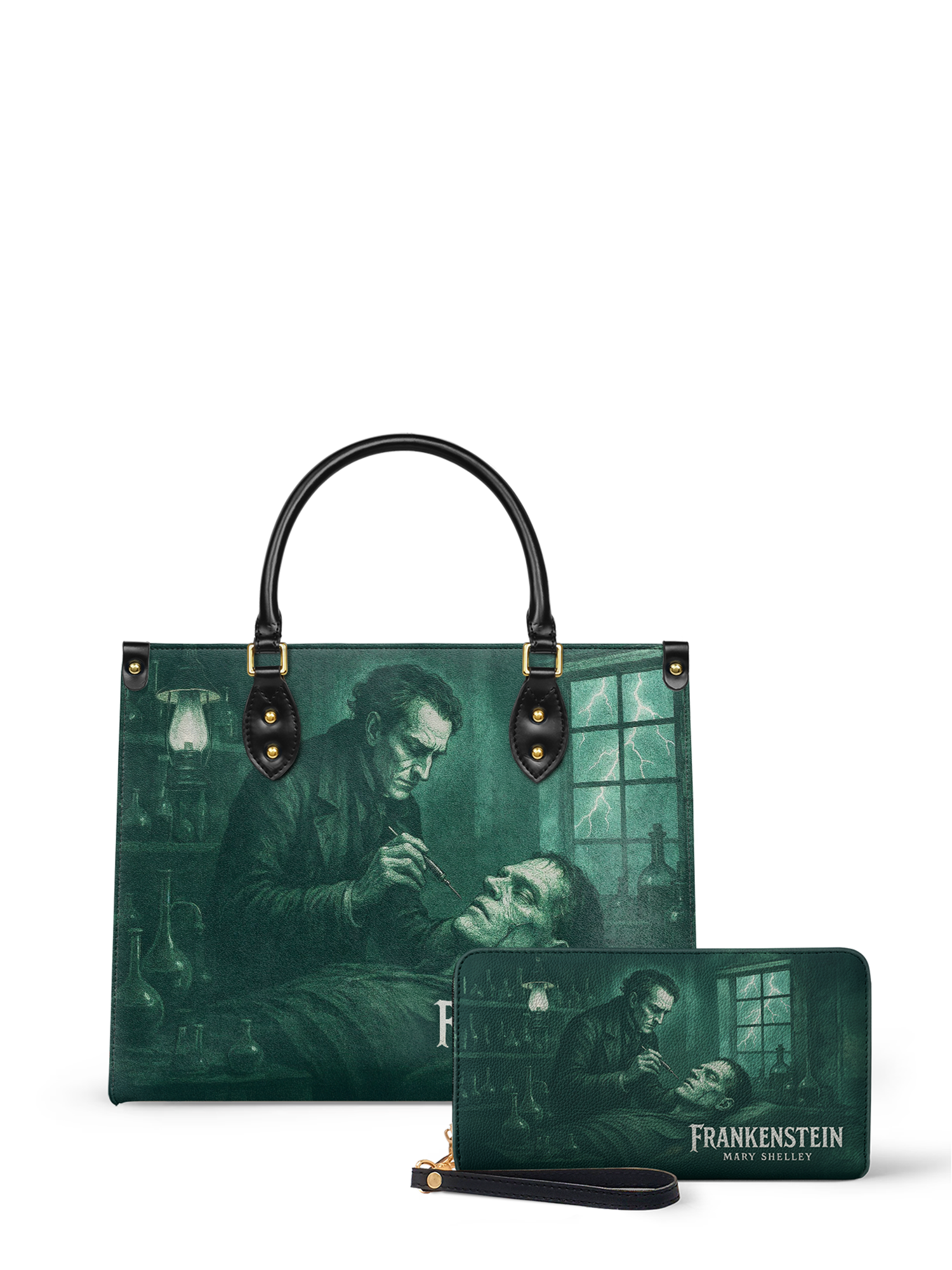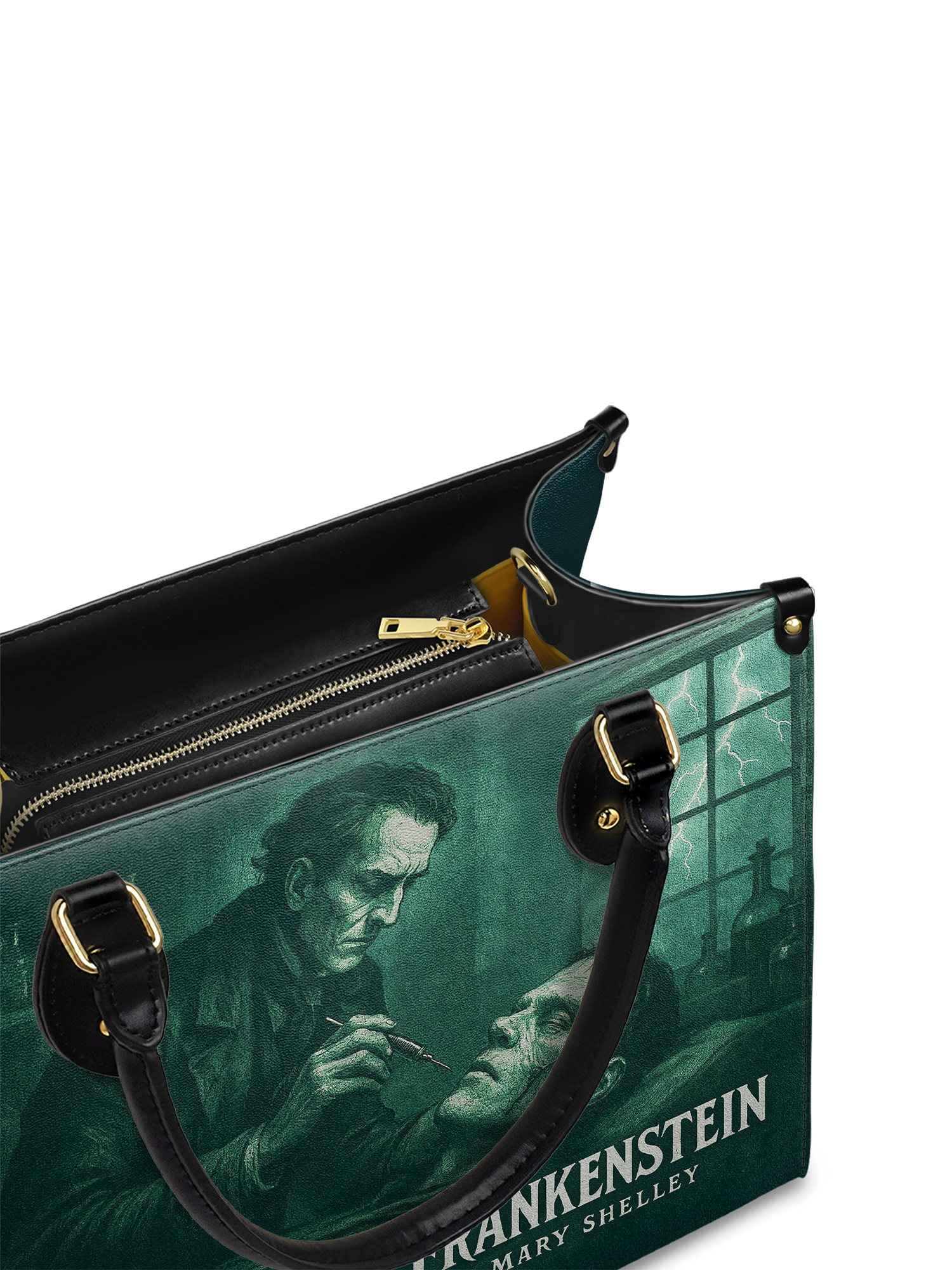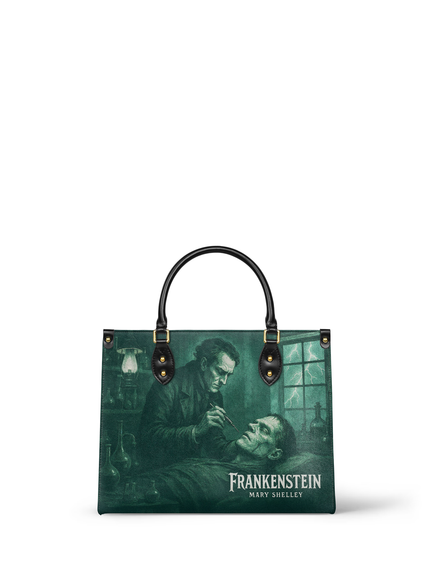 The Green Frankenstein handbag channels vintage horror at its most haunting. With eerie emerald tones and classic film imagery, it’s a love letter to the original tale of terror and creation. Elegant, eerie, and steeped in cinematic nostalgia—it’s horror history you can carry.