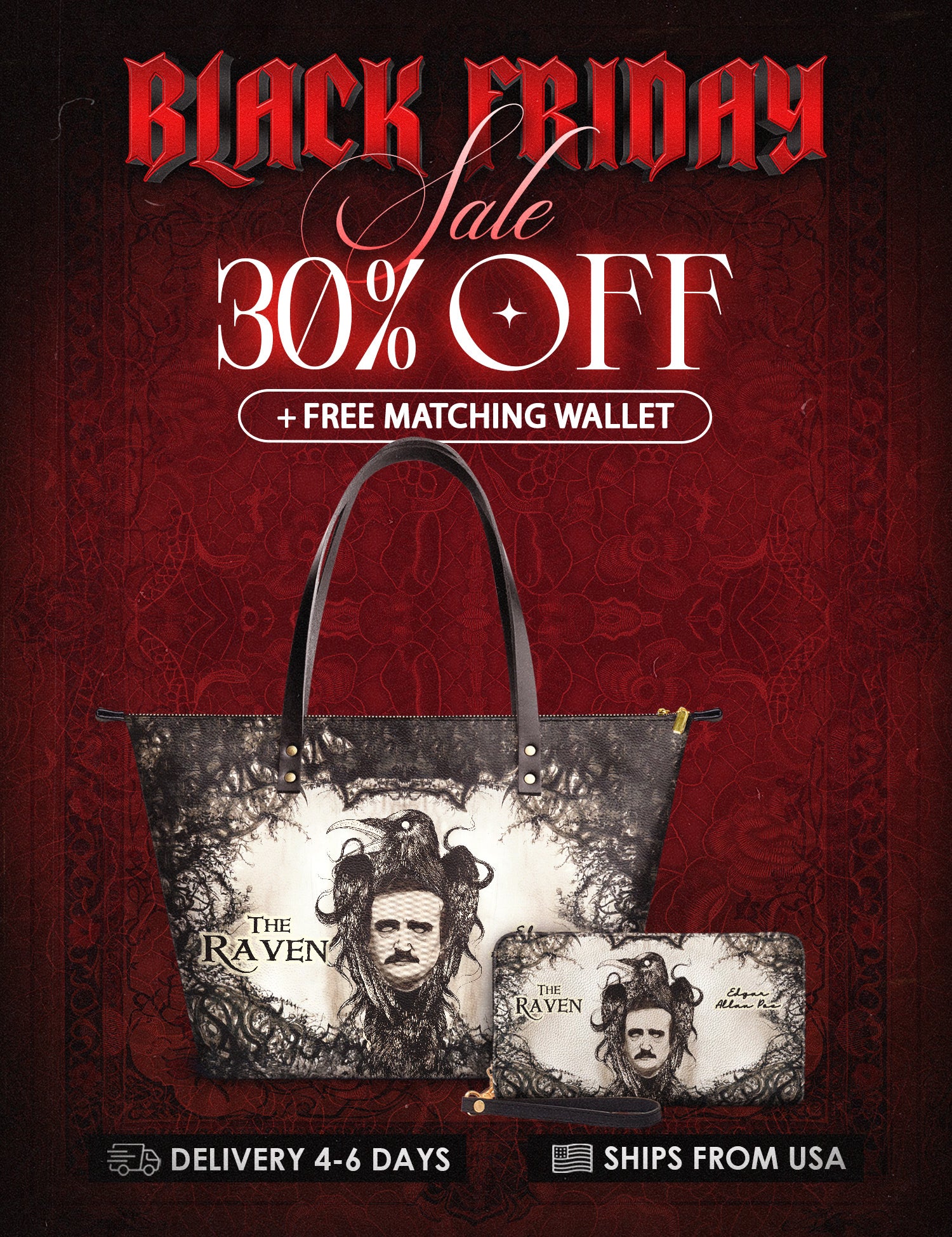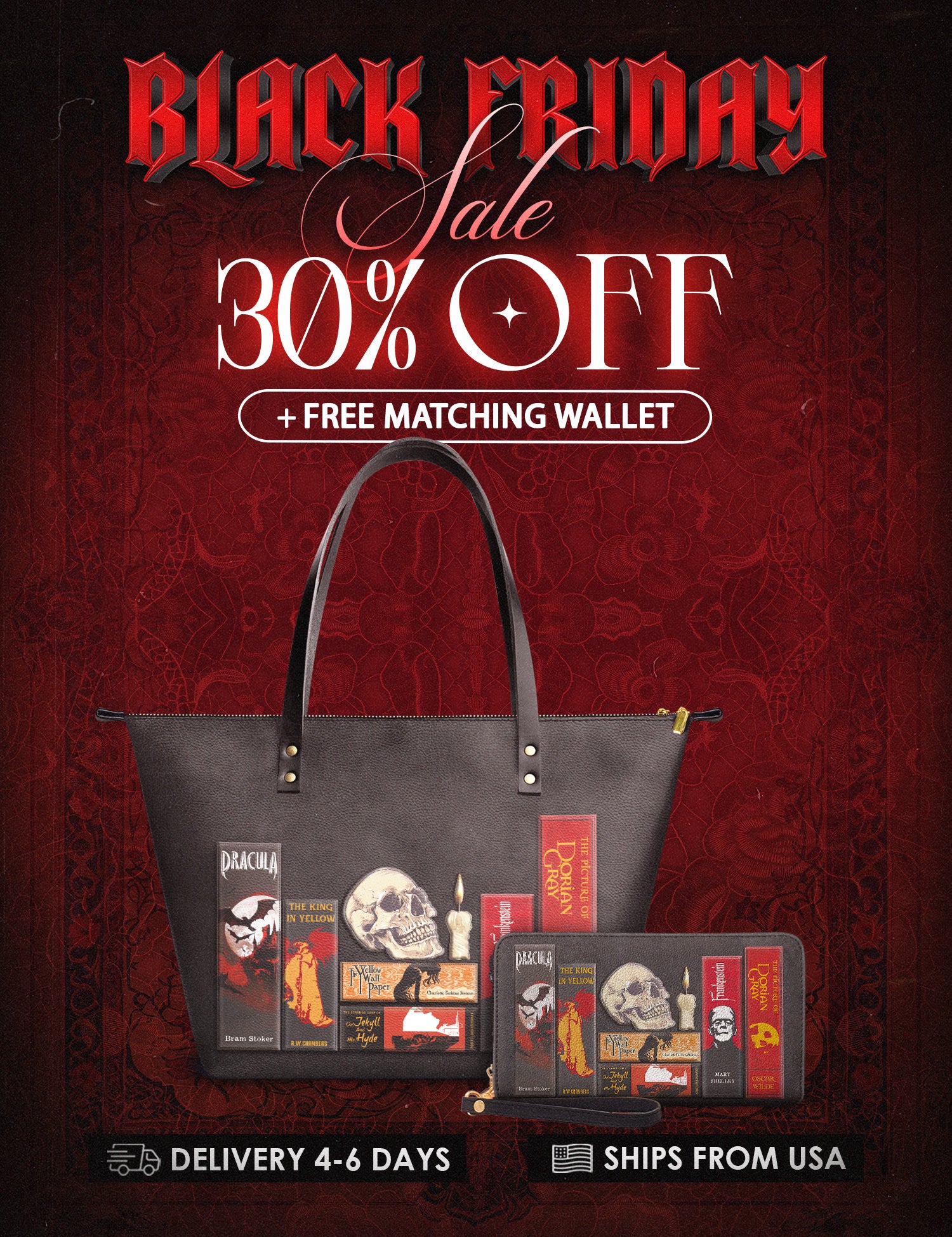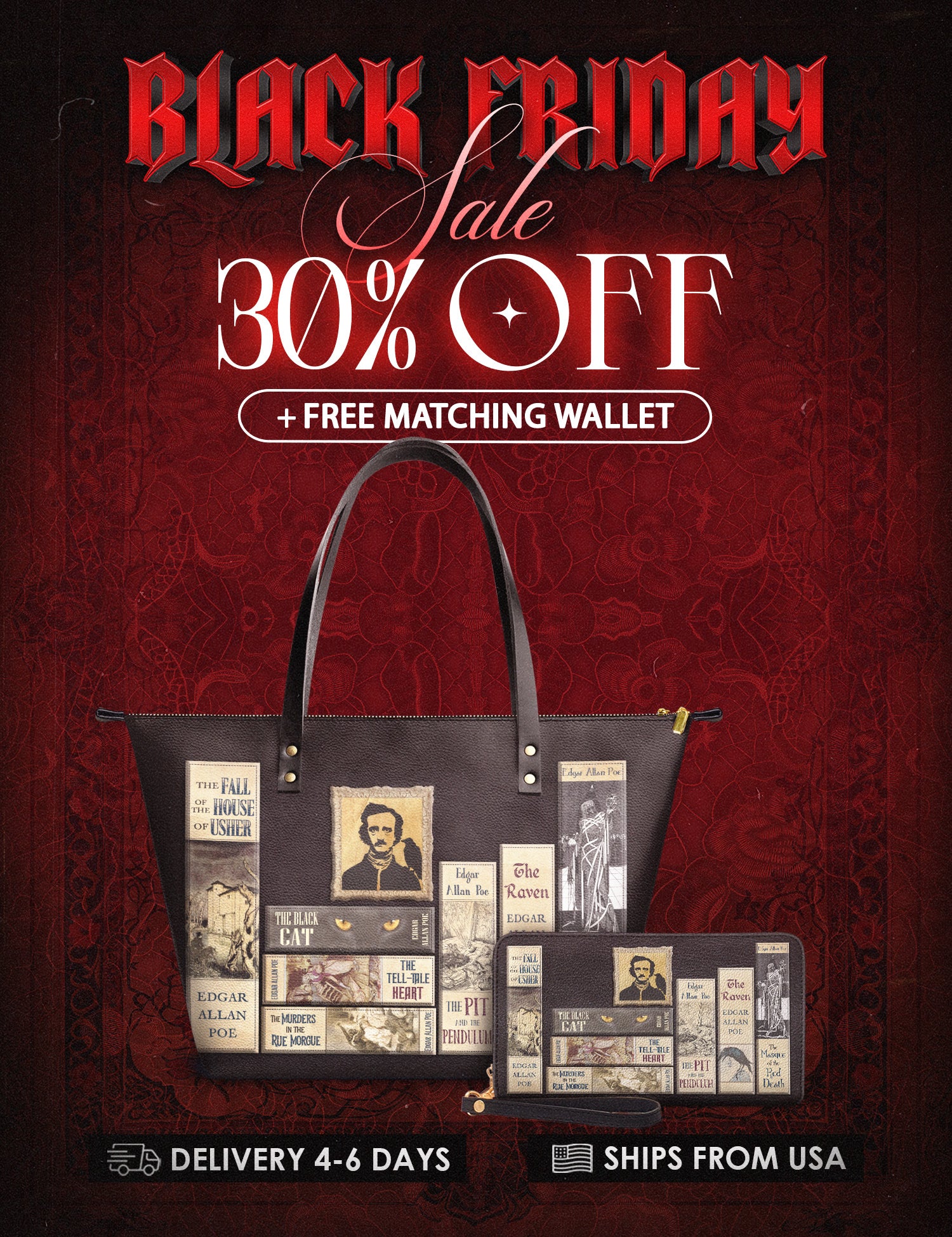 "Poe's Library" Ashen Black Leather Tote Bag Deal