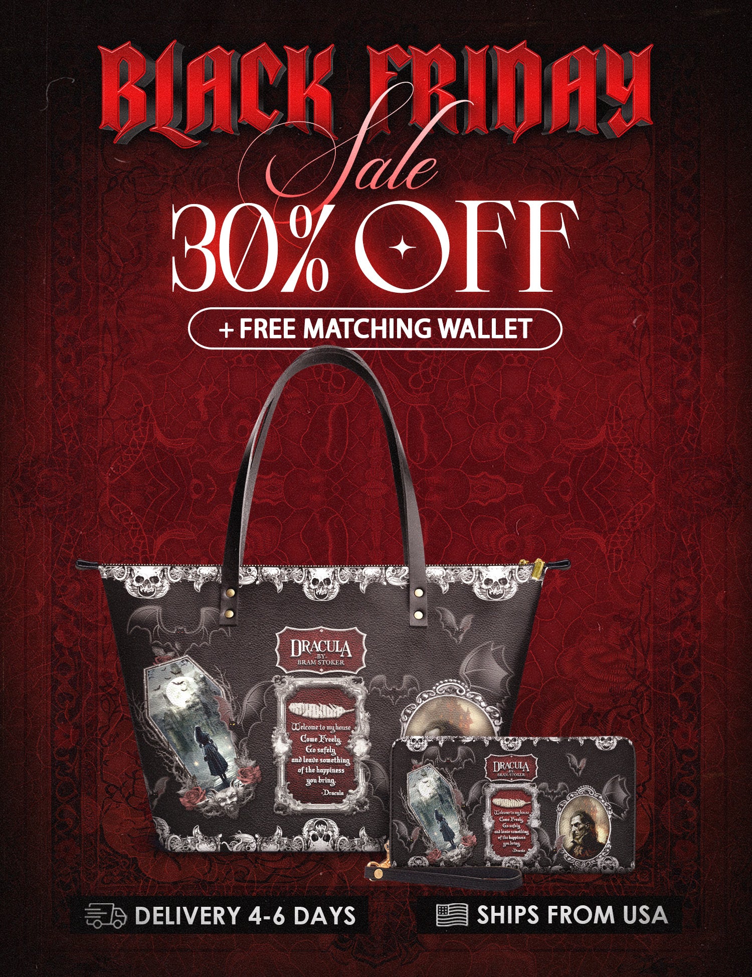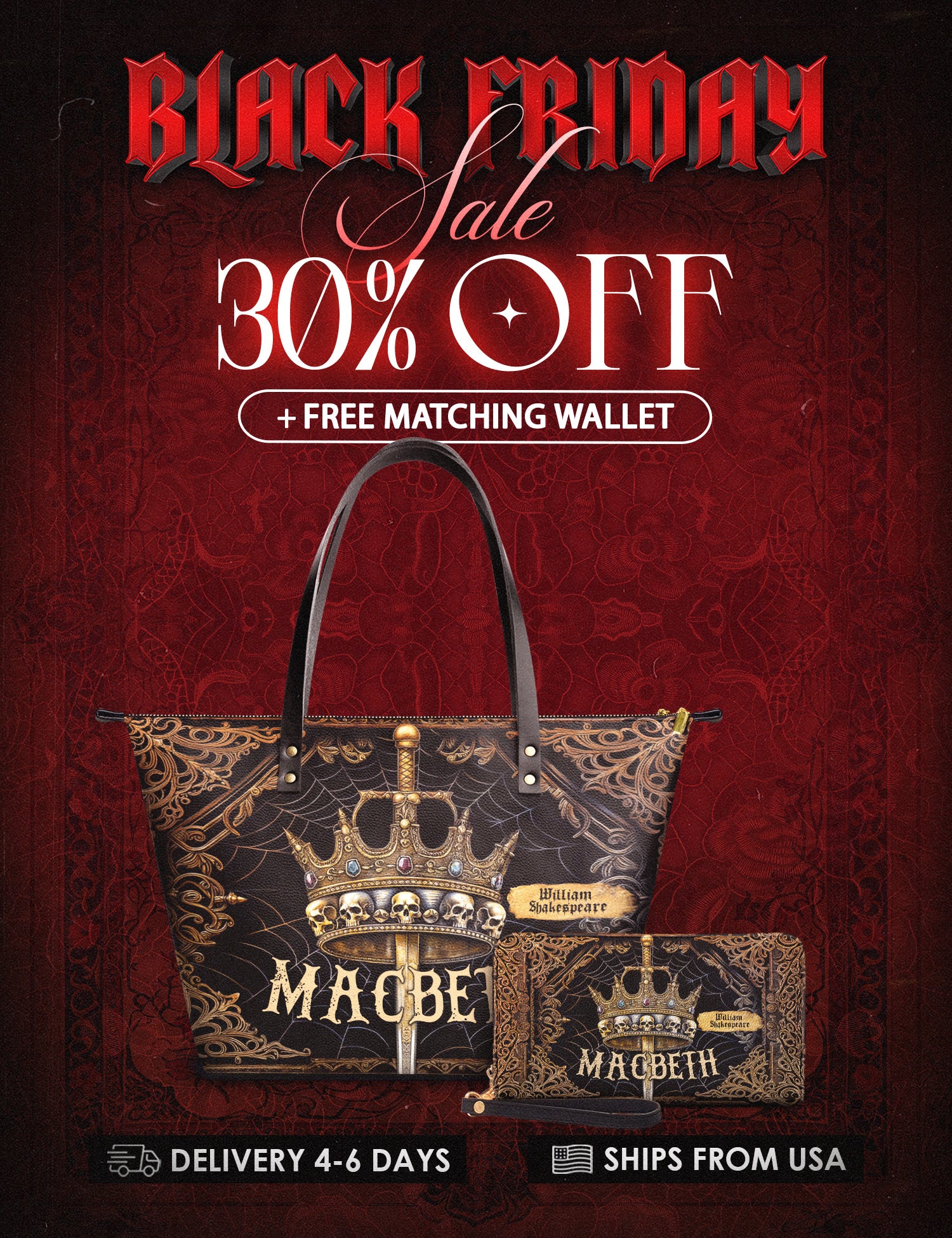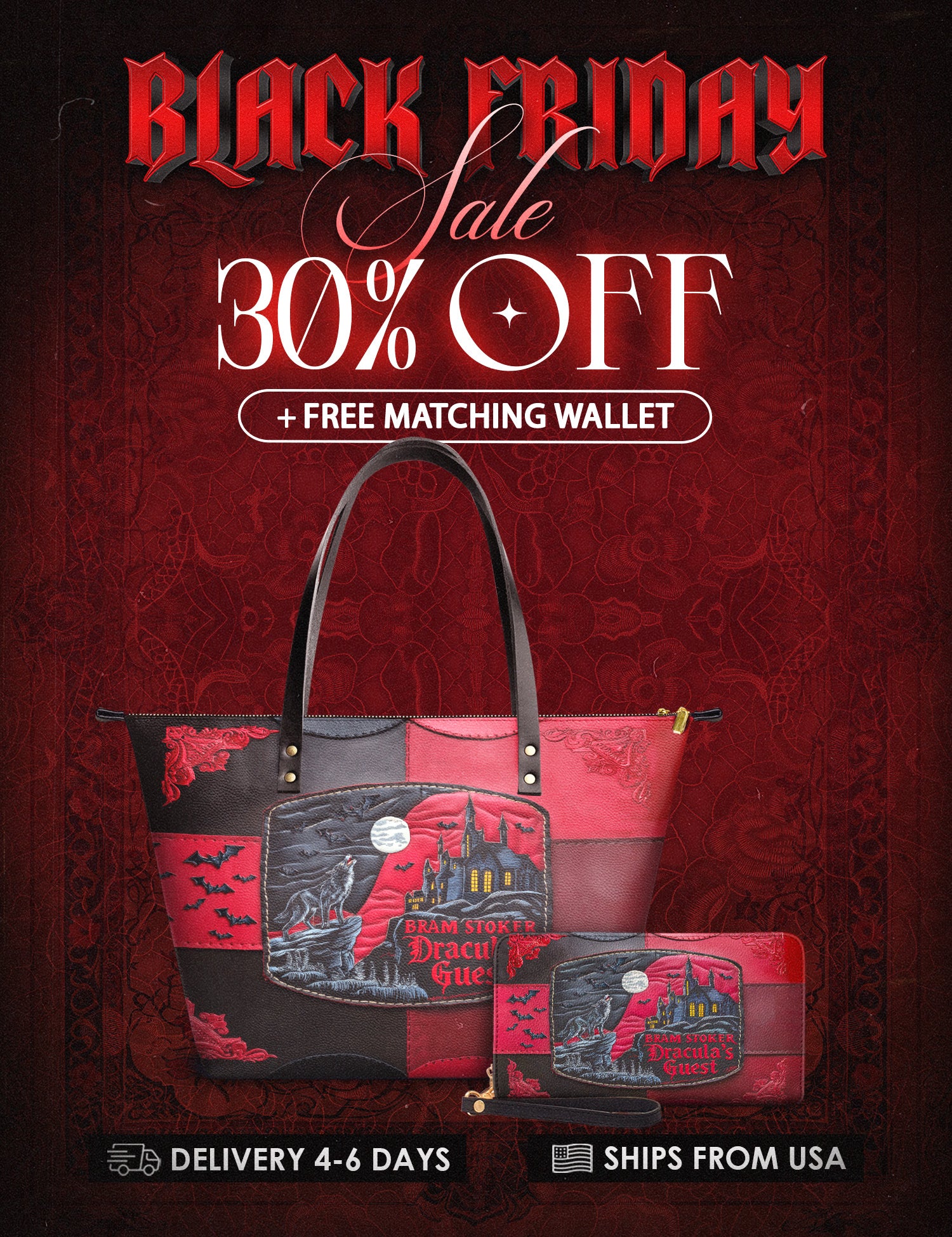 "Poe's Library" Ashen Black Leather Tote Bag Deal