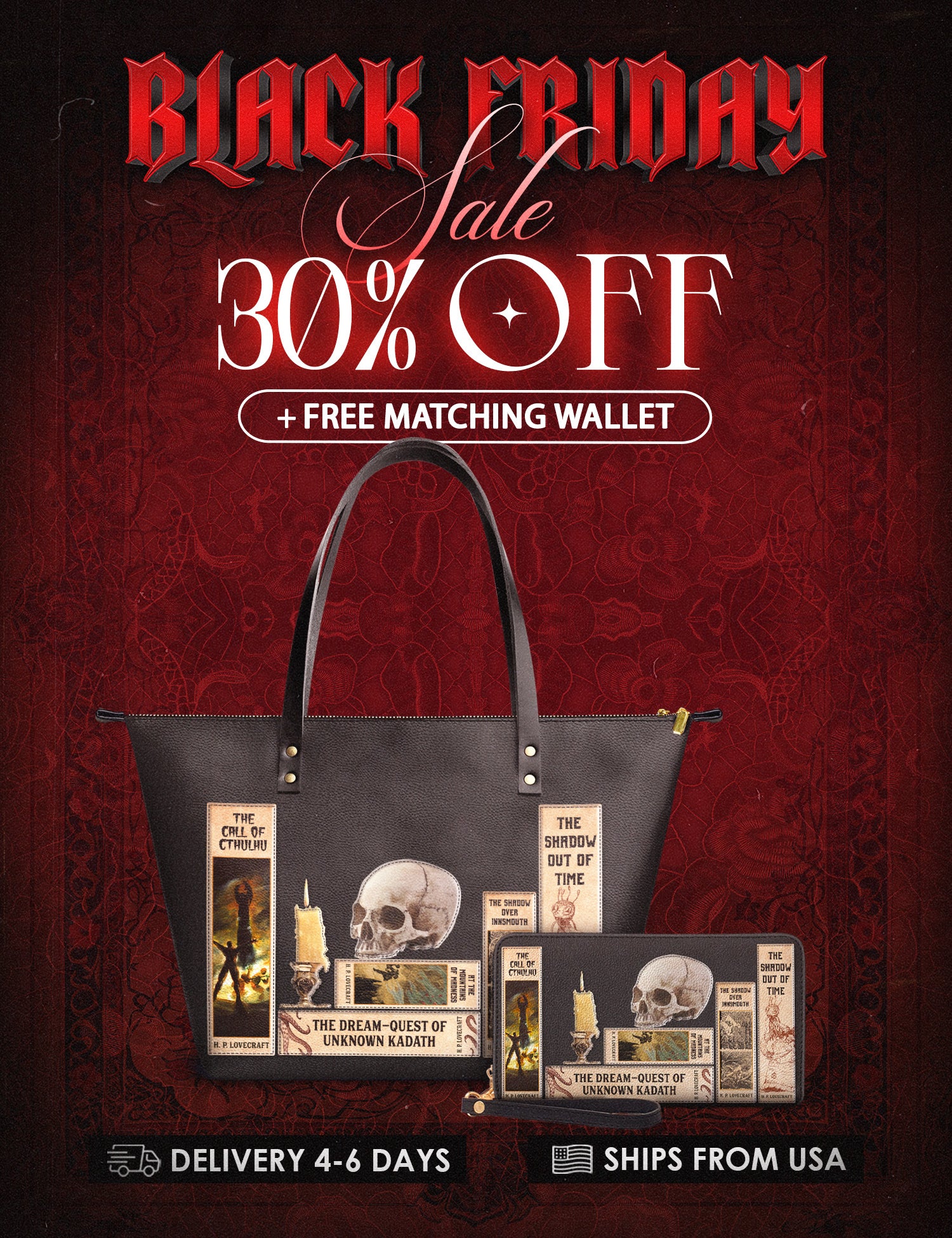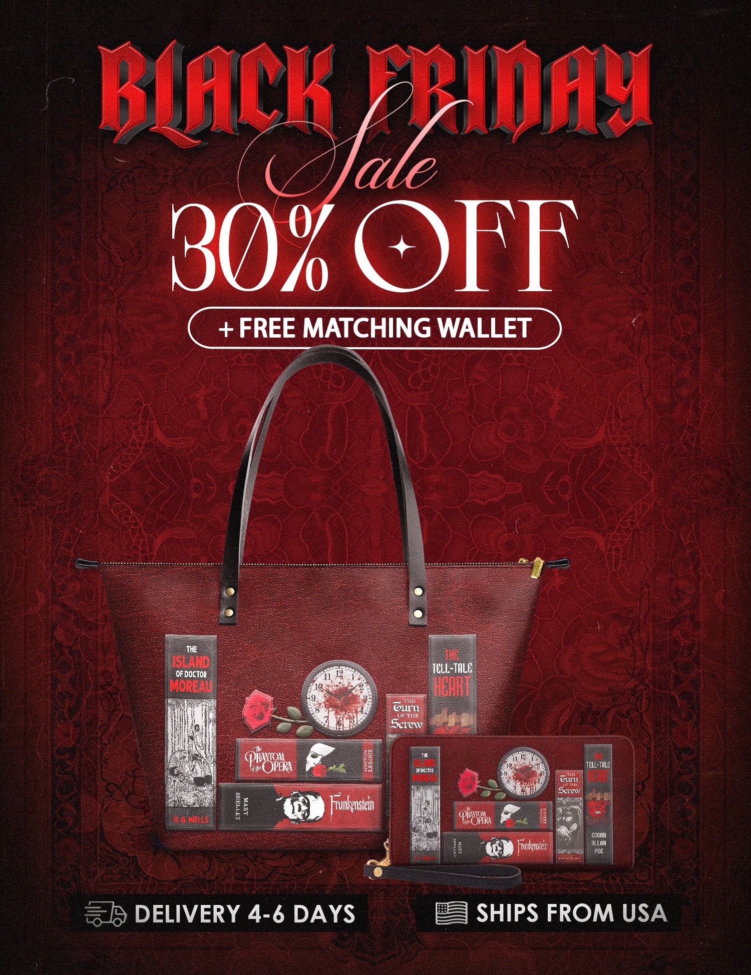 "The Codex of Gothic Tales" Deadlight Black Leather Tote Bag Deal