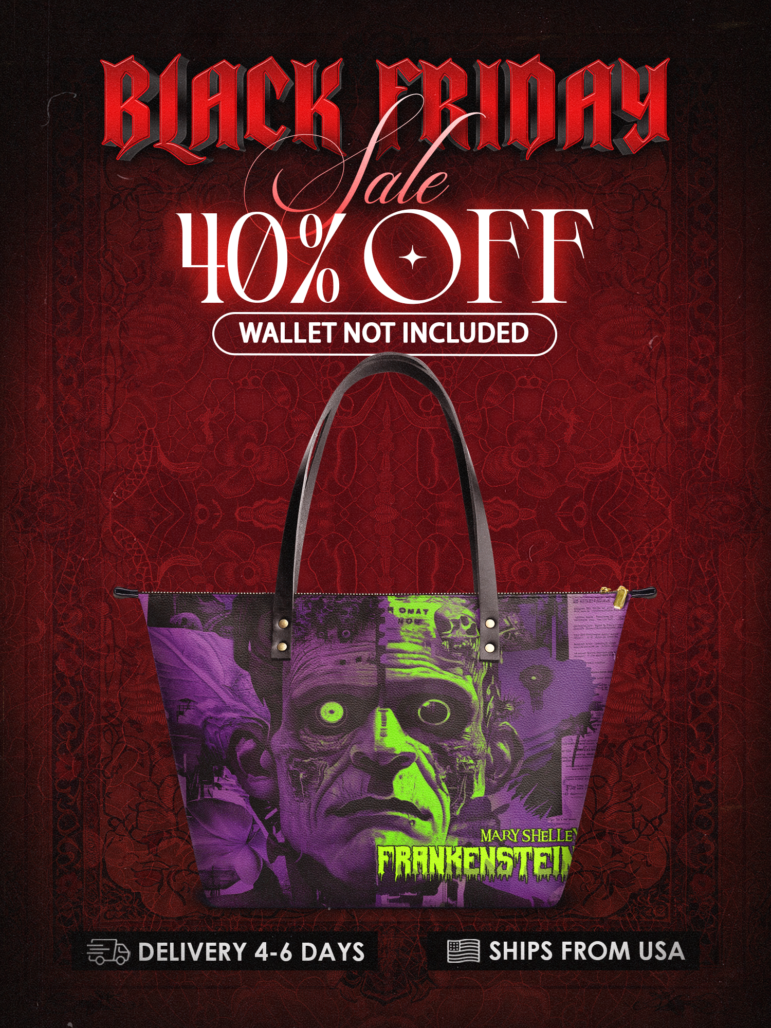 Handcrafted in the United States, this Premium Vegan Leather tote transforms mundane errands into a procession through the House of Usher.