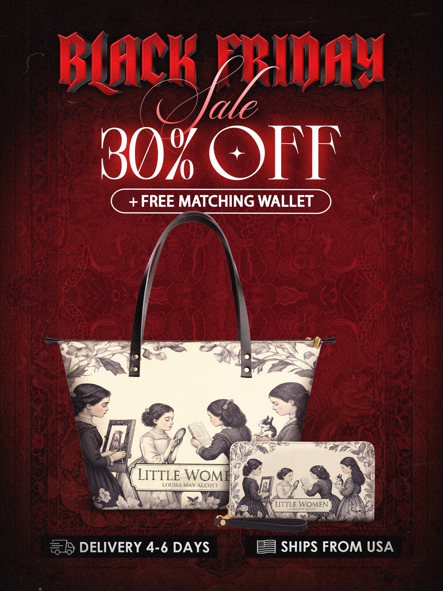 This Little Women Leather Tote is classic, timeless, and full of heart—just like the story. The vintage-style design captures the March sisters in a soft, floral setting, each lost in their own world of art, books, and dreams. It’s elegant, cozy, and made for kindred spirits. Crafted from high-quality leather with sturdy black handles and gold hardware, this tote is perfect for book lovers, romantics, and anyone who treasures sisterhood and storytelling.