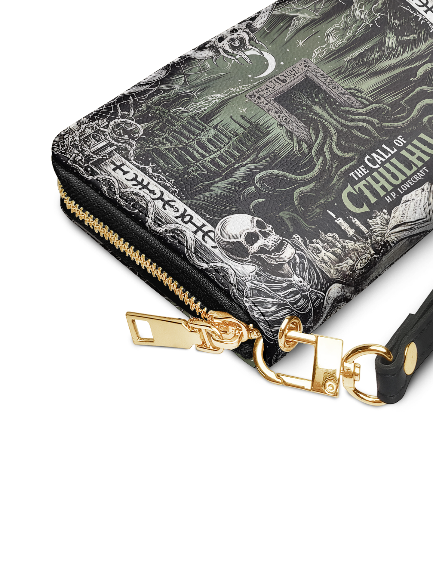 Omg! I love this wallet! I got the Codex of Gothic Tales with the cobwebs. I'm so excited I can't think of the actual title. Please forgive me. It's more stunning in person than on the website. I am saving up for the purse now. I highly recommend this site and products. Absolutely stunning wallet.