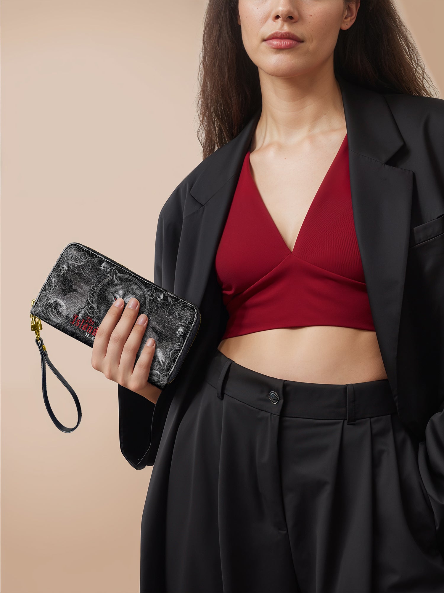 Omg! I love this wallet! I got the Codex of Gothic Tales with the cobwebs. I'm so excited I can't think of the actual title. Please forgive me. It's more stunning in person than on the website. I am saving up for the purse now. I highly recommend this site and products. Absolutely stunning wallet.