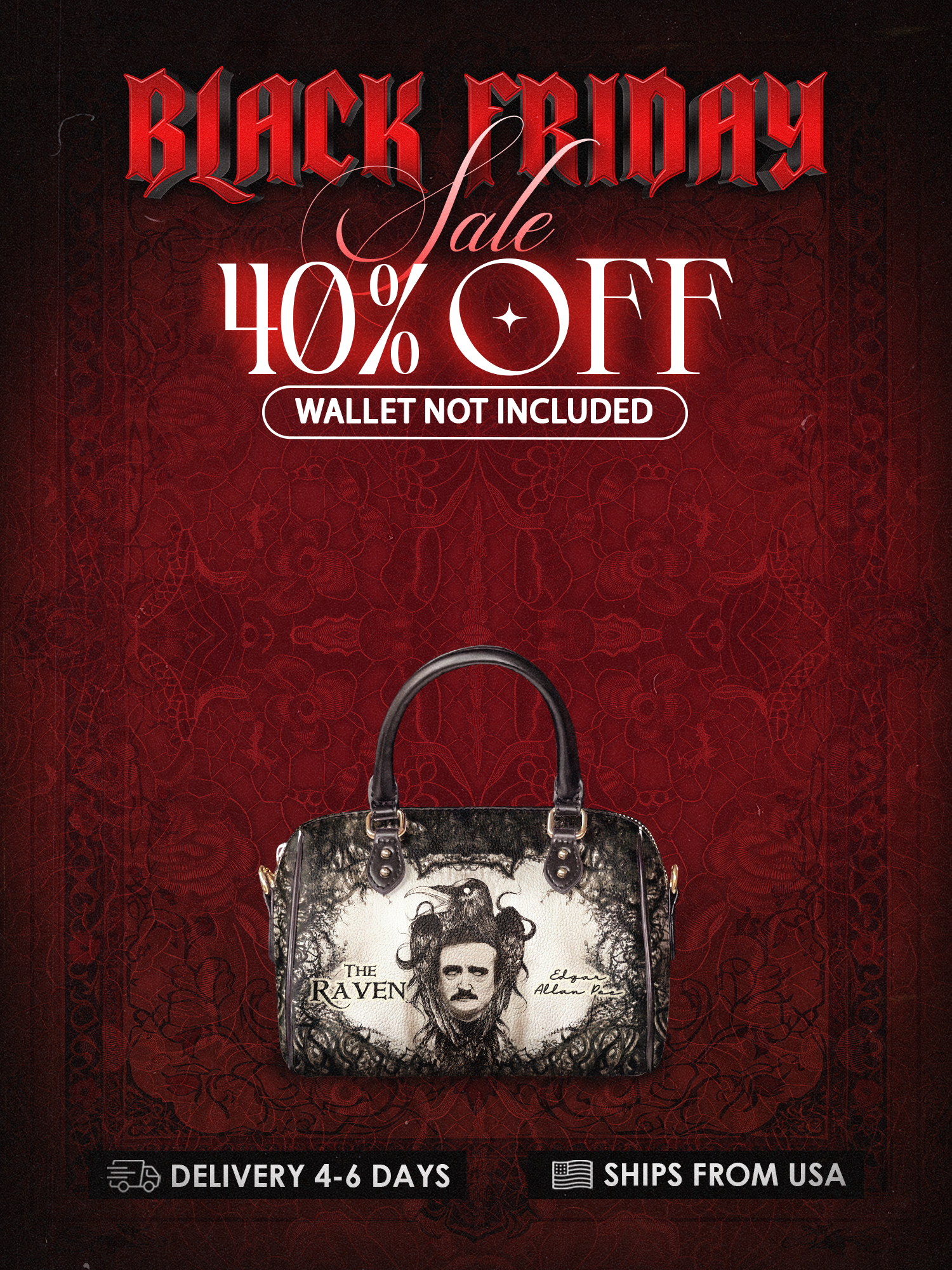 A tribute to longing, loss, and the beautiful ache of nevermore. This mini satchel doesn’t just nod to Poe’s most famous poem—it carries its mood. Somber yet poetic, eerie yet elegant, it’s made for the romantic soul who finds comfort in the dark and beauty in the melancholy.