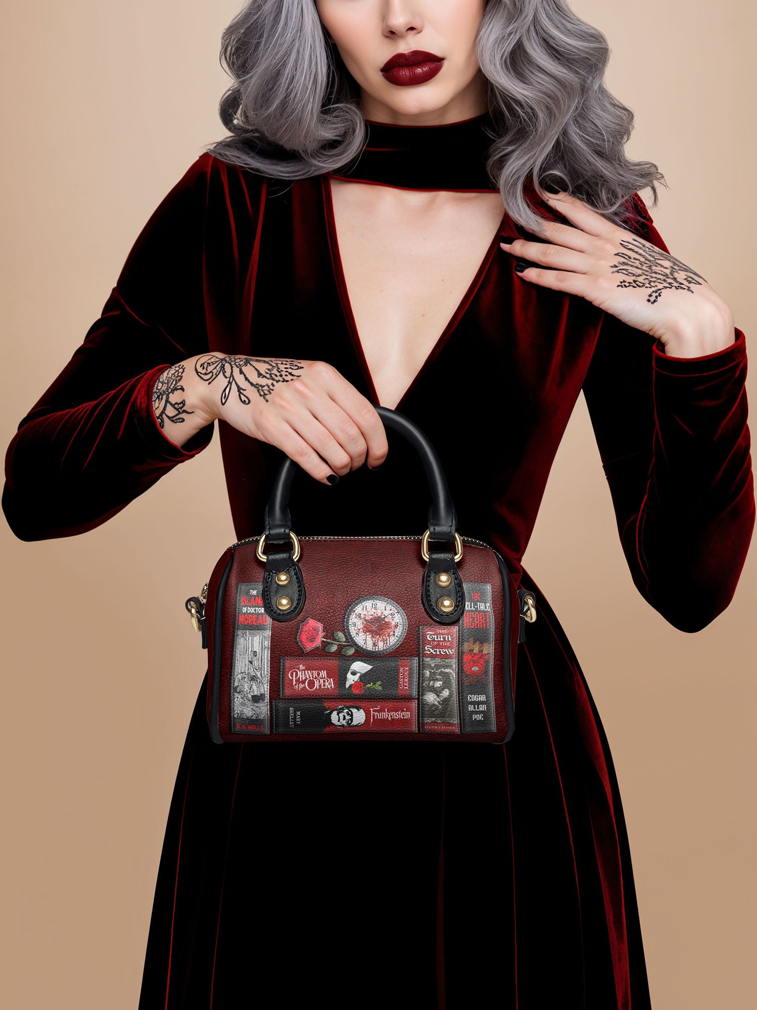 This mini satchel is where dark charm meets everyday function—perfect for horror lovers who like their accessories with a little bite.