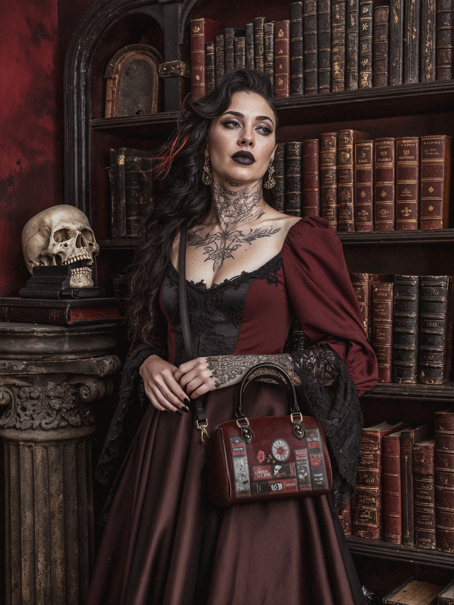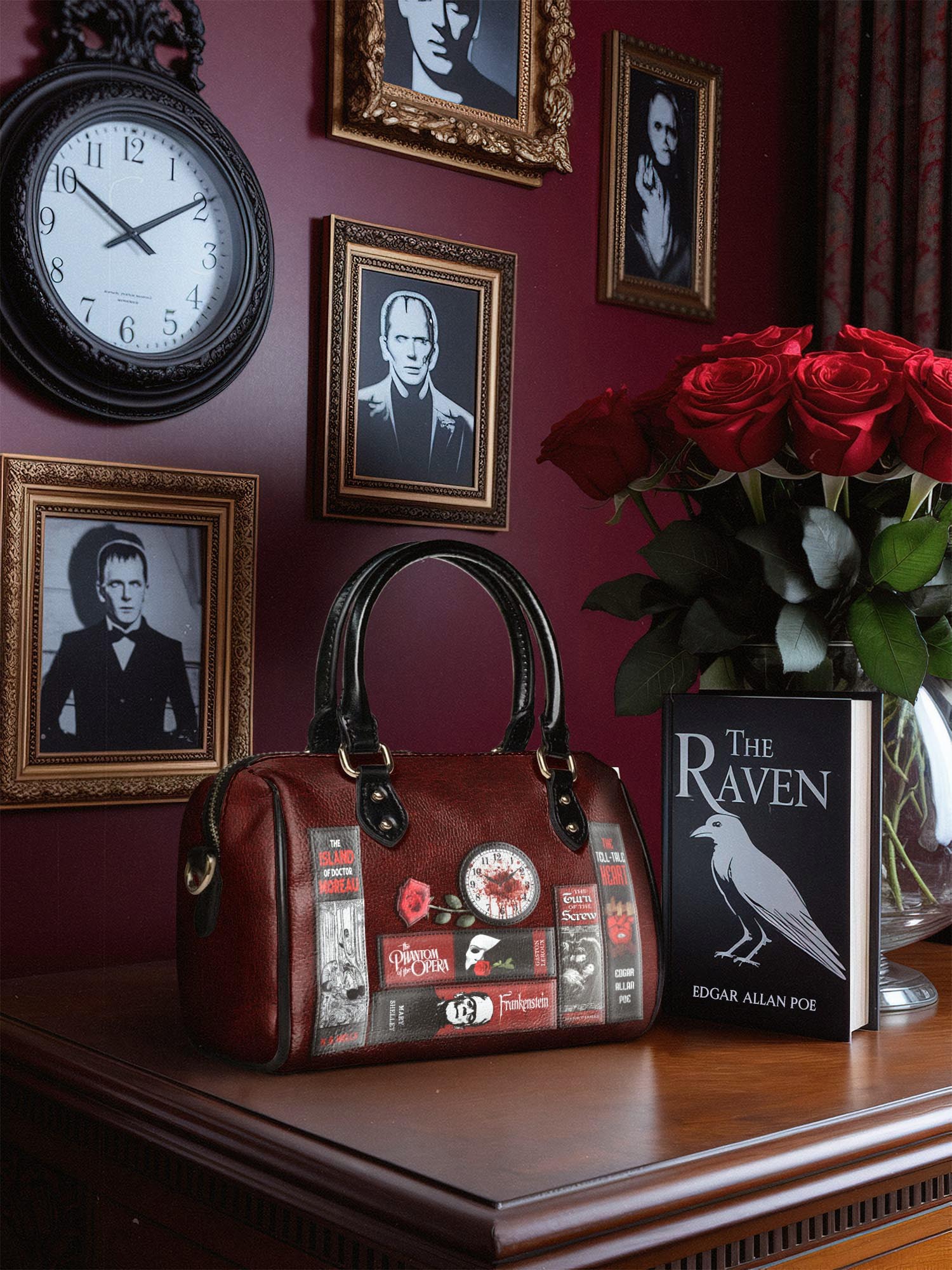 Bound in mystery and dripping in crimson, this mini satchel feels like a relic from a forbidden library—whispers trapped in leather, secrets stitched into every line. It’s made for those who crave the thrill of the arcane, the power of the written word, and the elegance of the macabre.