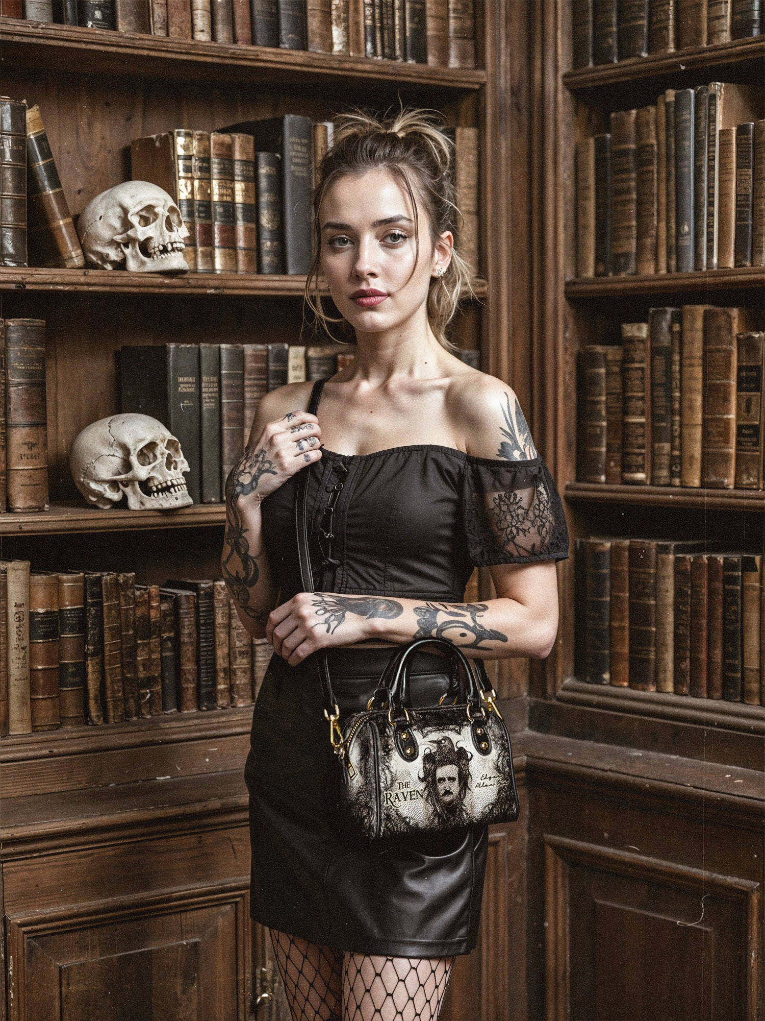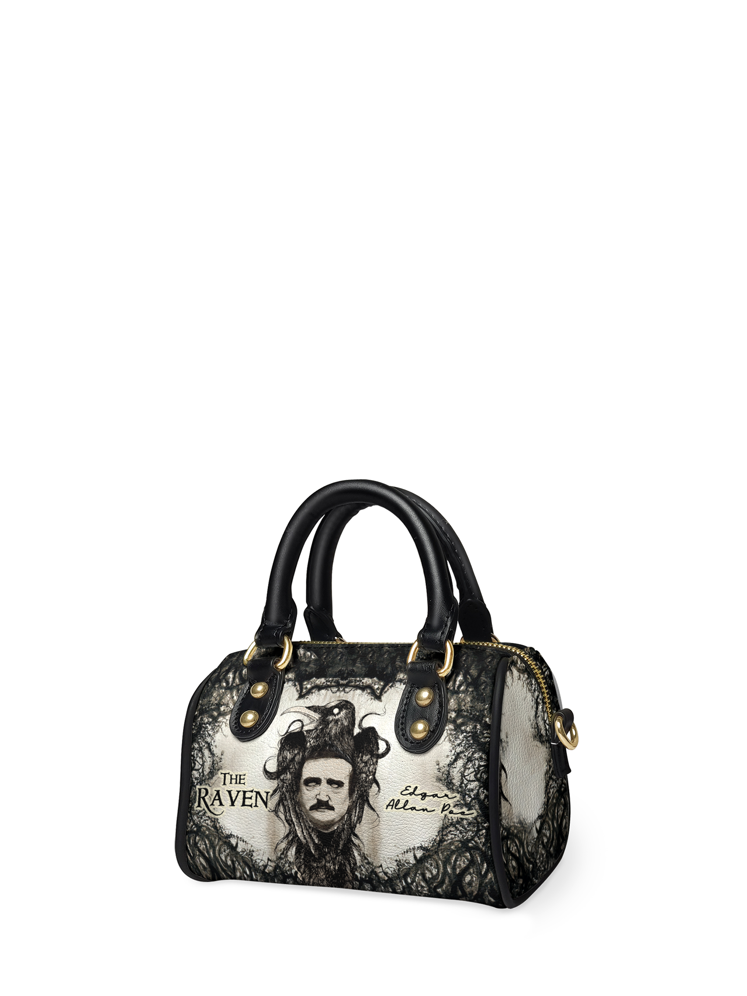 A tribute to longing, loss, and the beautiful ache of nevermore. This mini satchel doesn’t just nod to Poe’s most famous poem—it carries its mood. Somber yet poetic, eerie yet elegant, it’s made for the romantic soul who finds comfort in the dark and beauty in the melancholy.