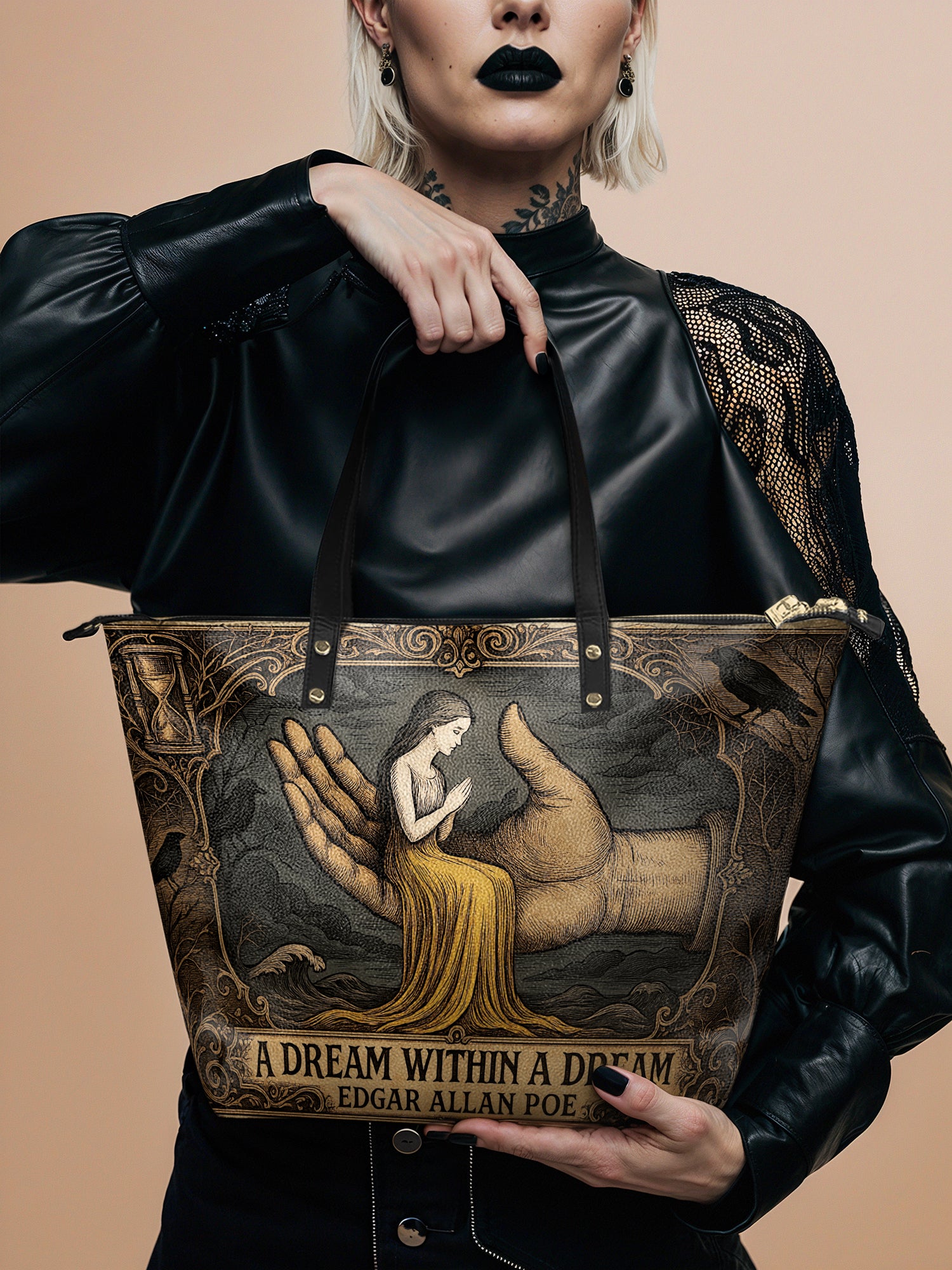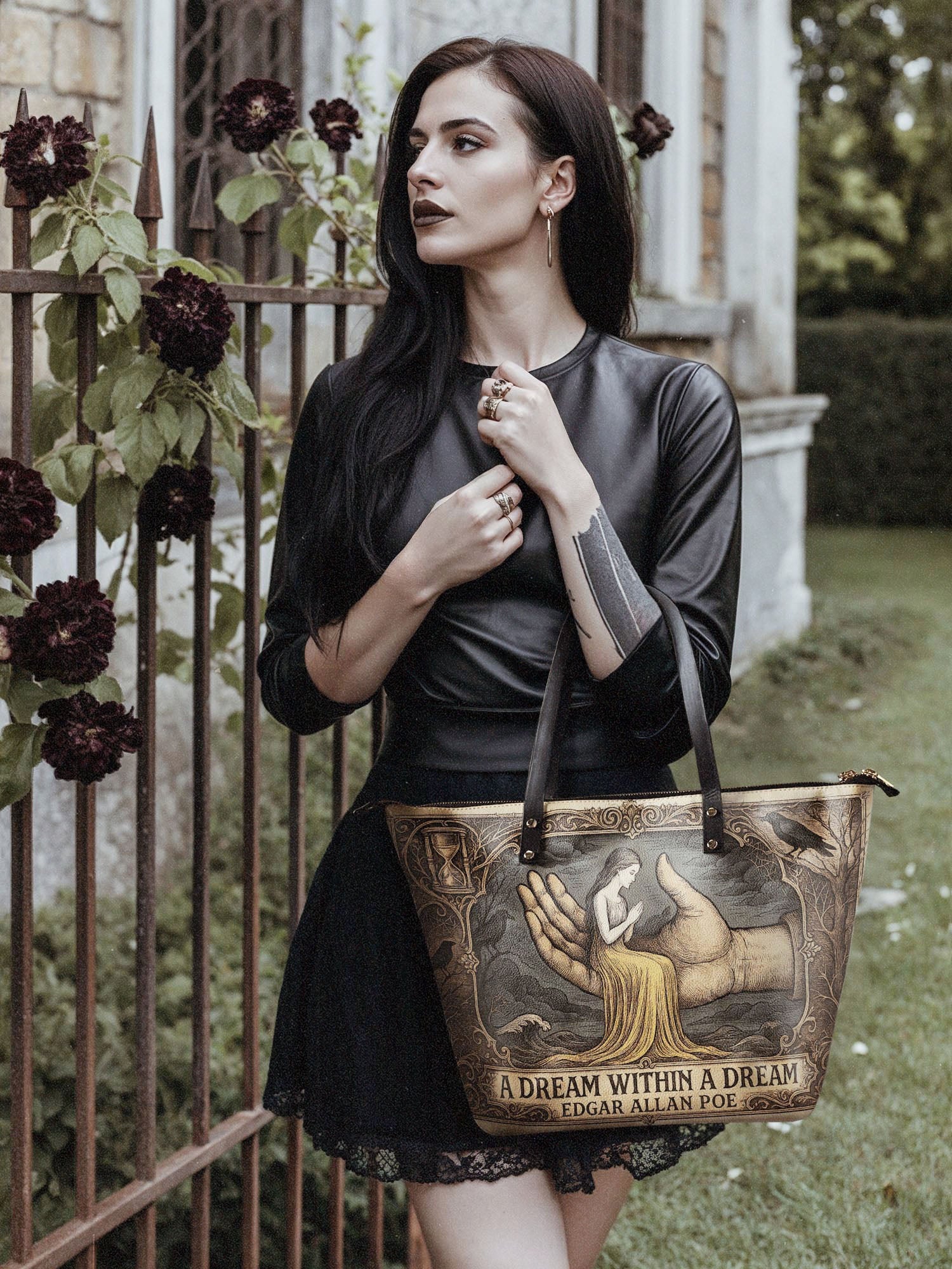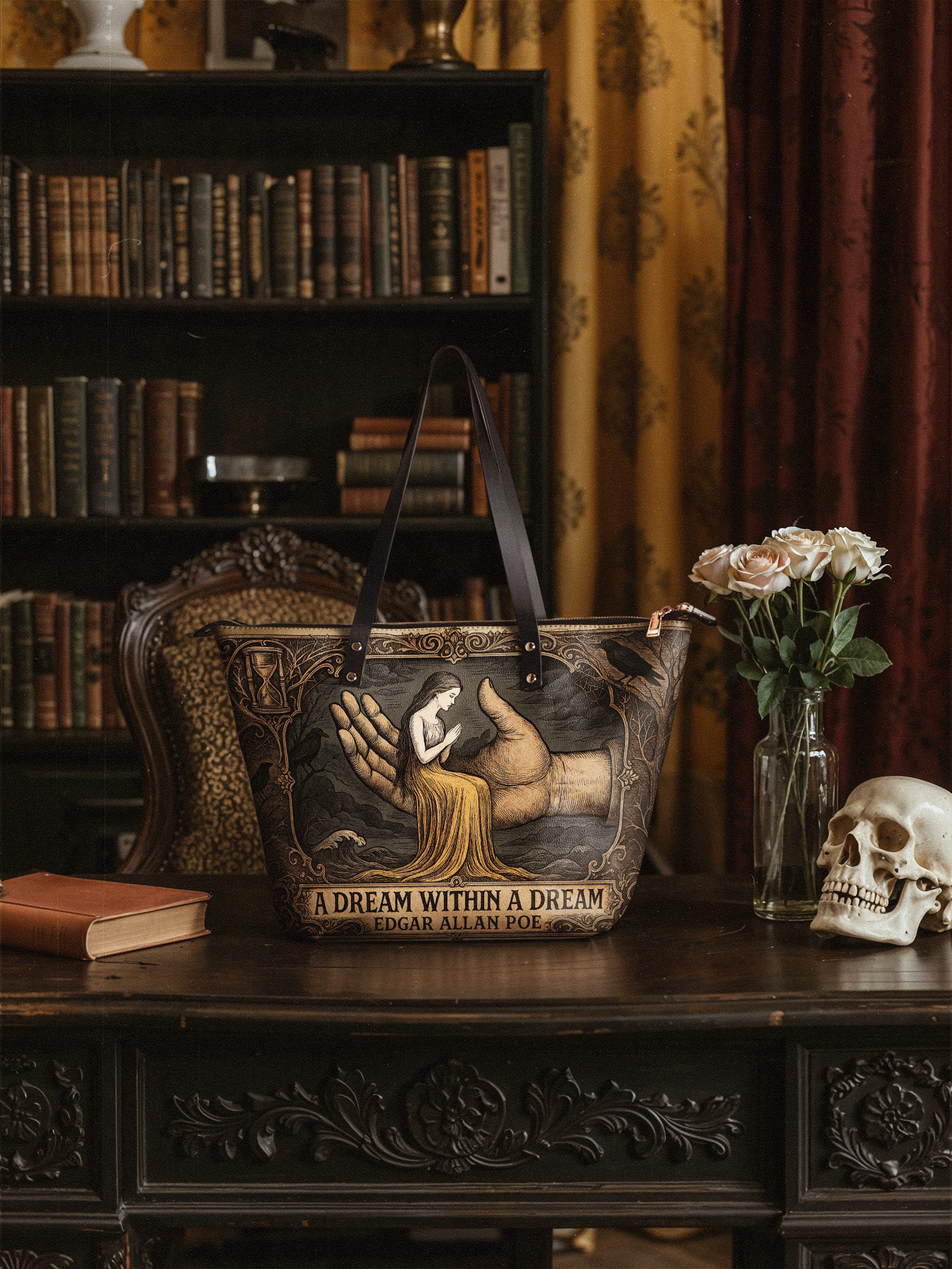 You must pair this tote with Lettoria's matching Poe wallet for a union that feels like inheriting the poet's entire shadowed archive.