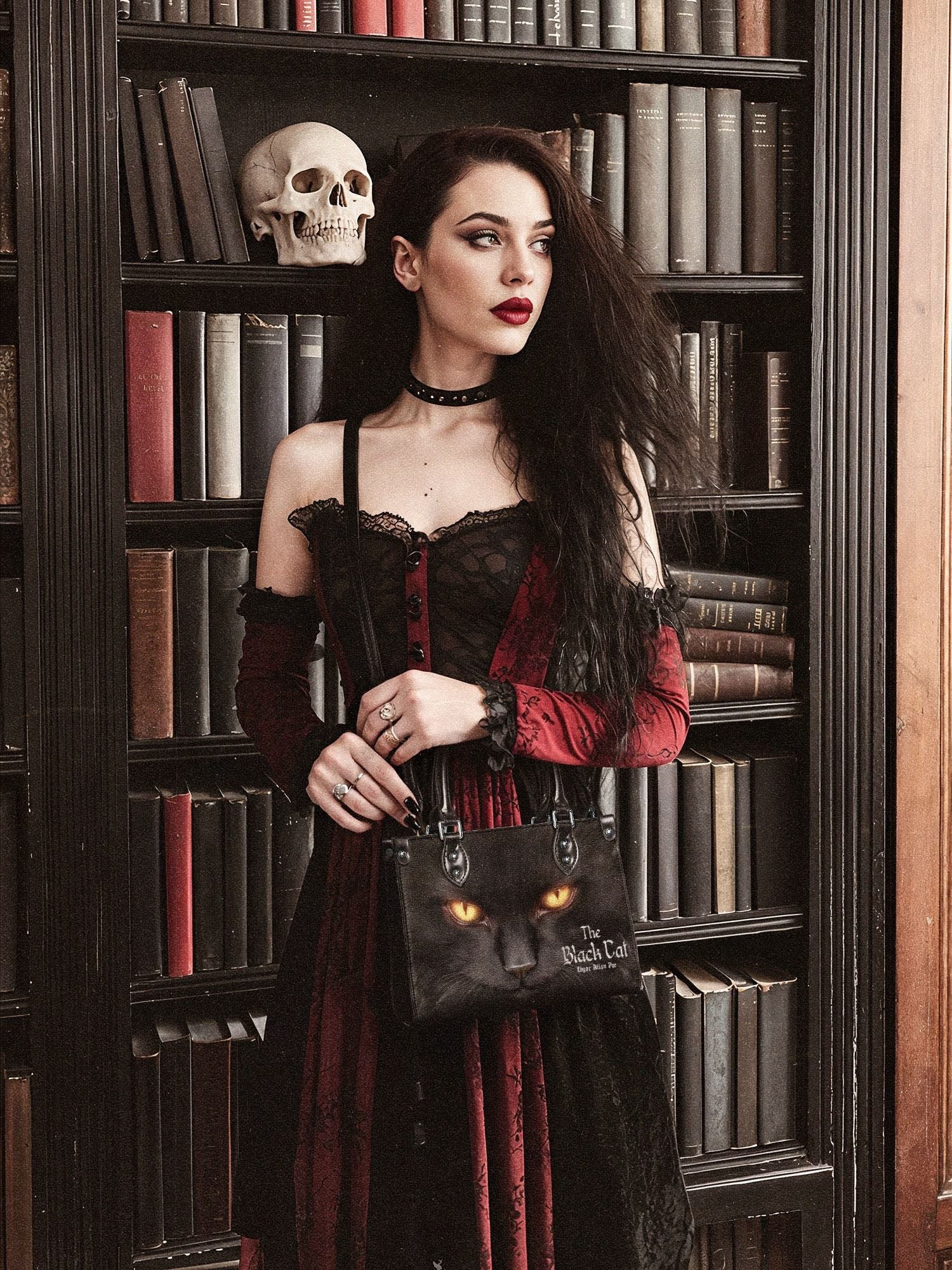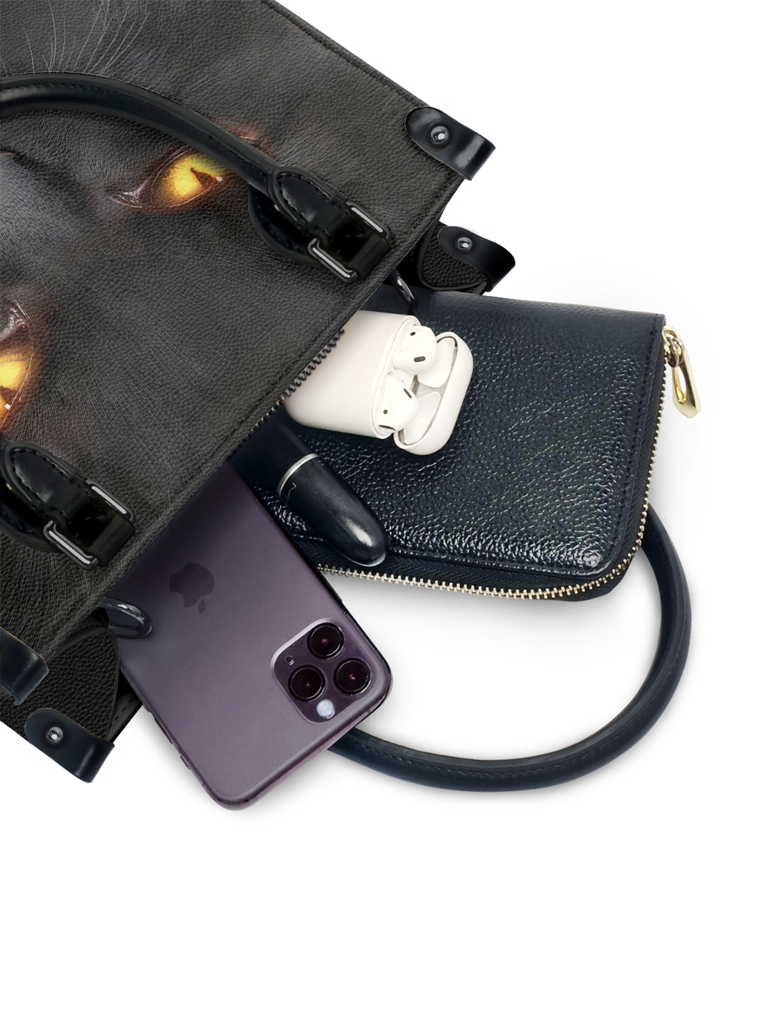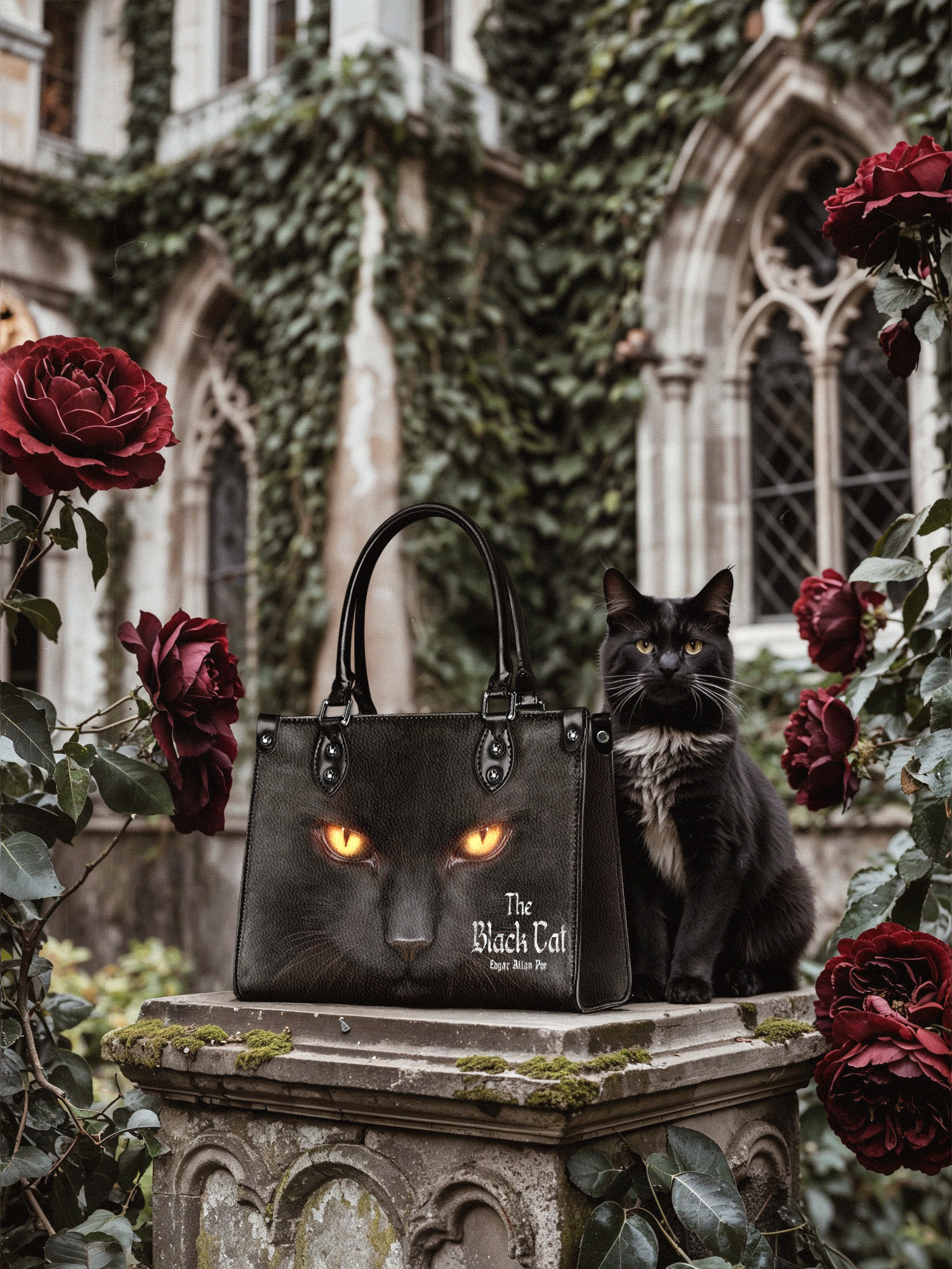 "The Black Cat" - Black Interior - Small Leather Handbag