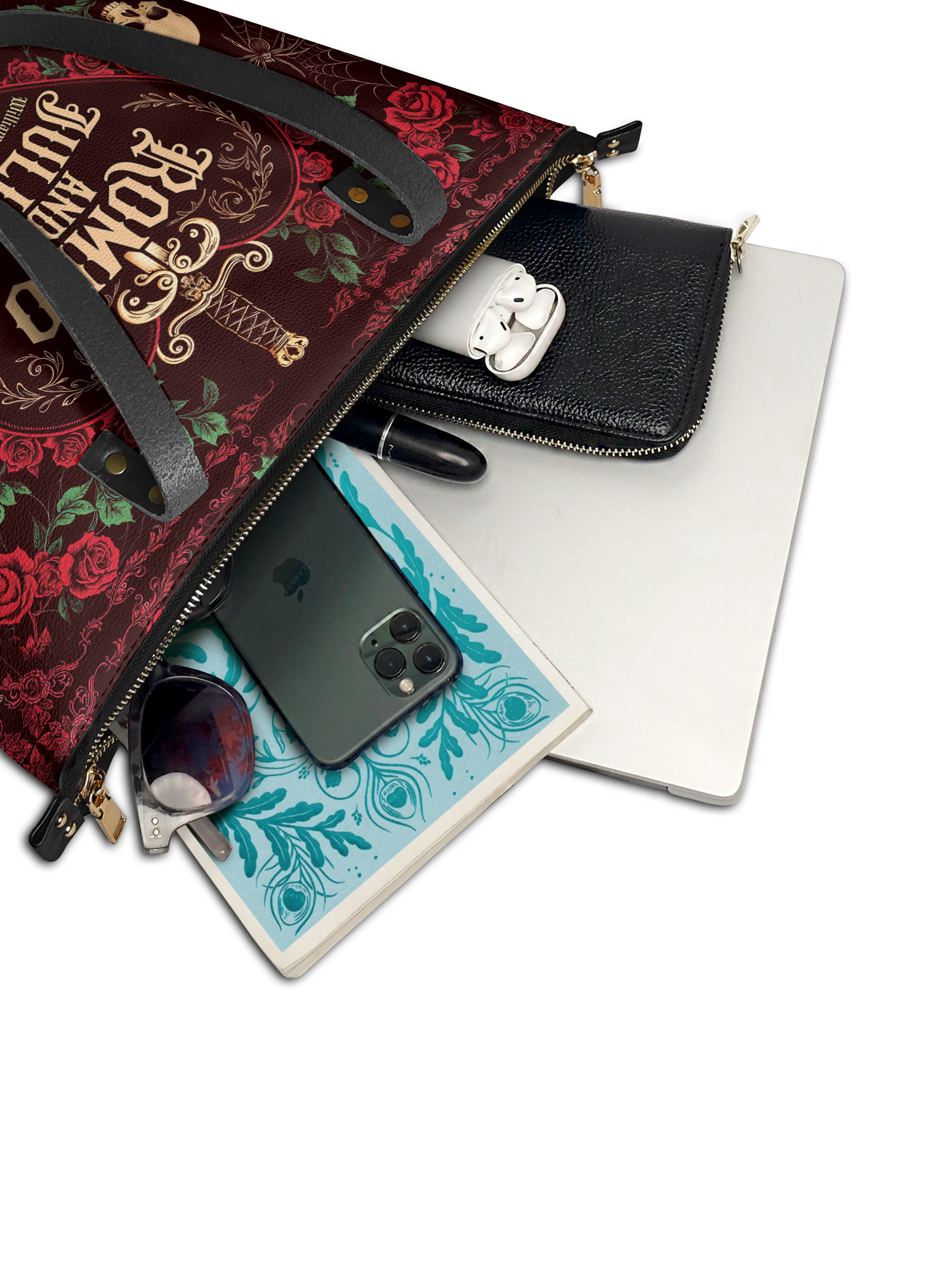 Handcrafted in the United States, this Premium Vegan Leather tote transforms mundane errands into a procession through the House of Usher.