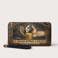 So I ordered a wallet. The " Poe Library" in ashen black. I already had a purse and really didn't think I needed another one but I really needed a new wallet.. But the problem was I really wanted the "Poes Library" in that gorgeous blue. So I did what anybody else would do the next day.I ordered it and the matching wallet. I got them all the same day.I fell in love with my blue purse! All my favorite stories ,the man himself , the blue, the black ....gorgeous. The interior, that soft yellow, Perfect! Enough room for everything that I need.
