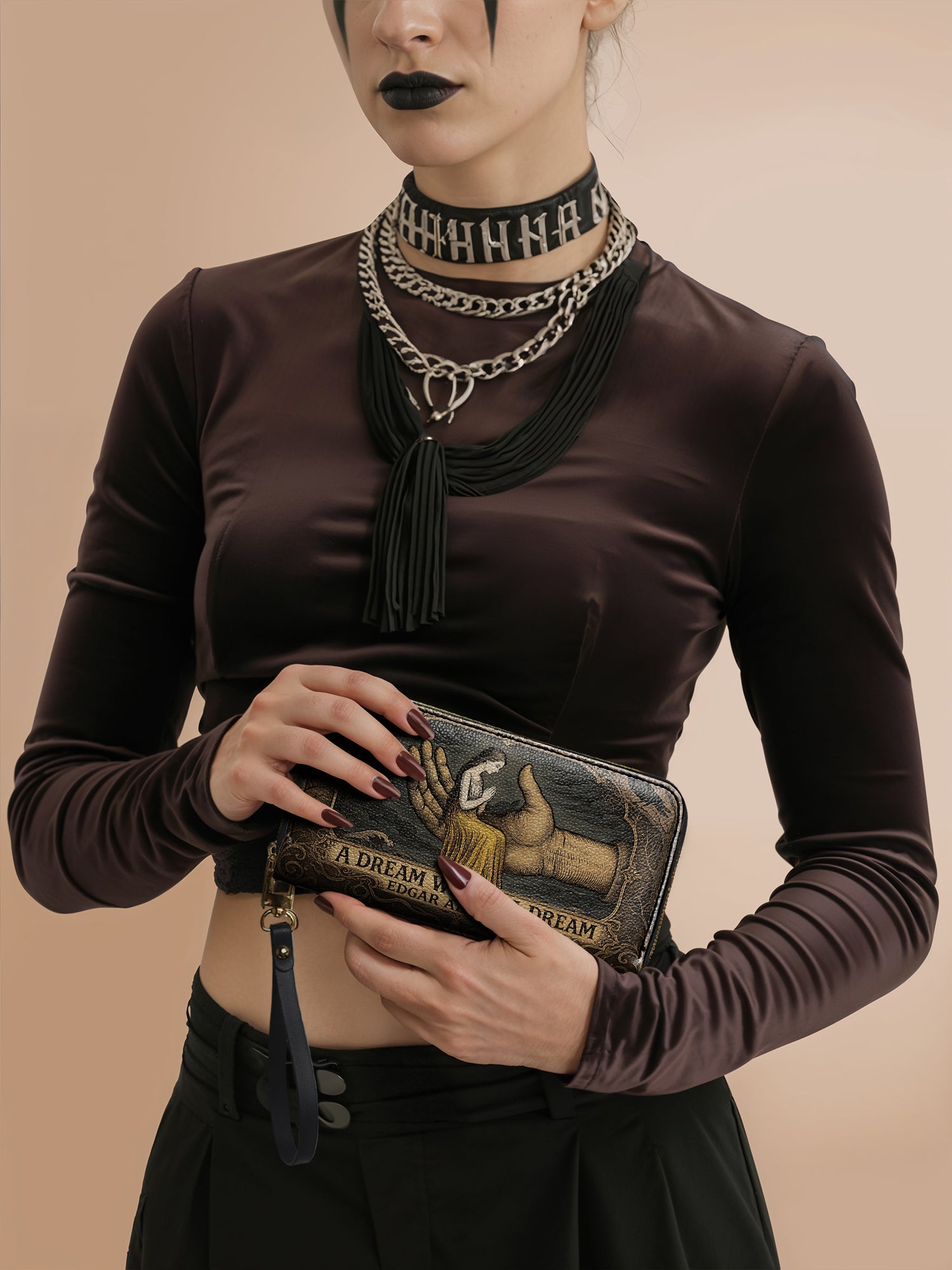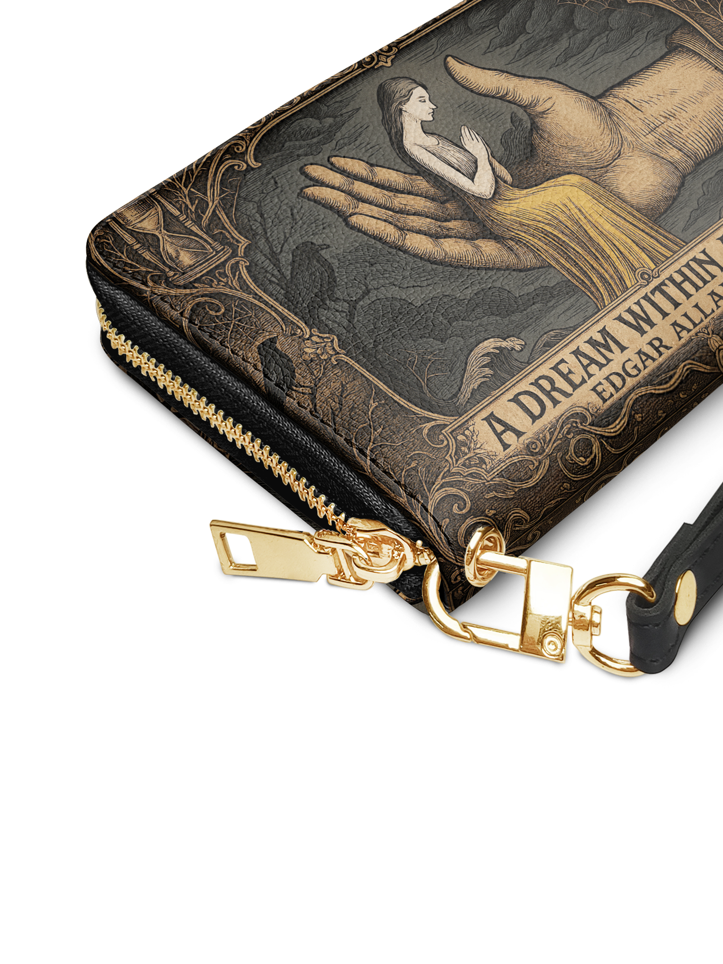 The secure zipper closure keeps everything safe, while the detachable wrist strap offers effortless carrying—perfect for work, travel, or a chic night out.