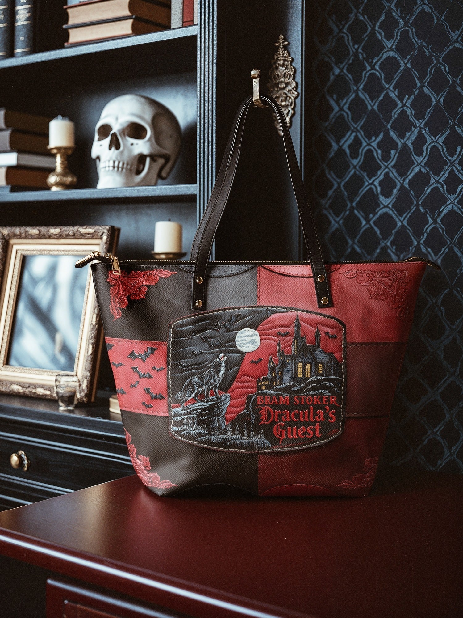 This tote is the chameleon of the crypt: sling it over a wool cape for windswept walks reciting Annabel Lee, or pair it with tailored blacks for a midnight masquerade.