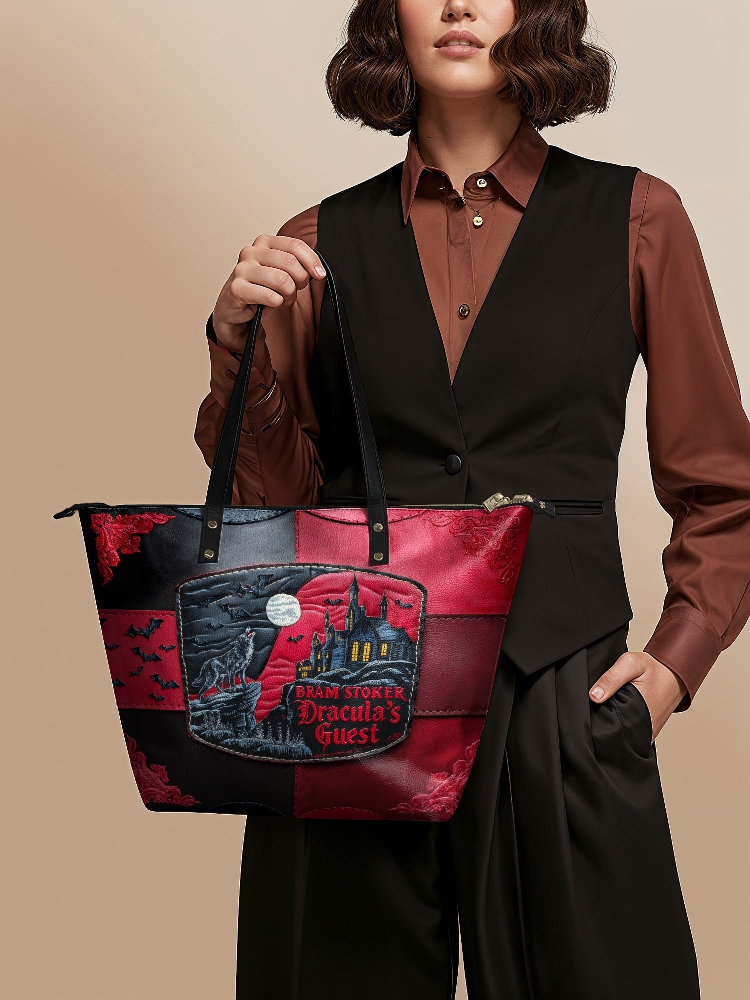 Handcrafted in the United States, this Premium Vegan Leather tote transforms mundane errands into a procession through the House of Usher.