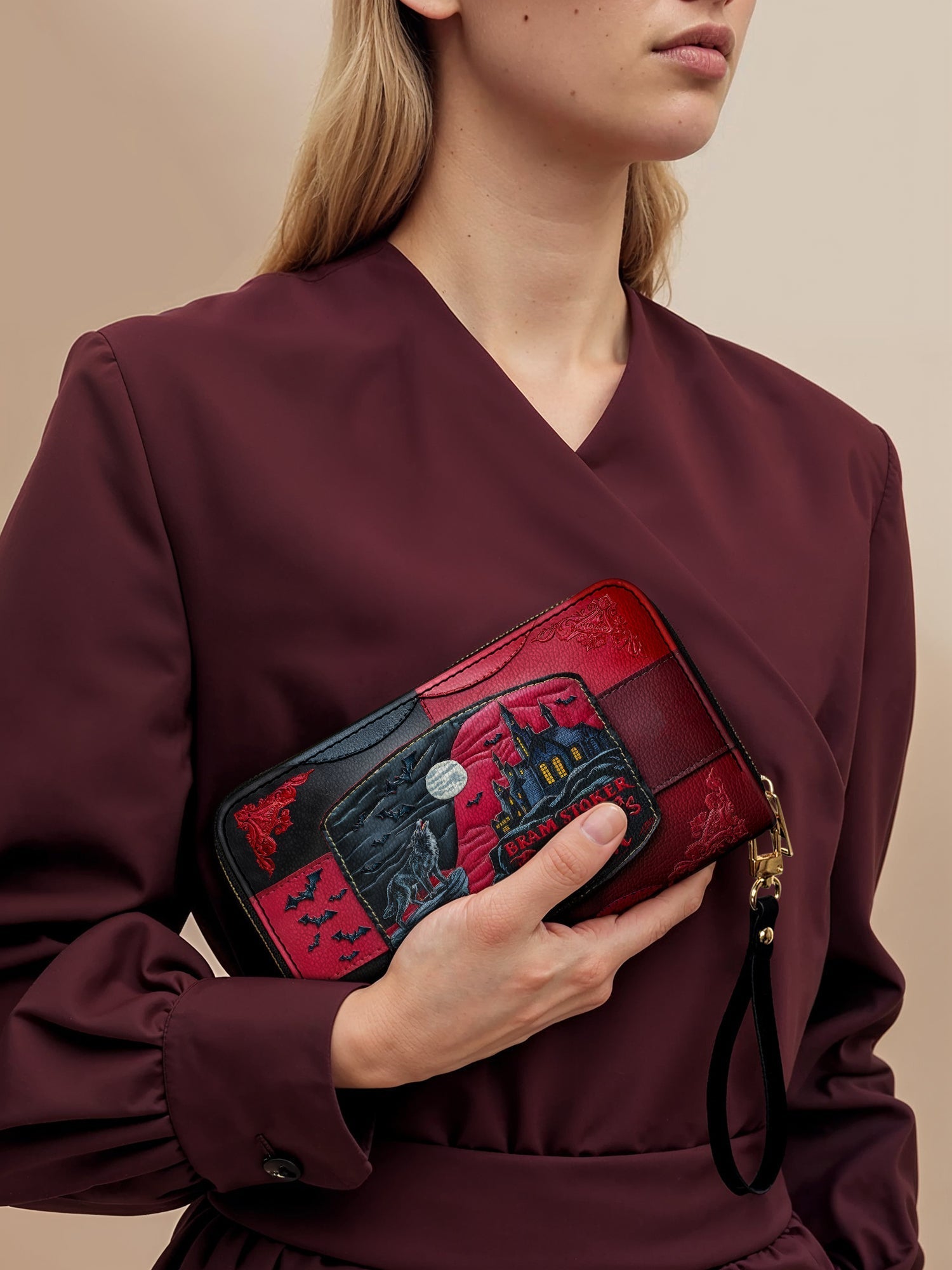 Omg! I love this wallet! I got the Codex of Gothic Tales with the cobwebs. I'm so excited I can't think of the actual title. Please forgive me. It's more stunning in person than on the website. I am saving up for the purse now. I highly recommend this site and products. Absolutely stunning wallet.