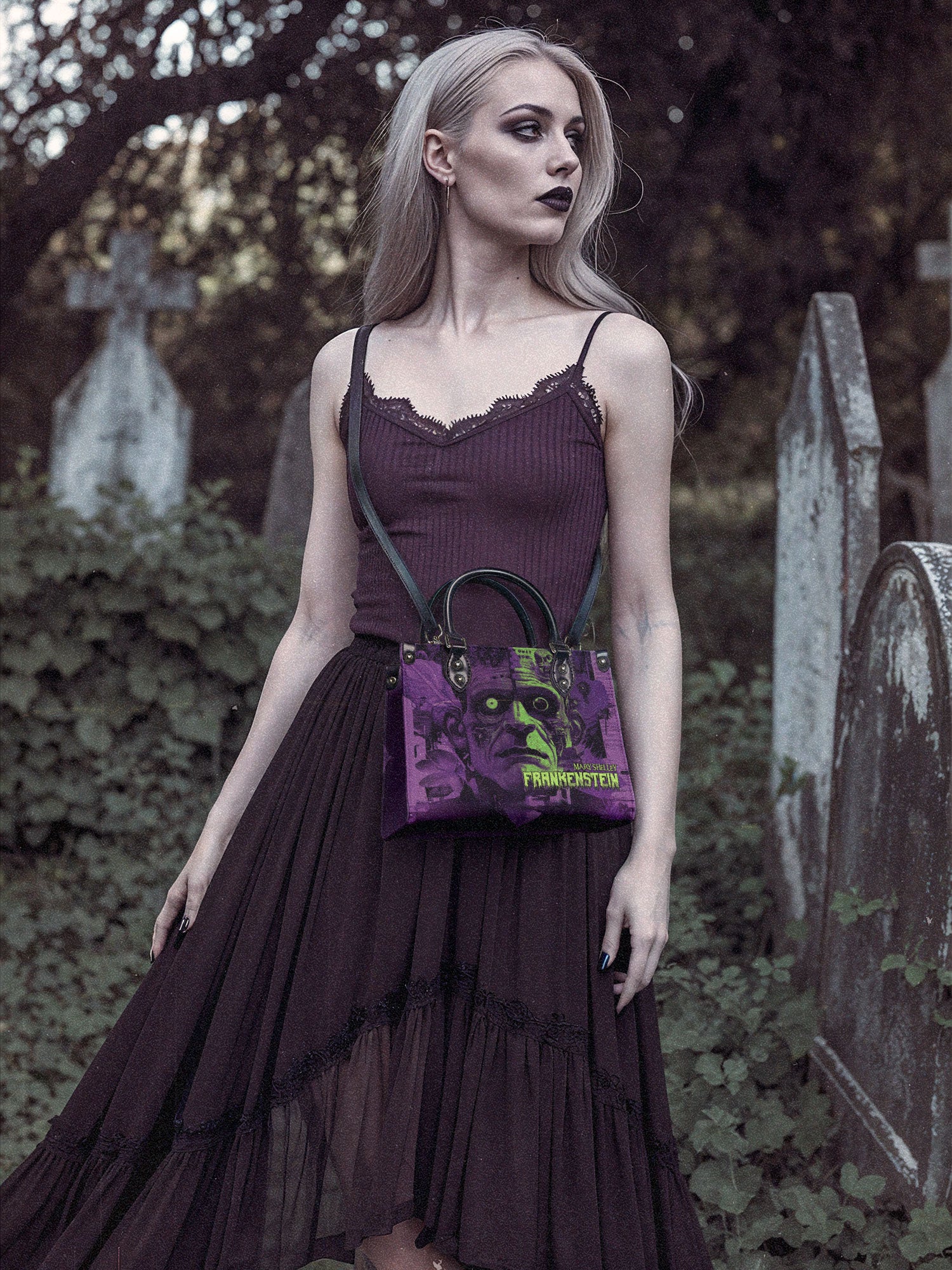 "Frankenstein" Lablight Violet - Black Interior - Small Leather Handbag
