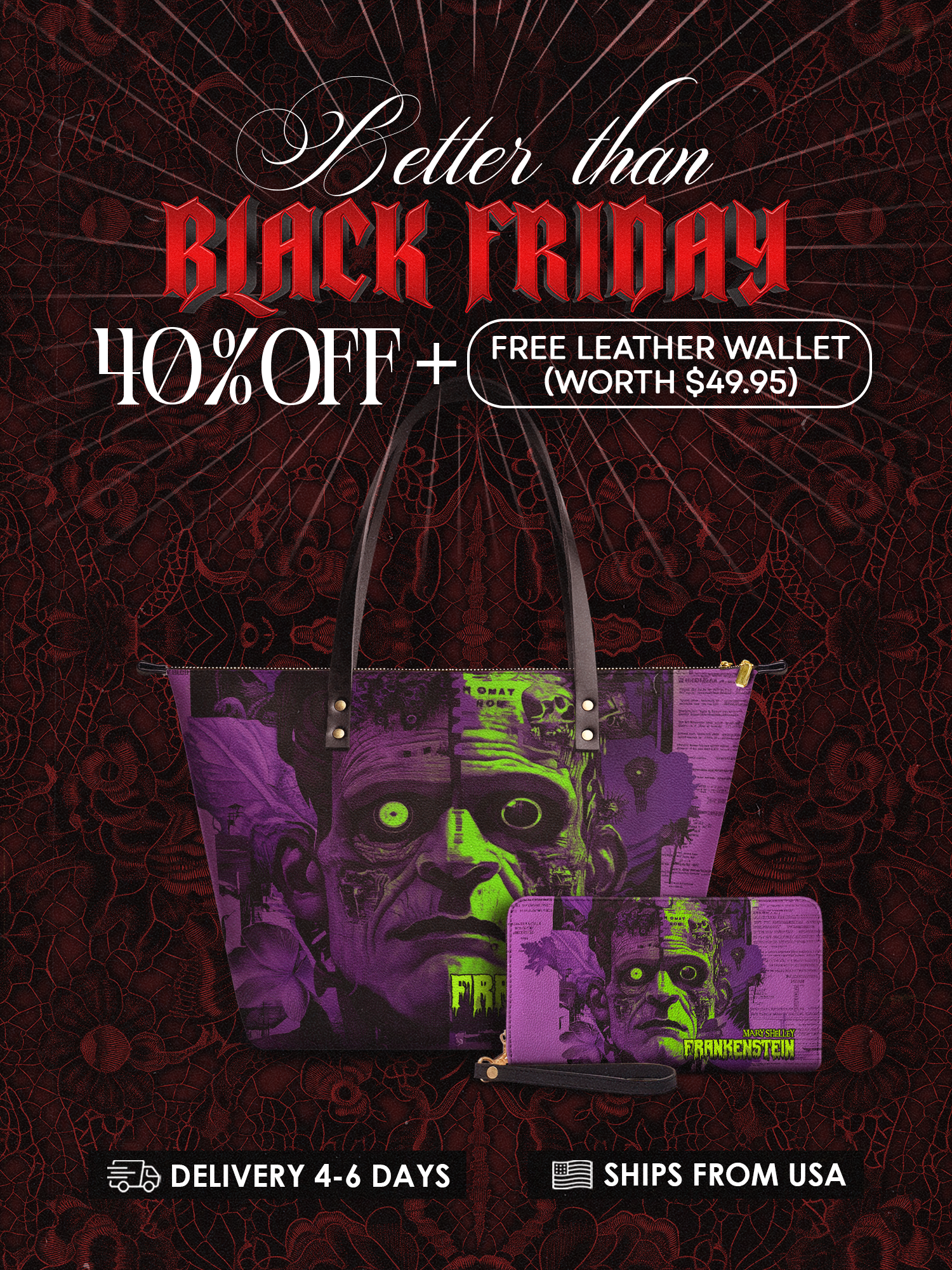 Electric, eerie, and impossible to ignore—this purple Frankenstein tote is horror reimagined in high voltage. The bold neon palette cranks the drama to full tilt, channeling chaos, science, and spectacle into one jaw-dropping statement.