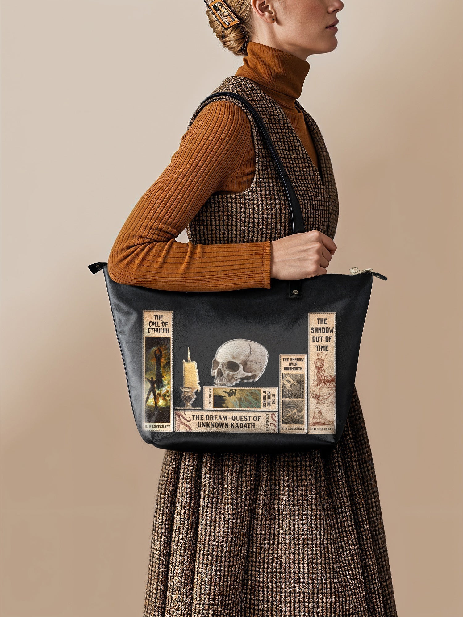 Handcrafted in the United States, this Premium Vegan Leather tote transforms mundane errands into a procession through the House of Usher.
